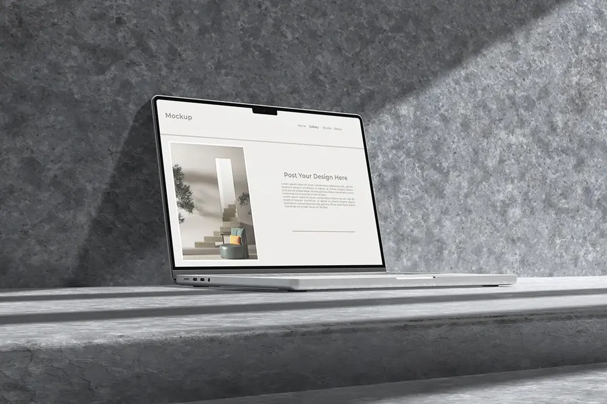 Laptop mockup with shadow overlay 苹果Macbook 笔记本电脑模型设计展示显示器贴图ps样机素材模板