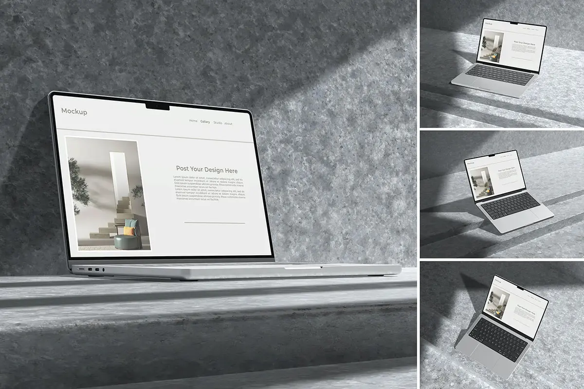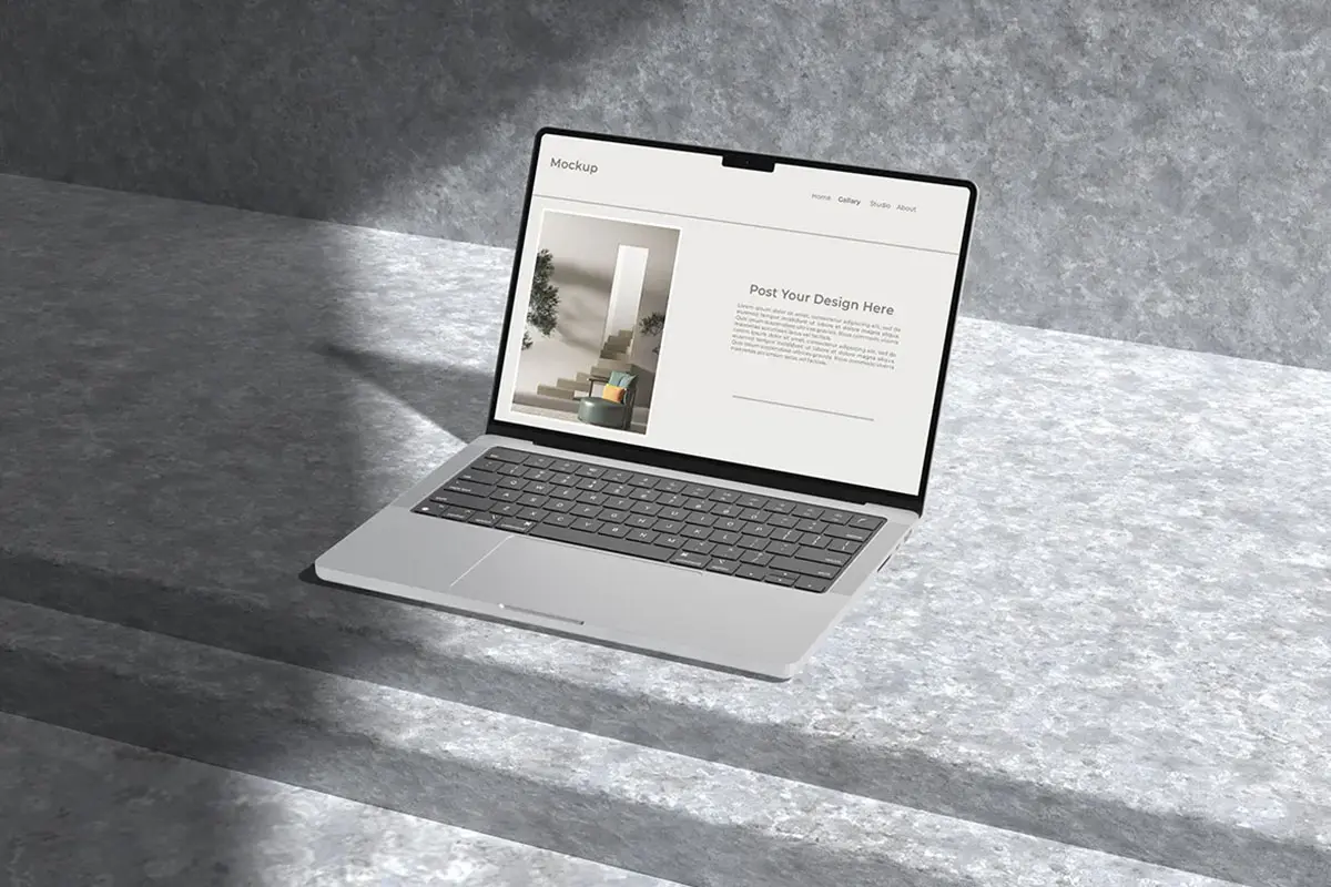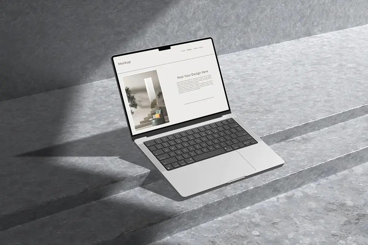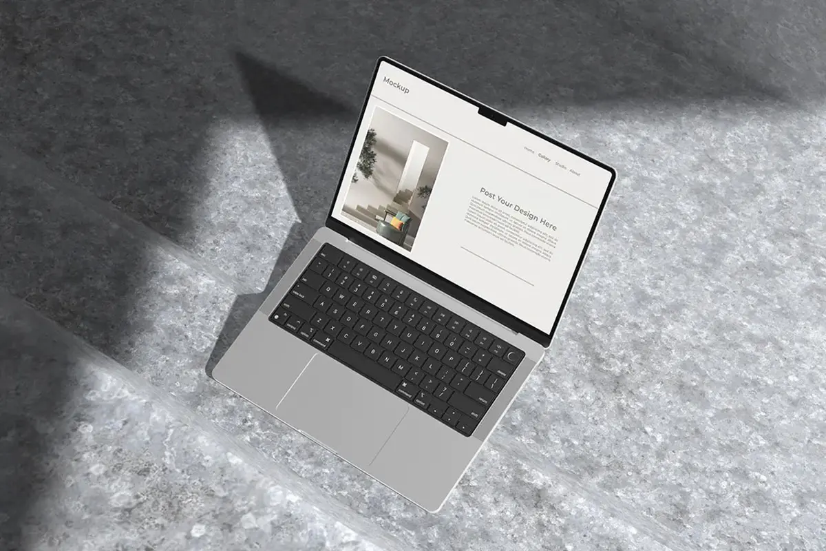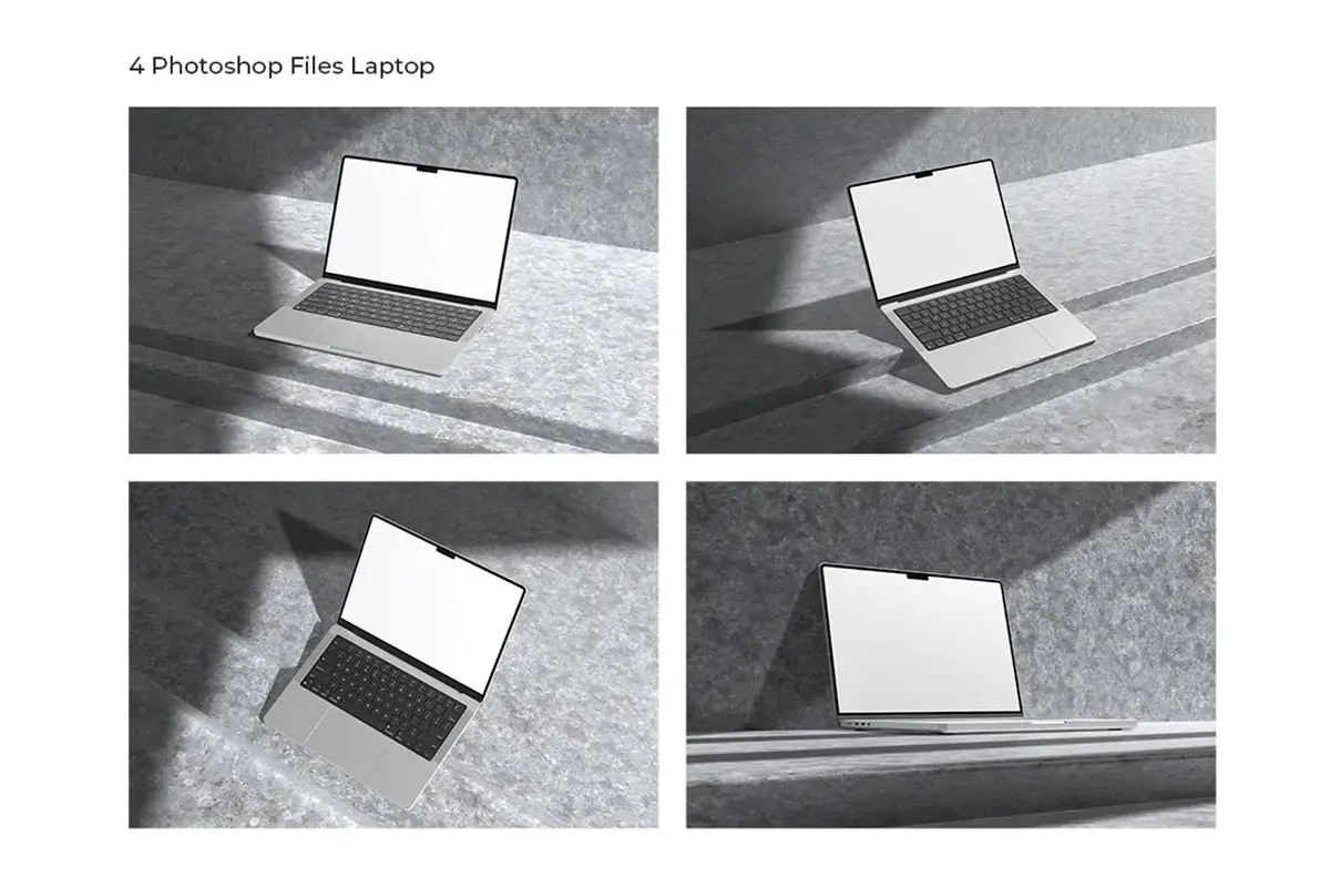Laptop mockup with shadow overlay 苹果Macbook 笔记本电脑模型设计展示显示器贴图ps样机素材模板