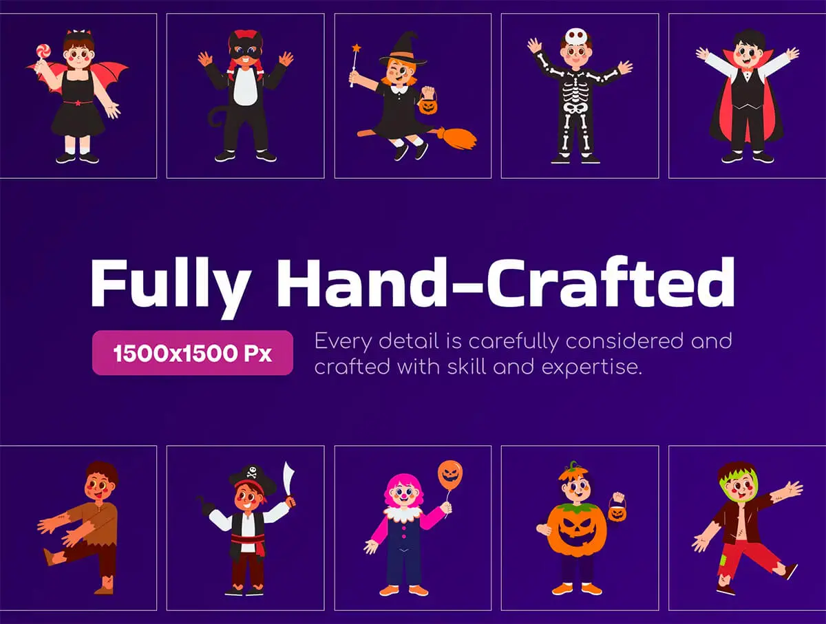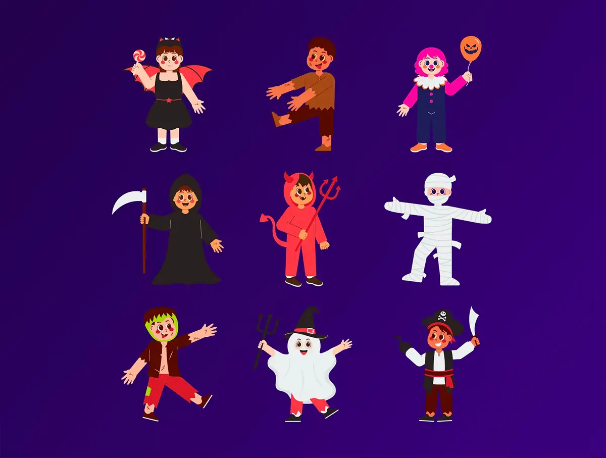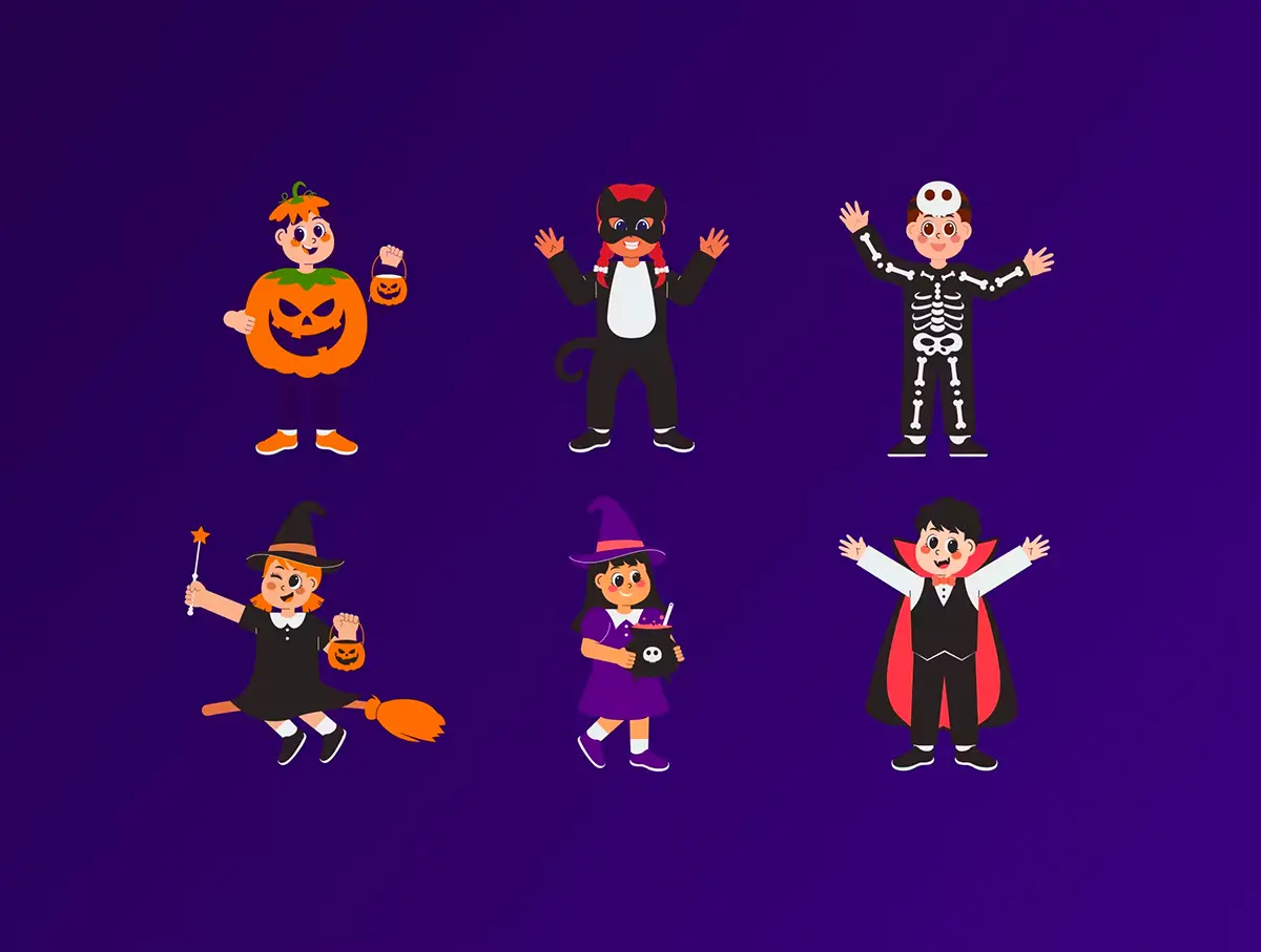 Cute Kids Halloween Costume Illustration 可爱卡通孩子万圣节服装插画插图矢量设计素材