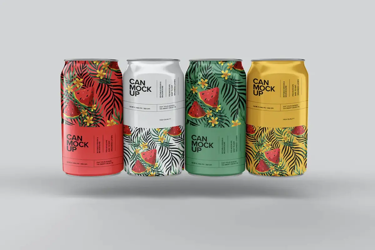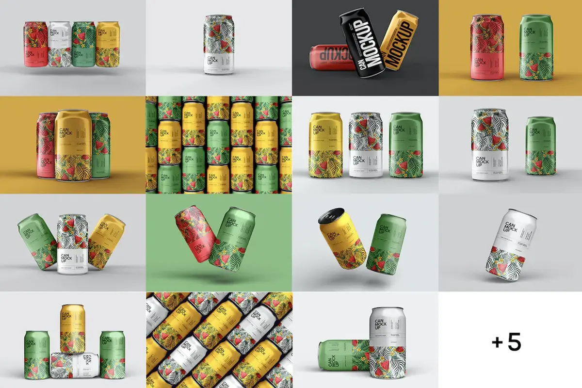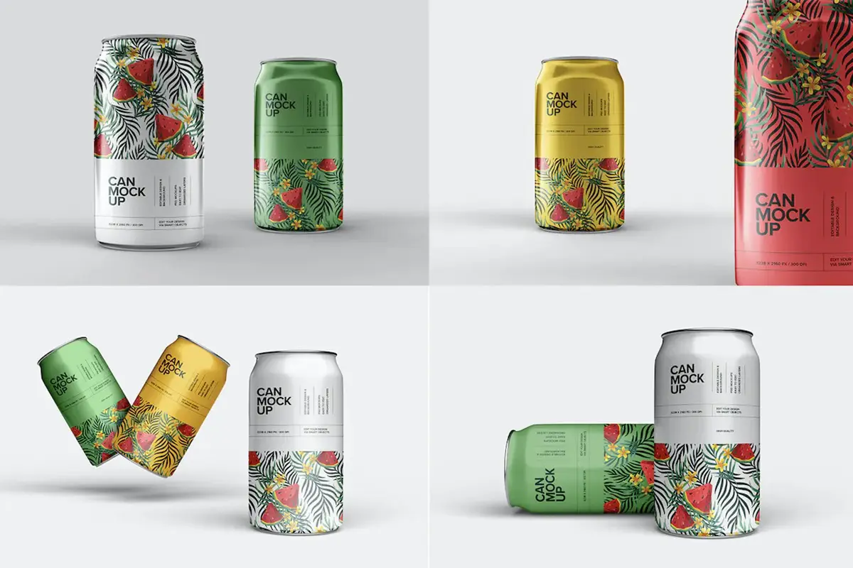 Soda Can Mockup Set 20款金属汽水罐易拉罐模型罐身logo标识设计贴图展示ps包装样机素材