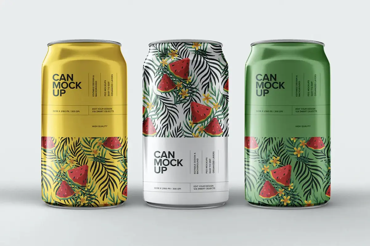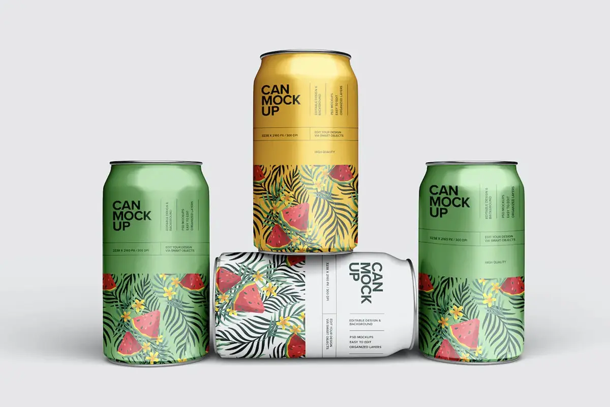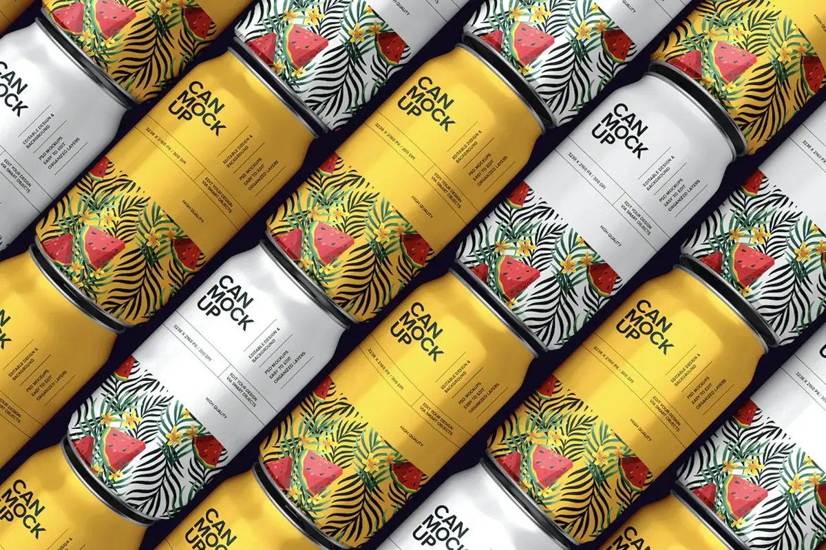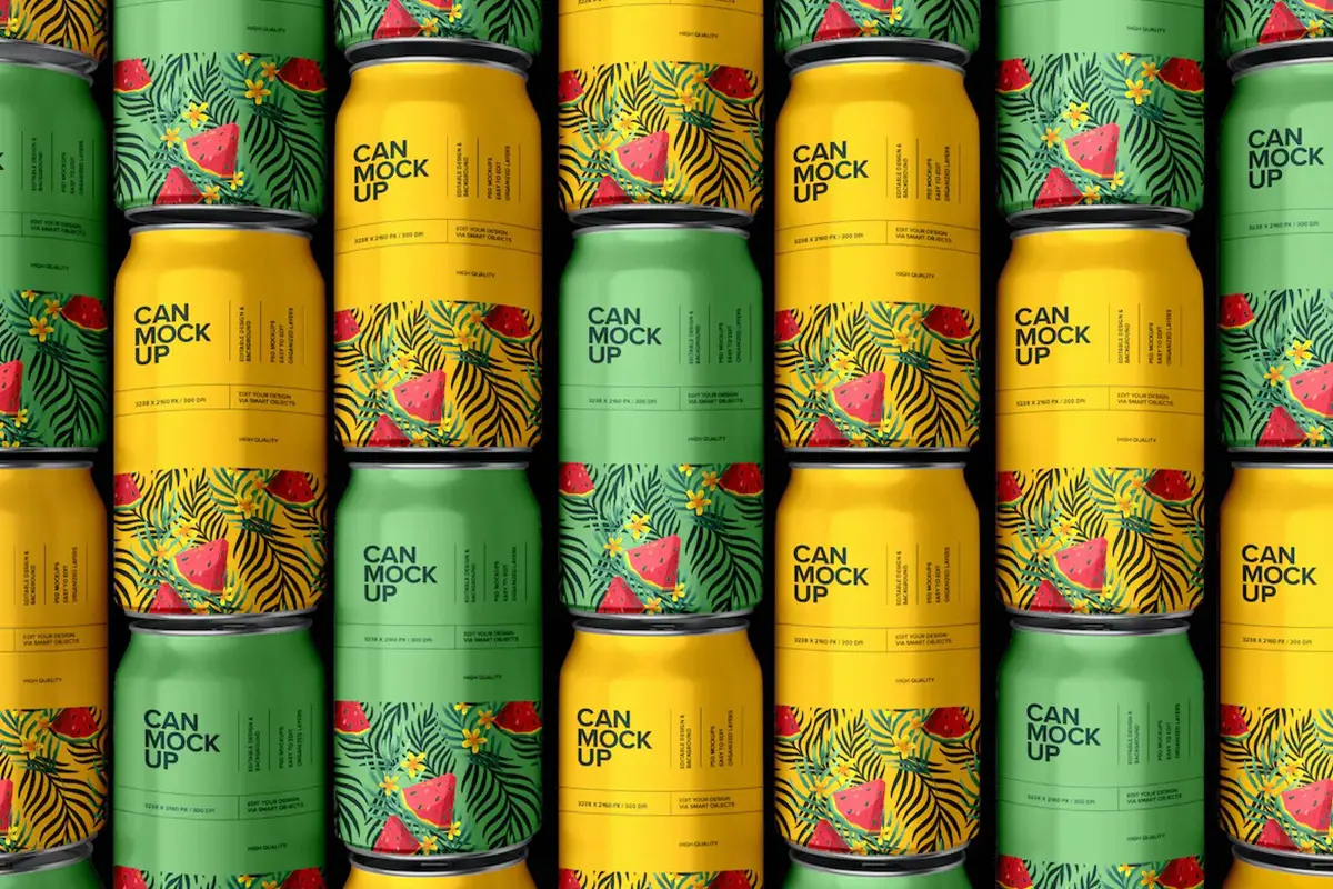 Soda Can Mockup Set 20款金属汽水罐易拉罐模型罐身logo标识设计贴图展示ps包装样机素材