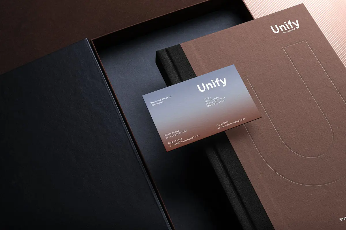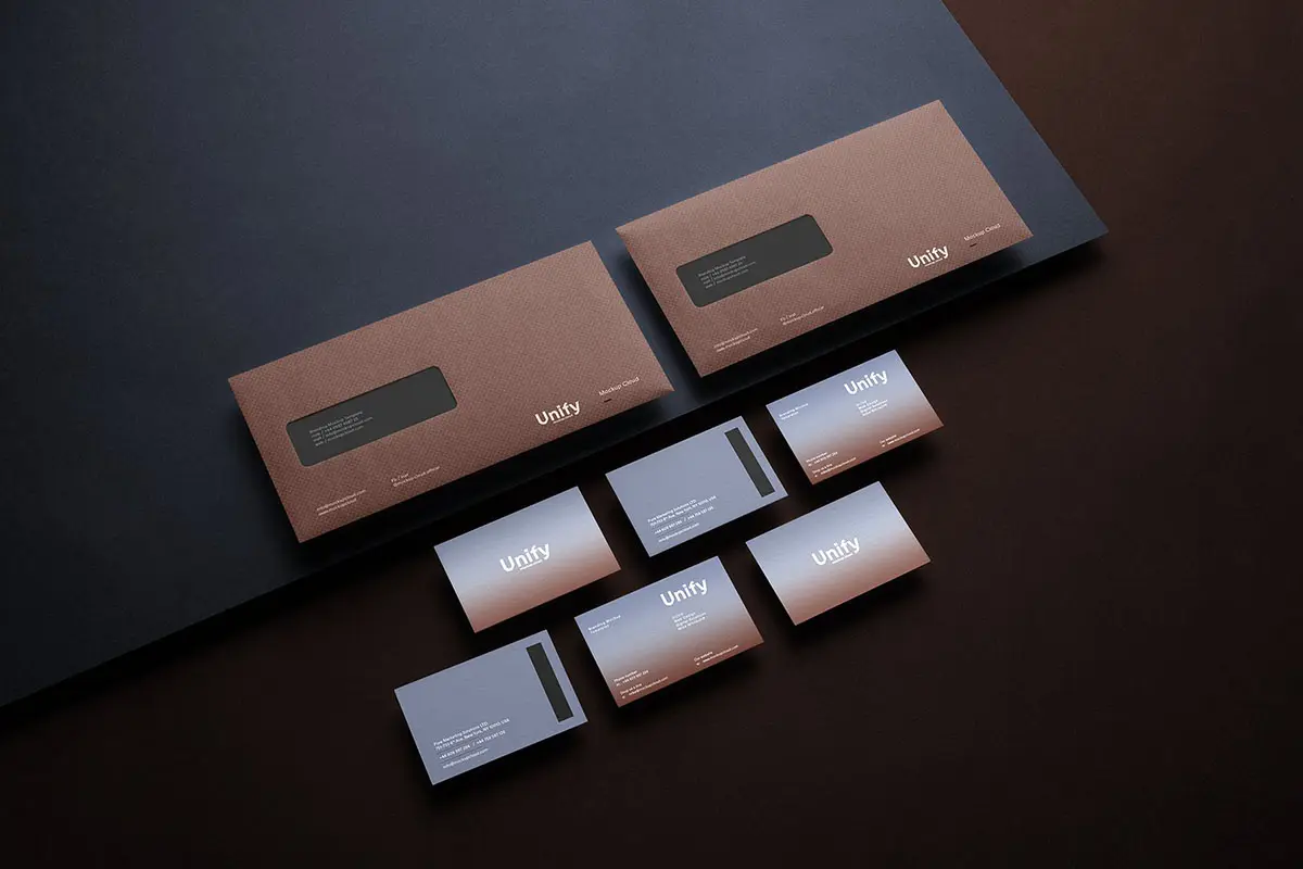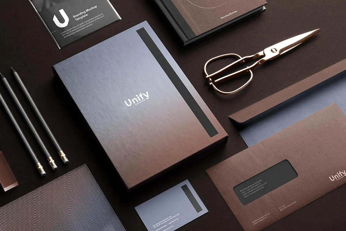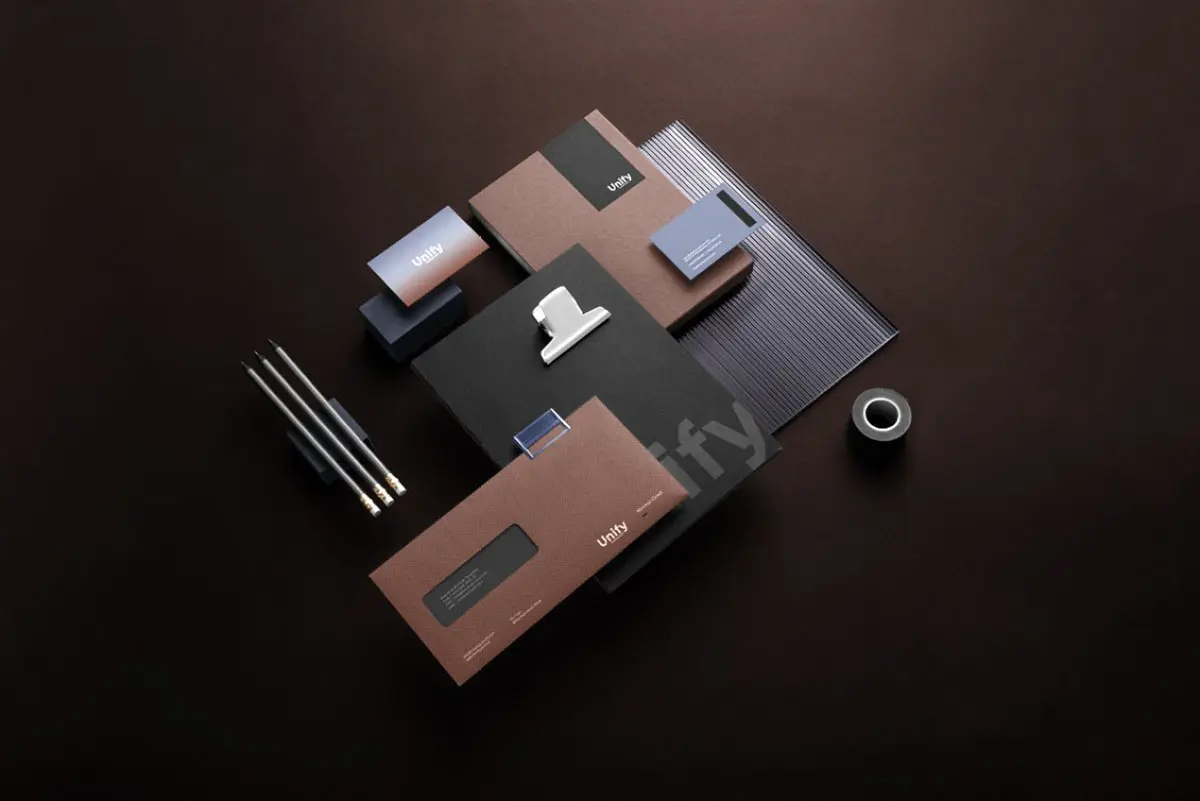 Unify Branding Mockup Kit 长方形空白名片样机素材贴图,品牌信封笔记本信纸文具样机素材psd源文件