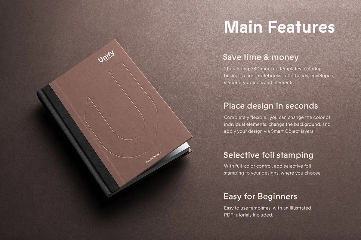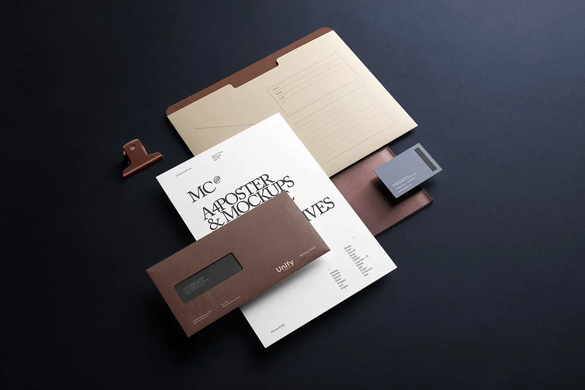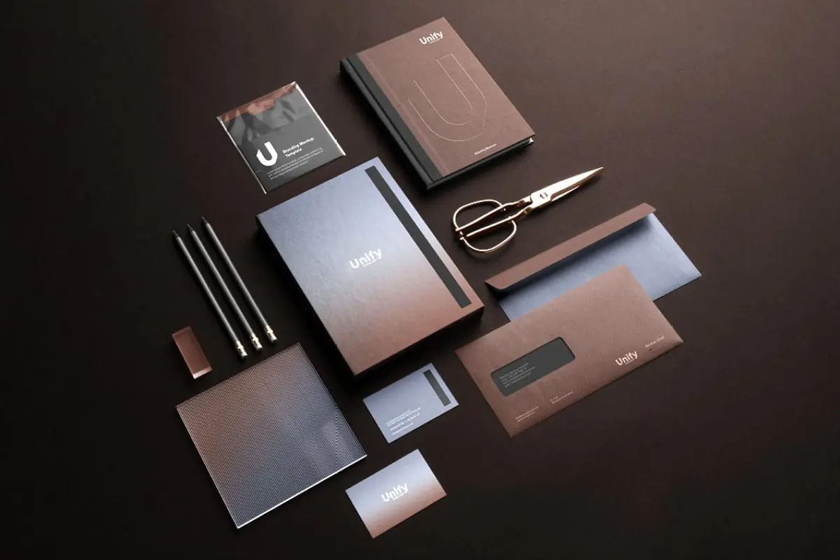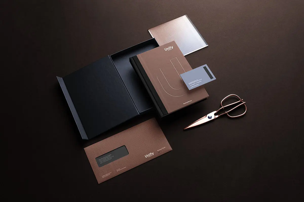 Unify Branding Mockup Kit 长方形空白名片样机素材贴图,品牌信封笔记本信纸文具样机素材psd源文件