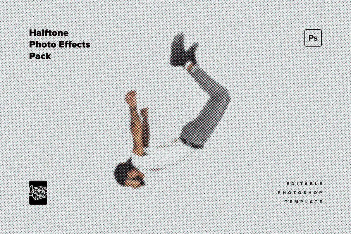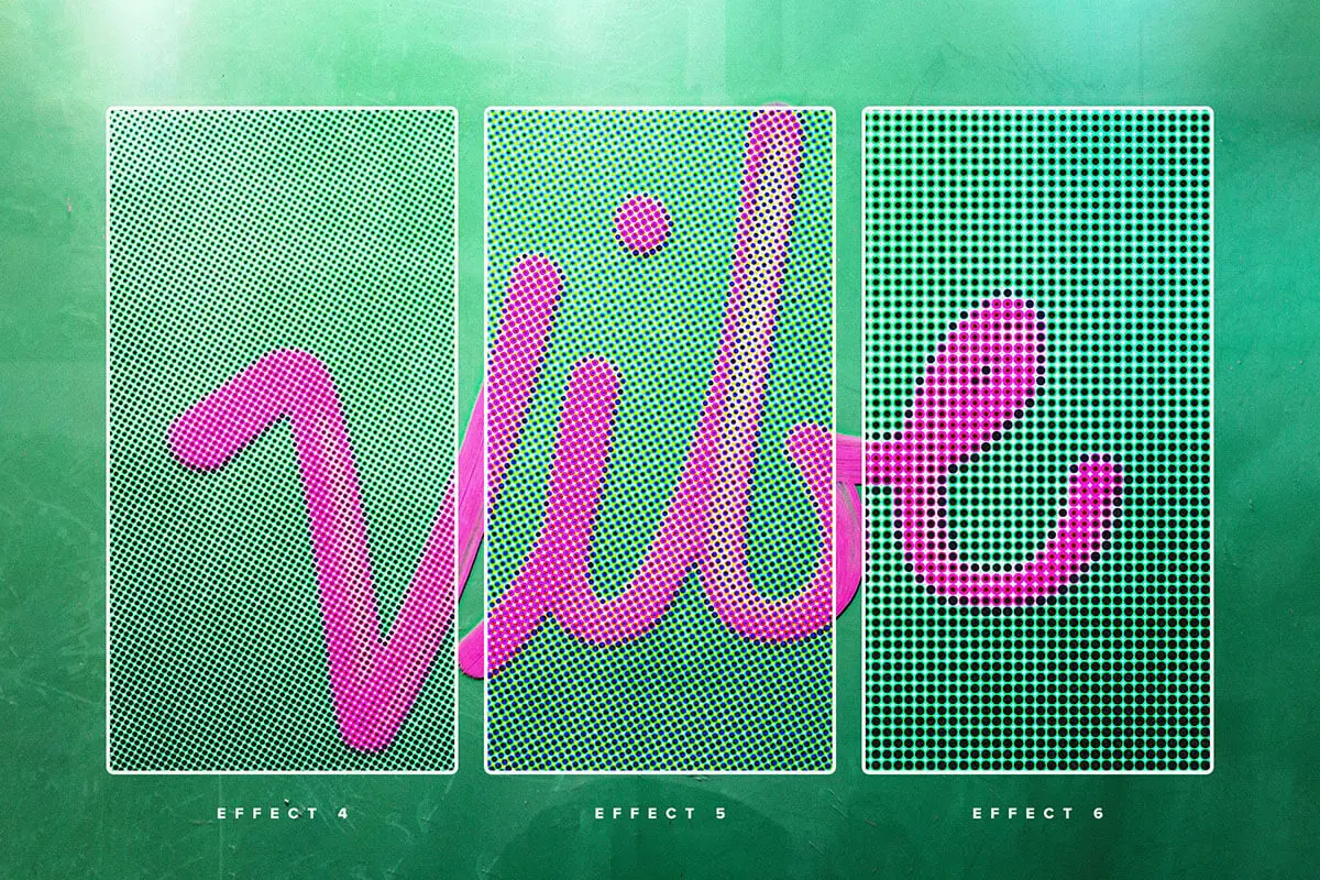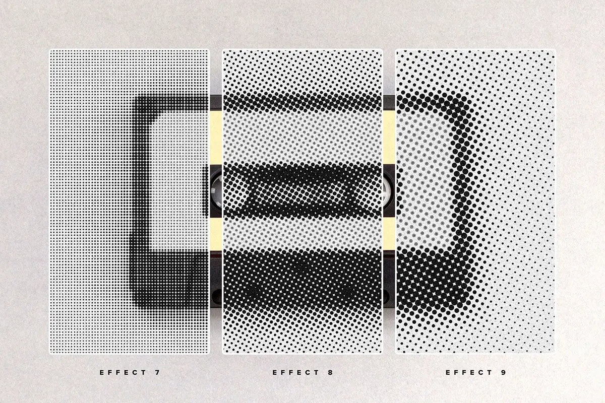 Halftone Photo Effects Pack 潮流复古网眼Halftone半调颗粒图片照片滤镜ps样机素材特效模板