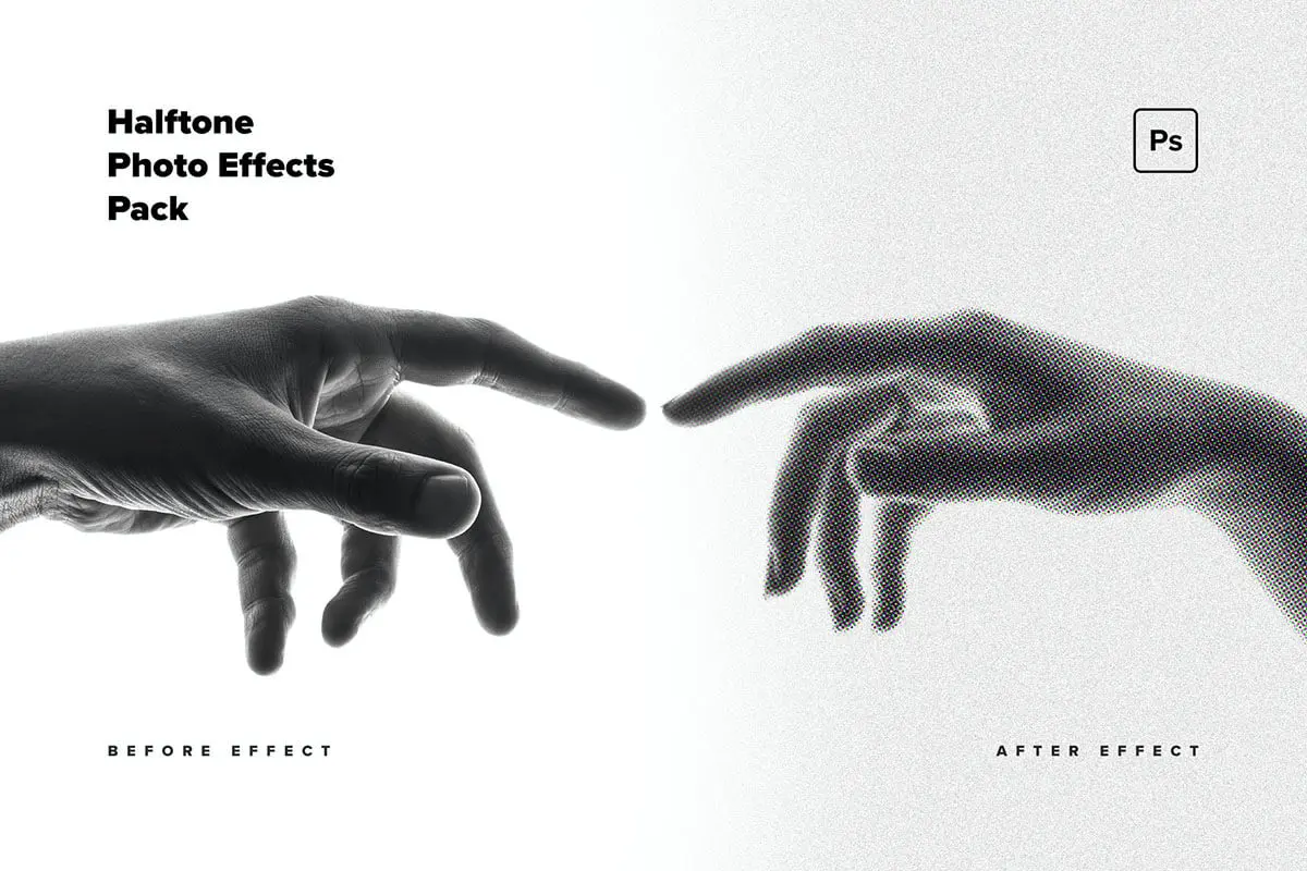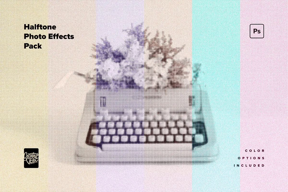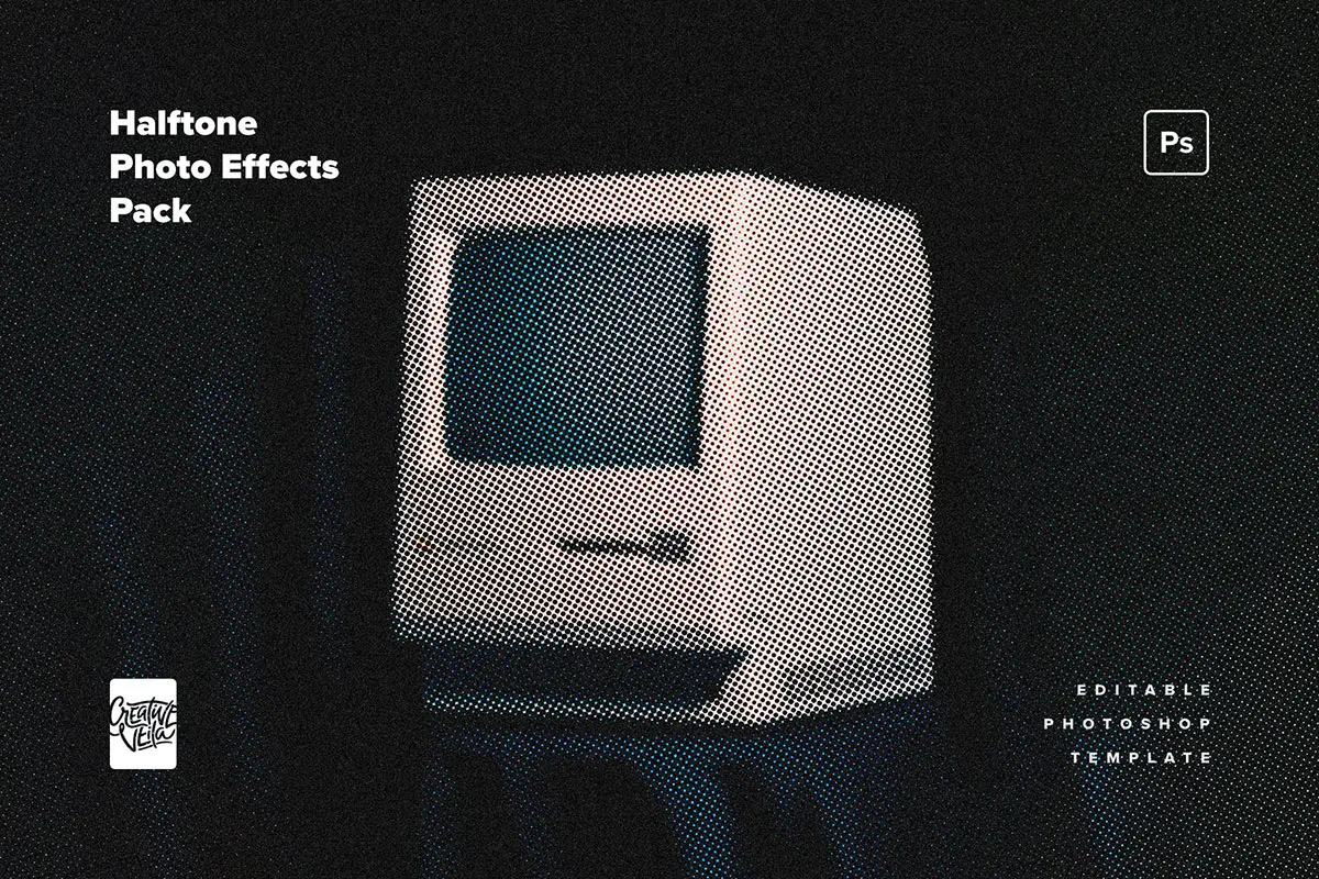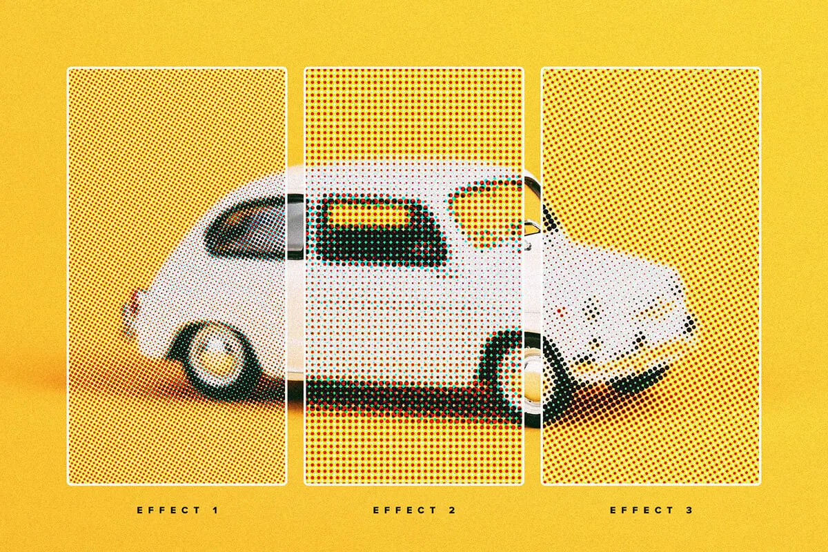 Halftone Photo Effects Pack 潮流复古网眼Halftone半调颗粒图片照片滤镜ps样机素材特效模板