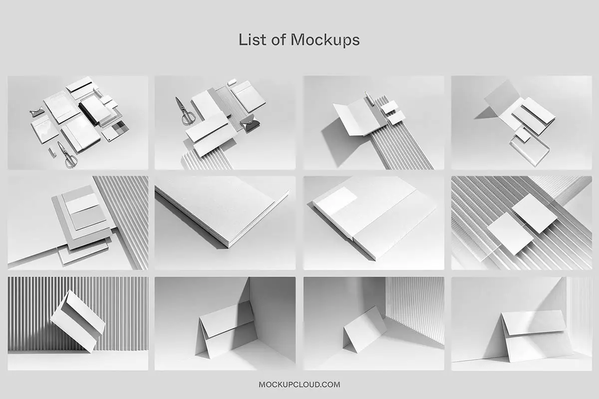 Idenix Branding Mockup Kit 12款质感信封信纸名片封面文具品牌vi应用设计作品贴图ps样机素材
