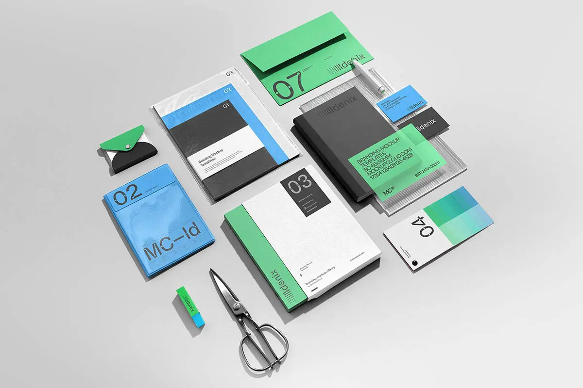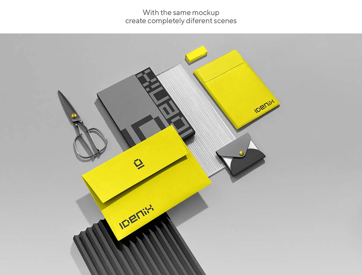 Idenix Branding Mockup Kit 12款质感信封信纸名片封面文具品牌vi应用设计作品贴图ps样机素材