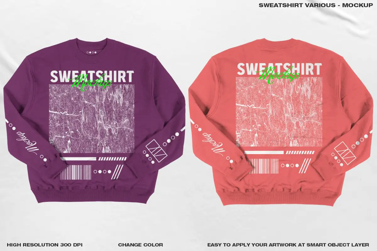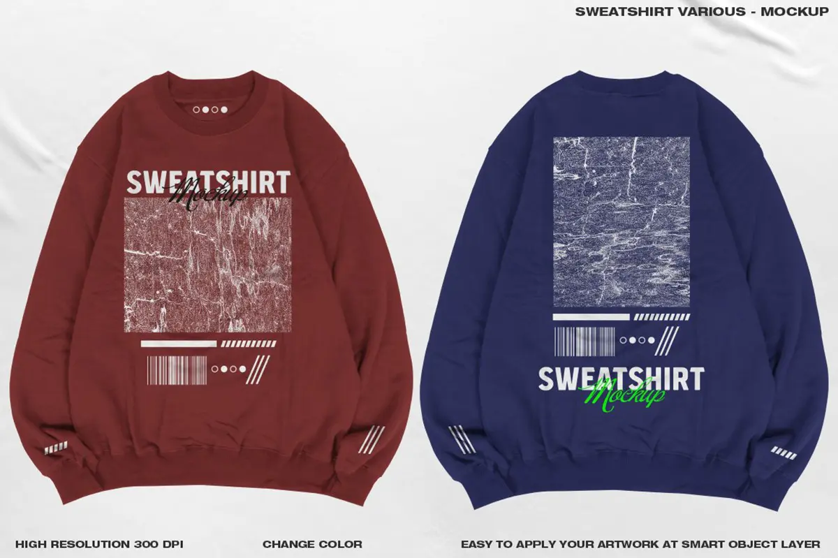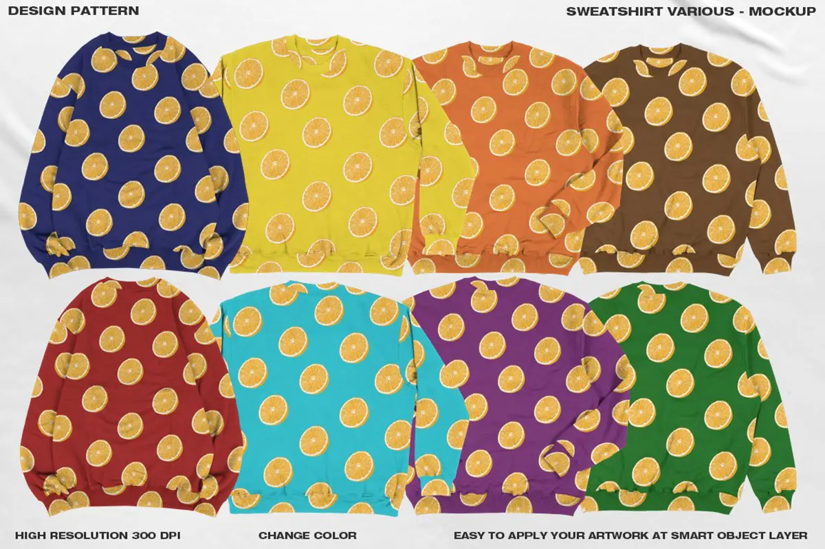 Sweatshirt Various – Mokcup 8款潮流落肩大码圆领卫衣服装印花图案设计贴图ps样机素材模板