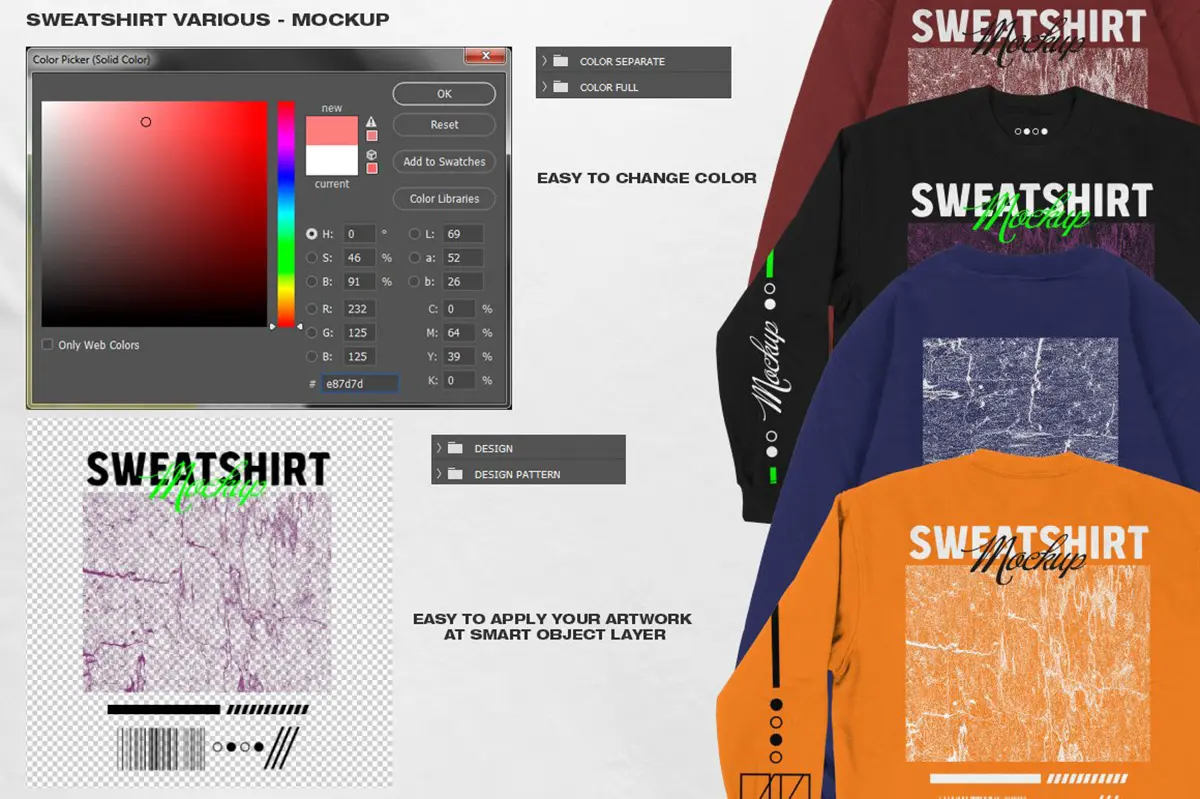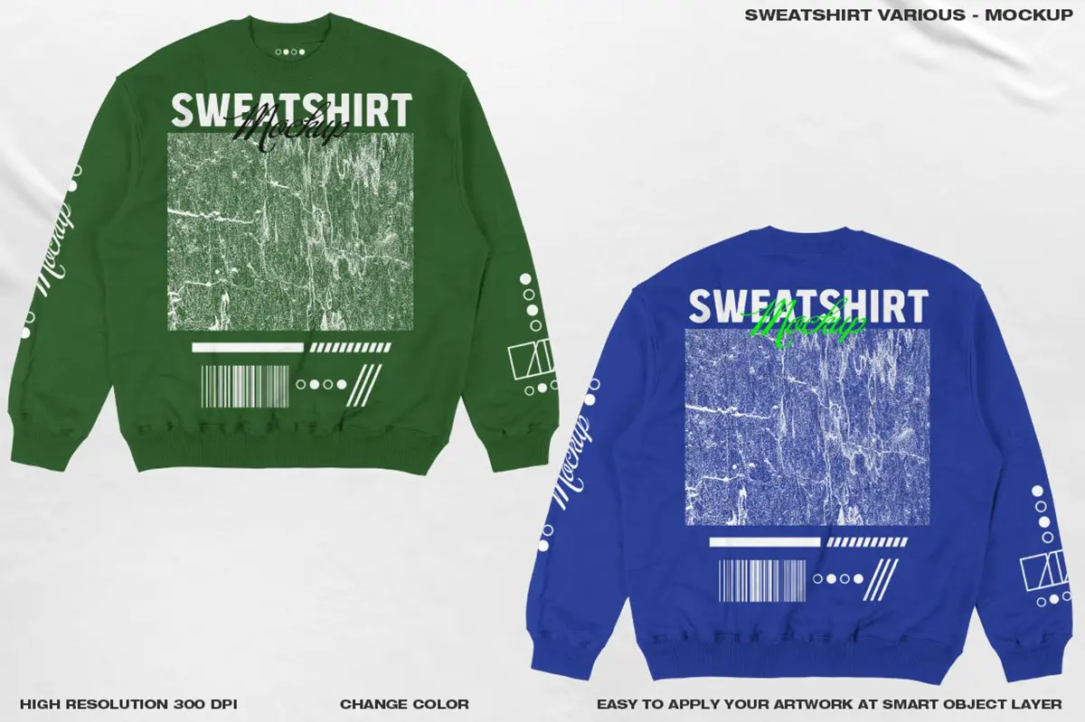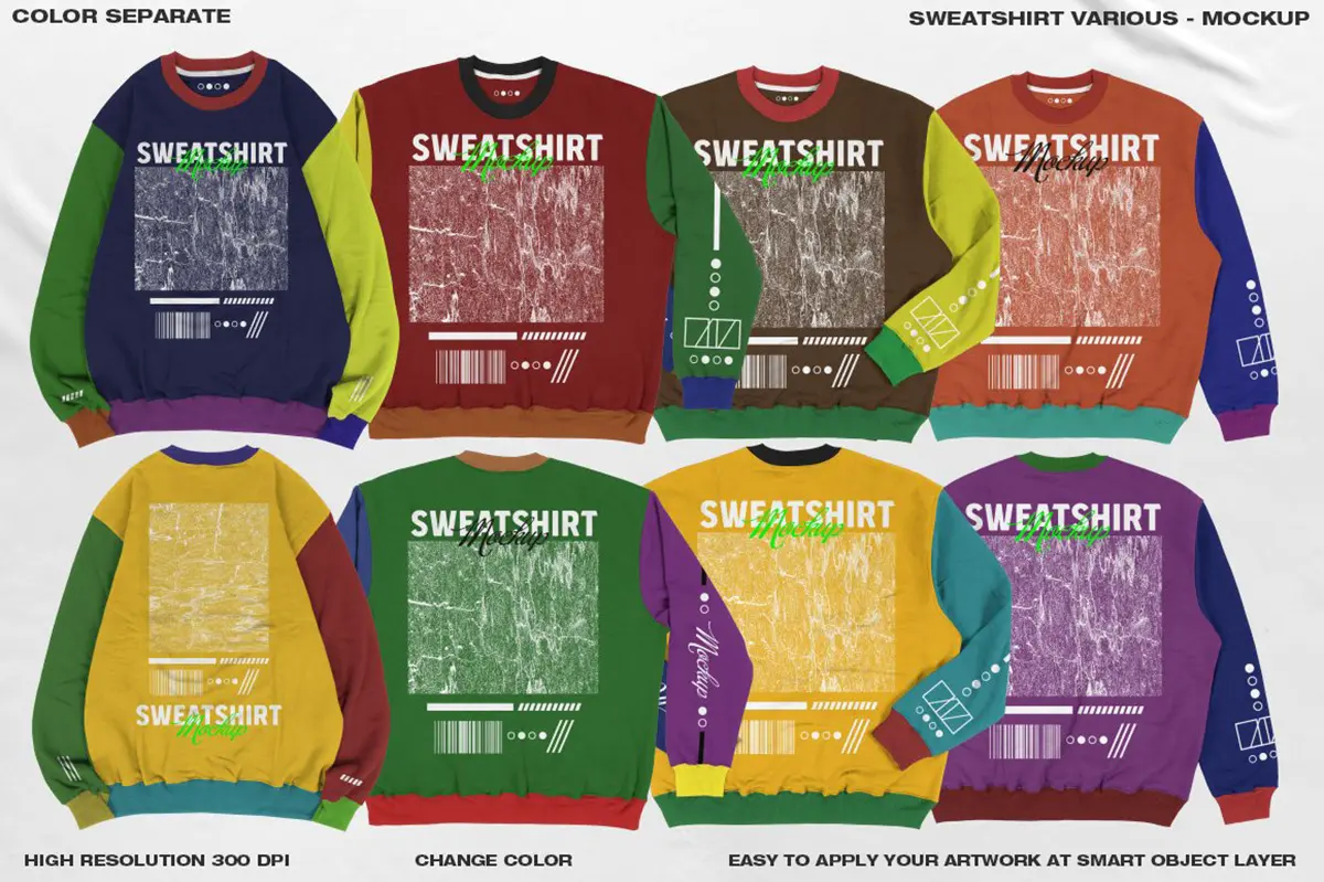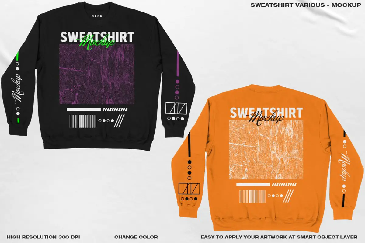 Sweatshirt Various – Mokcup 8款潮流落肩大码圆领卫衣服装印花图案设计贴图ps样机素材模板