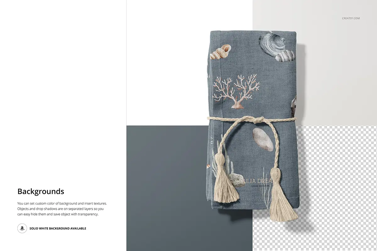 Cotton Linen Napkin Mockup Set 手工棉麻亚麻厨房巾餐巾垫布印花图案设计贴图ps样机素材展示效果