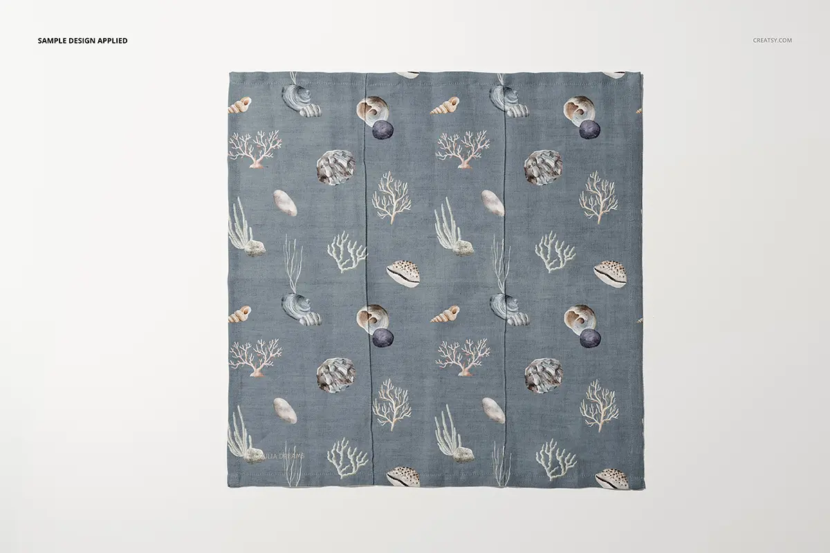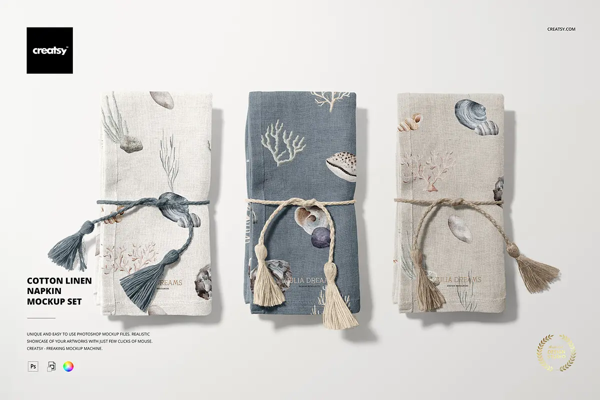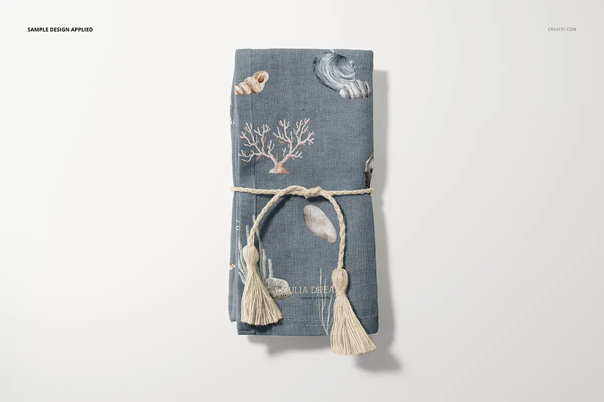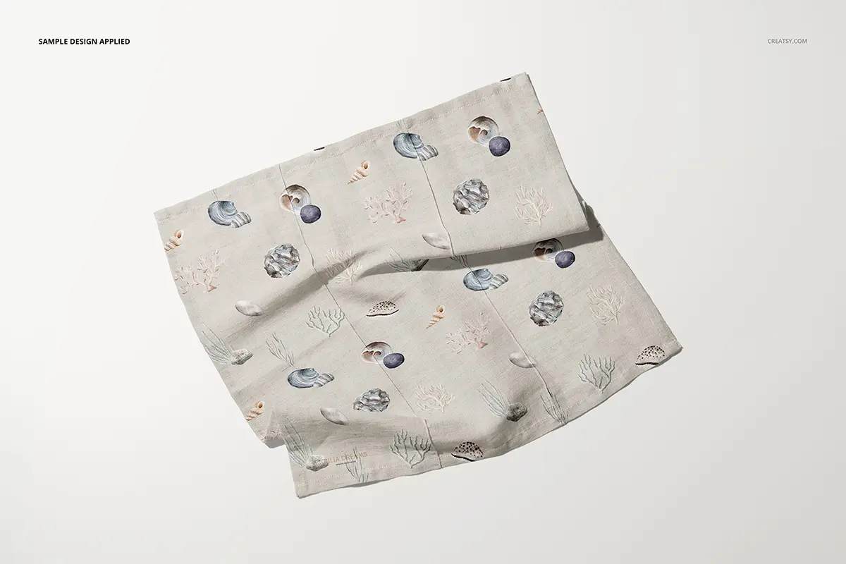 Cotton Linen Napkin Mockup Set 手工棉麻亚麻厨房巾餐巾垫布印花图案设计贴图ps样机素材展示效果