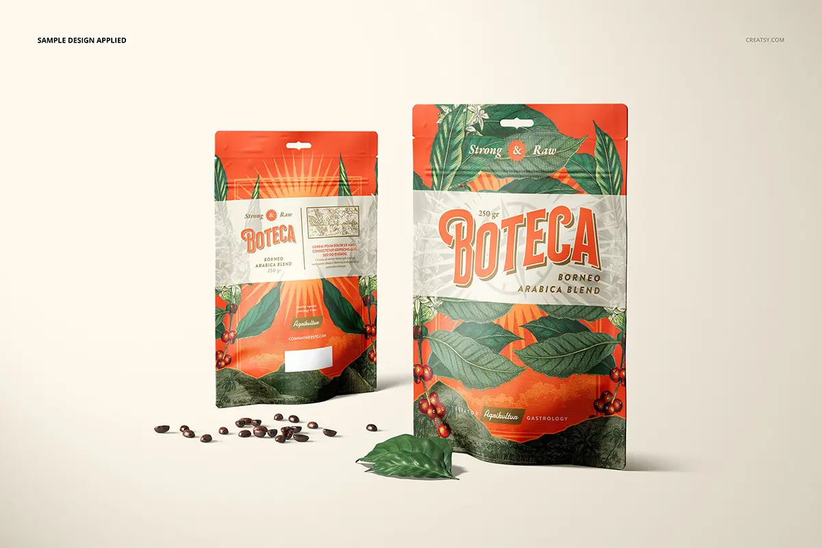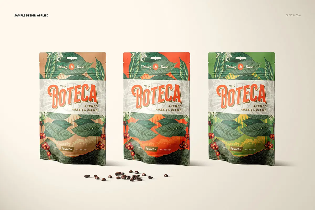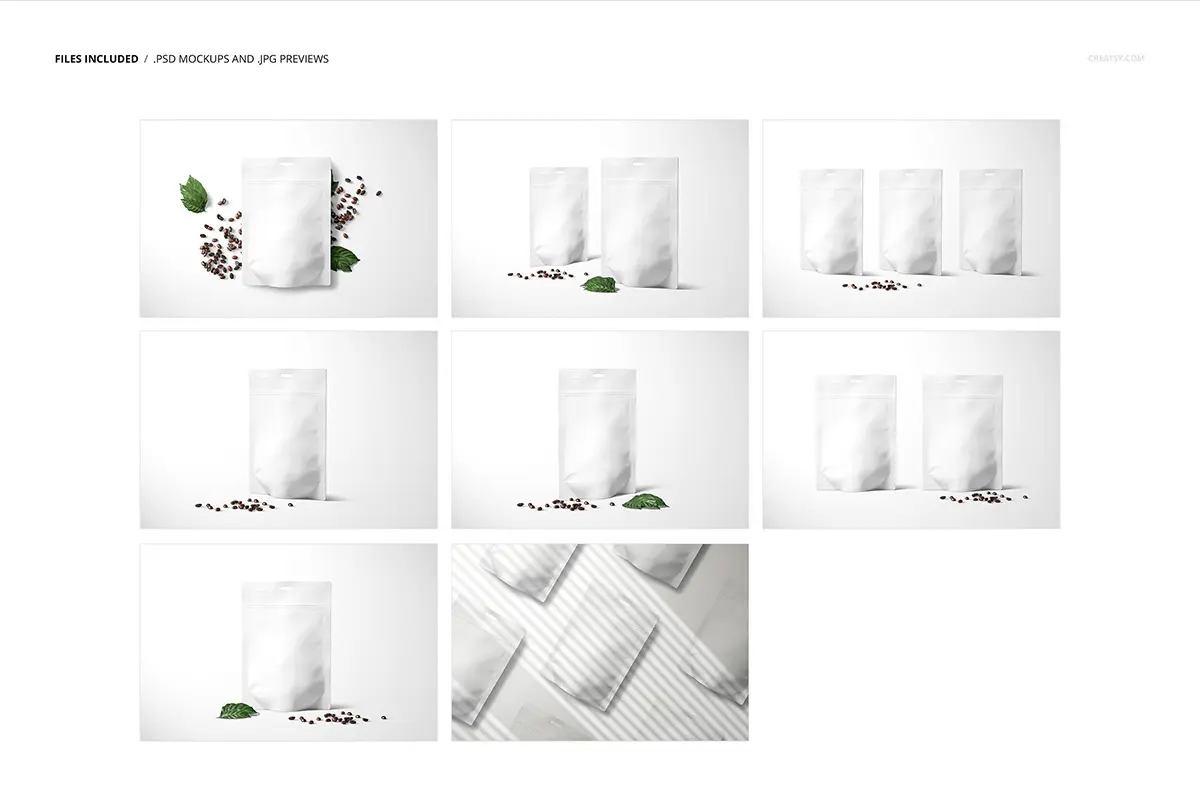 Doypack Bag Pouch Mockup Set 零食咖啡豆自立袋自封袋食品包装设计贴图ps样机素材展示效果模板