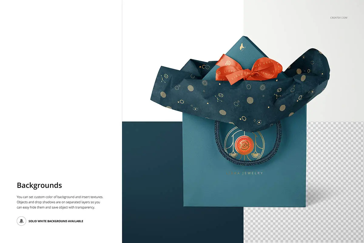 Jewelry Wrapping Tissue Paper Mockup 8款珠宝首饰礼品礼物包装盒拎袋设计作品贴图ps样机素材展示模板