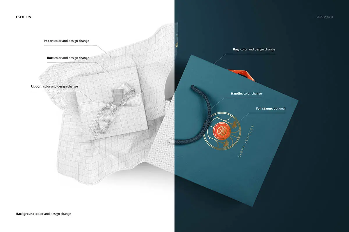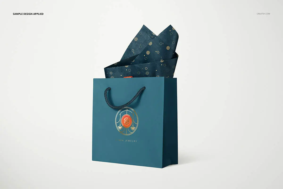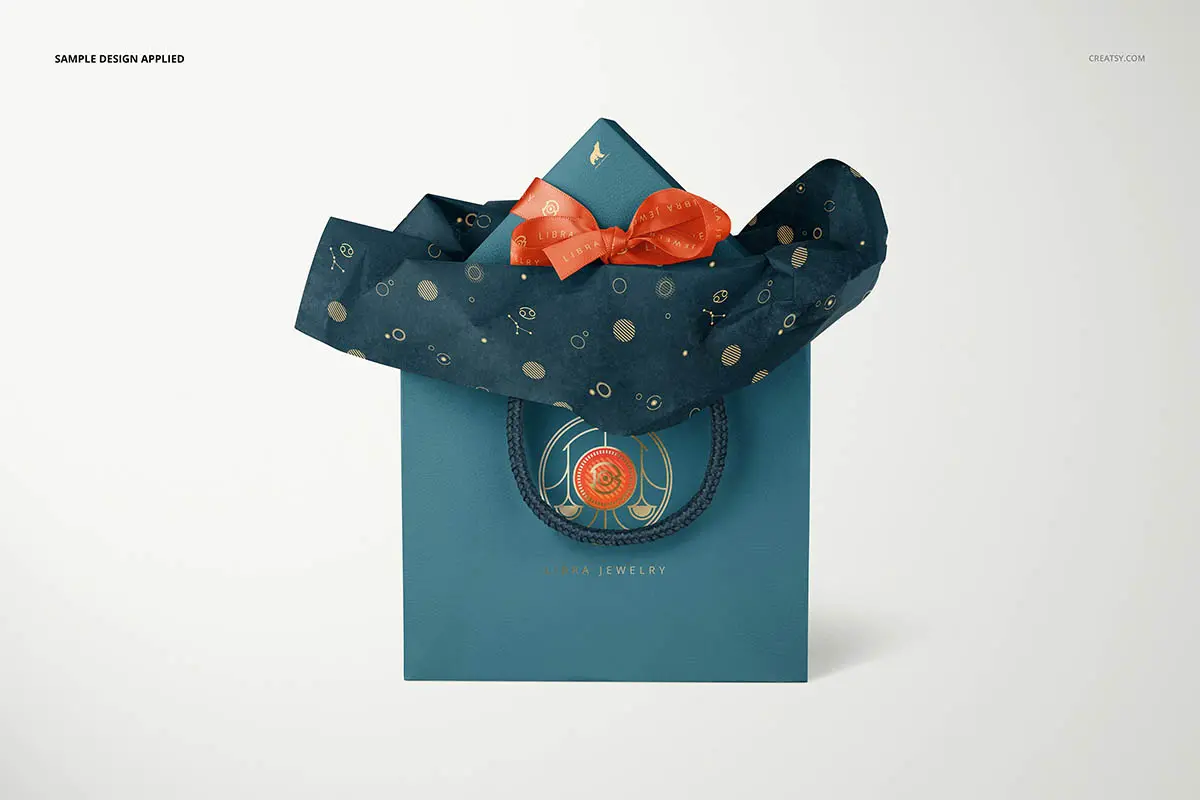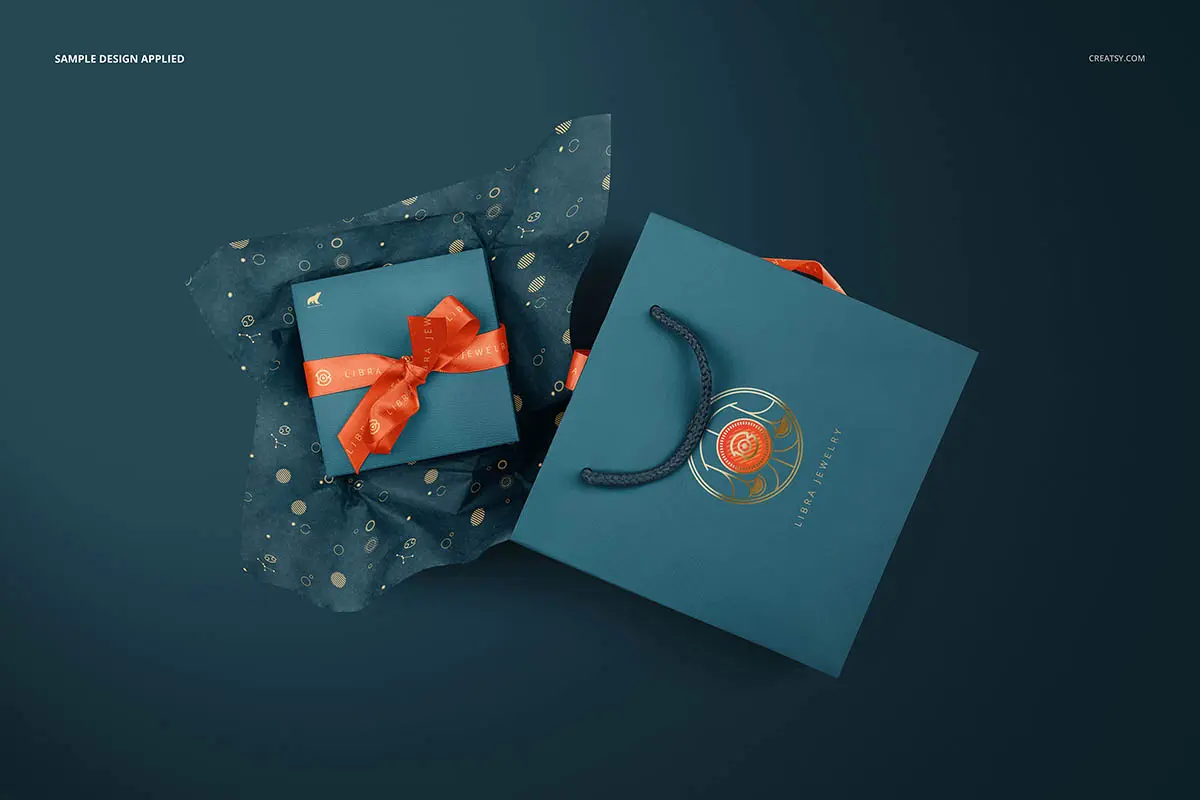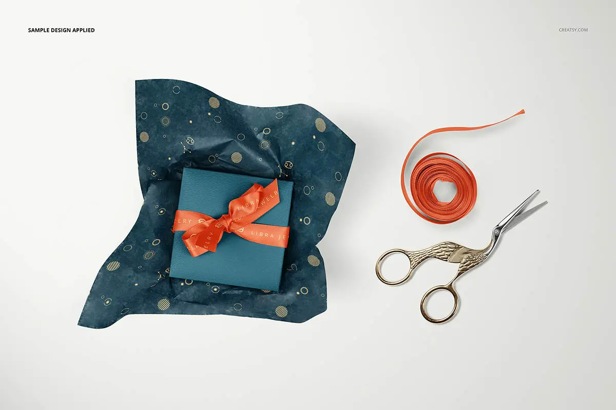 Jewelry Wrapping Tissue Paper Mockup 8款珠宝首饰礼品礼物包装盒拎袋设计作品贴图ps样机素材展示模板