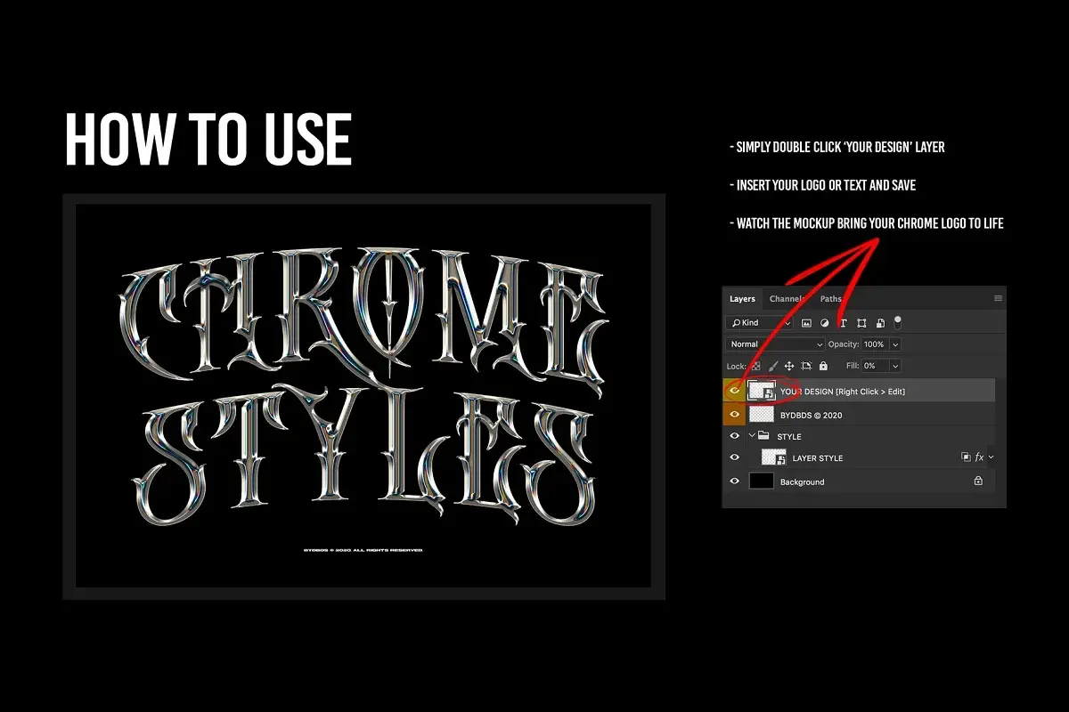Chrome Text Styles 3.0 5款嘻哈潮流哥特logo特效生成立体金属字体设计ps样机素材源文件