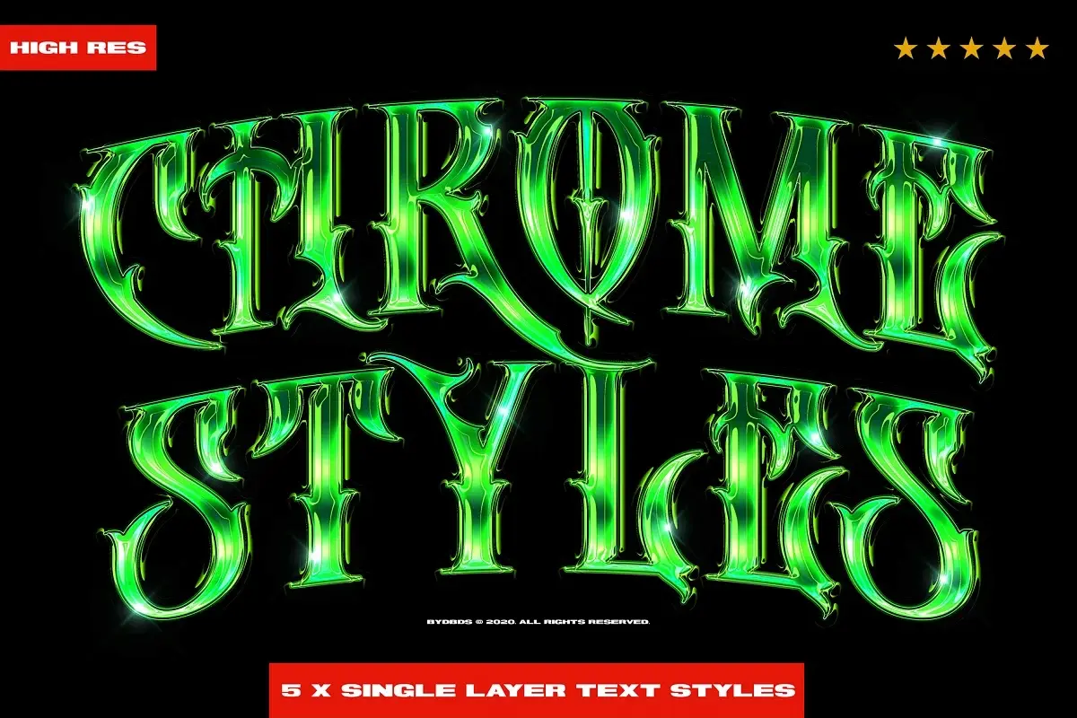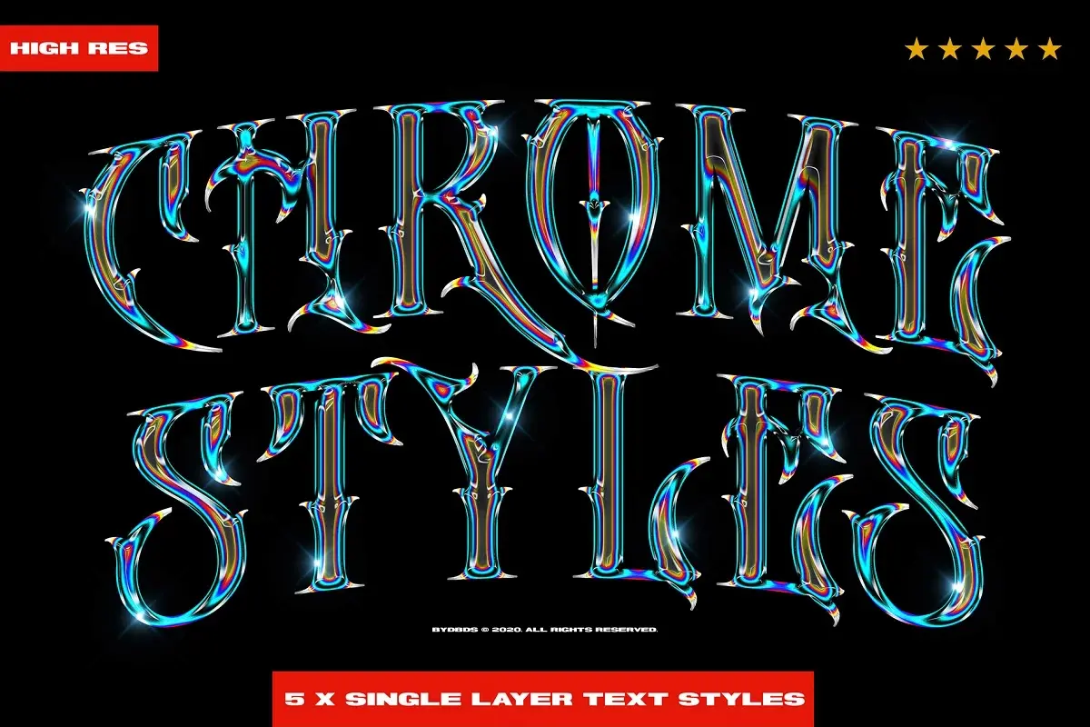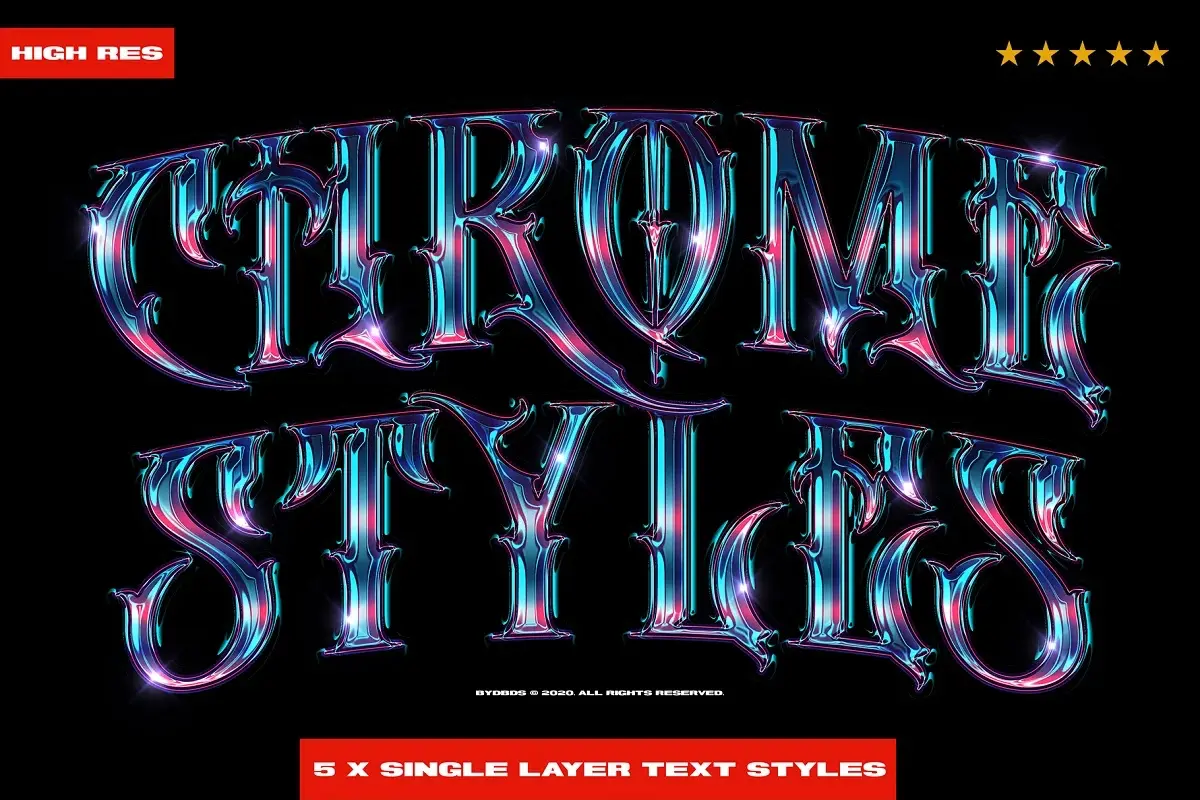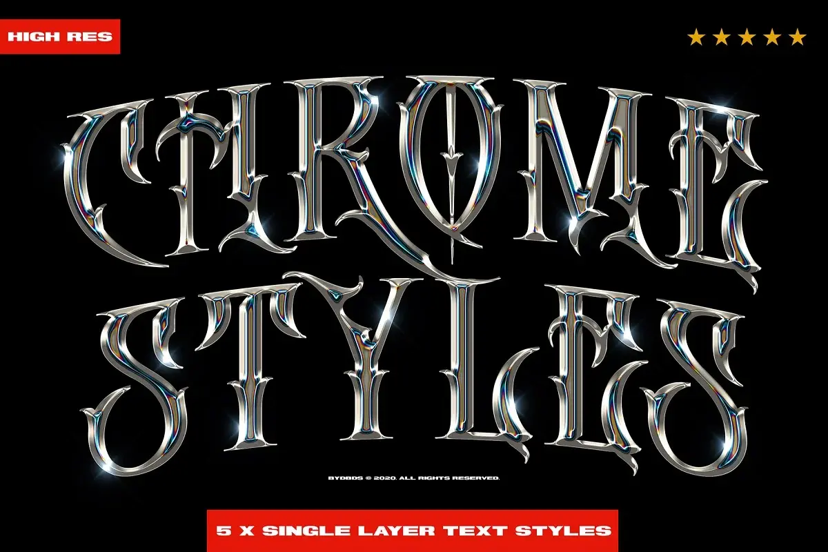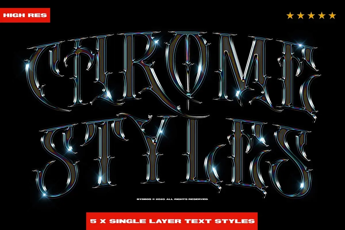Chrome Text Styles 3.0 5款嘻哈潮流哥特logo特效生成立体金属字体设计ps样机素材源文件