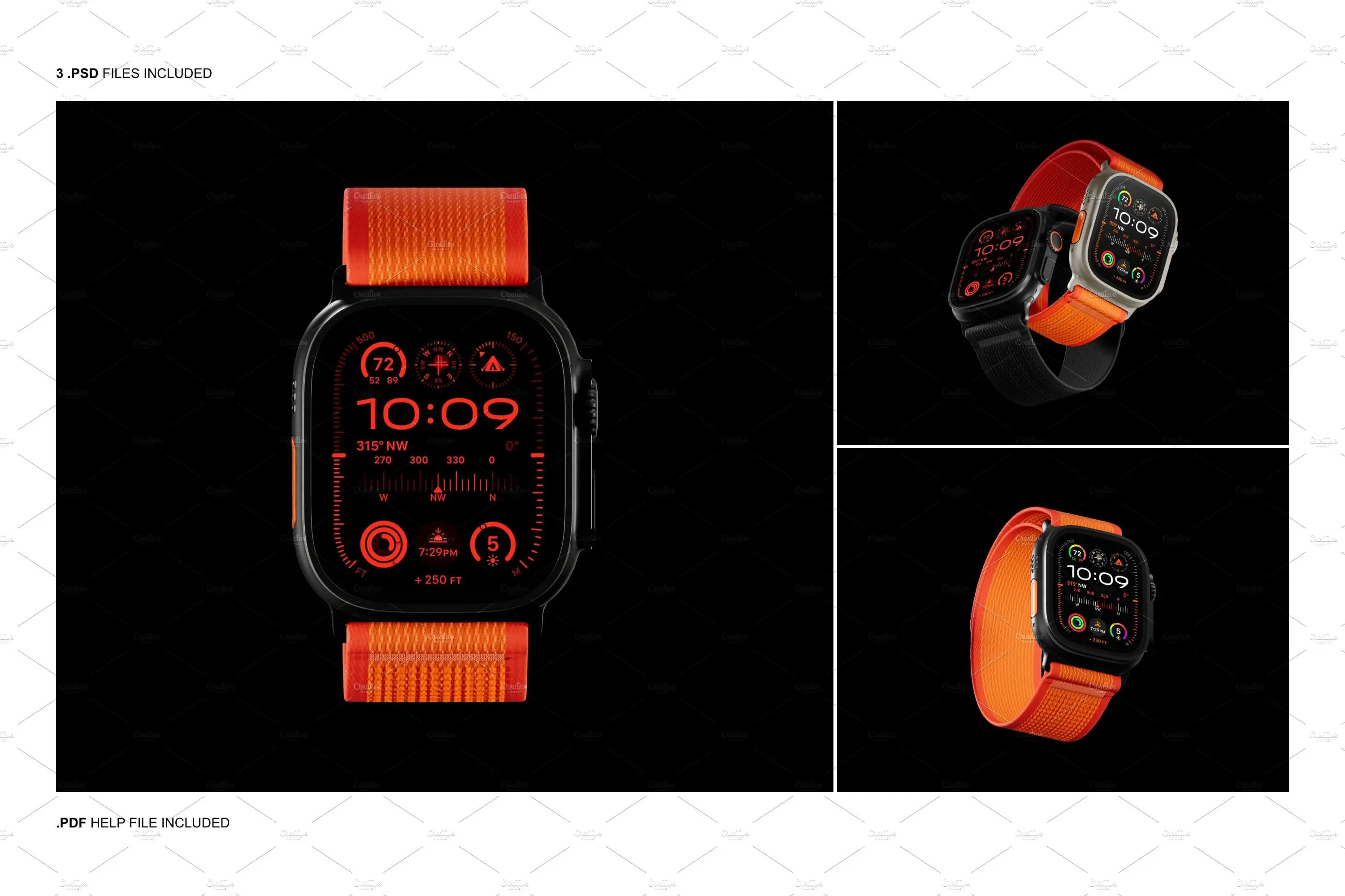 Watch Ultra Mockup 高级苹果智能手表iWatch屏幕演示贴图PSD样机模板素材