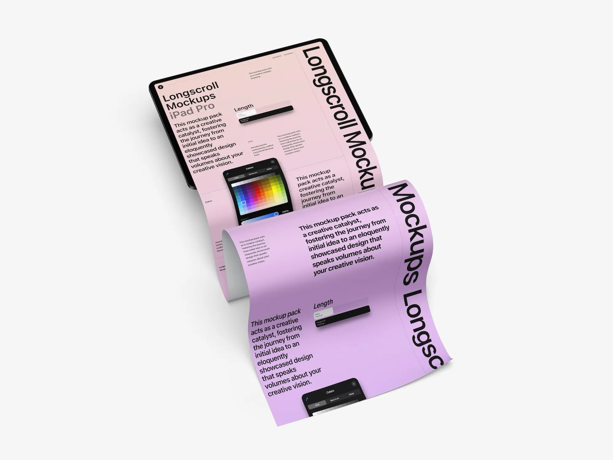 iPad and iPhone Longscroll Mockups 8款高级长卷轴APP网页界面设计作品集展示贴图PSD样机模板