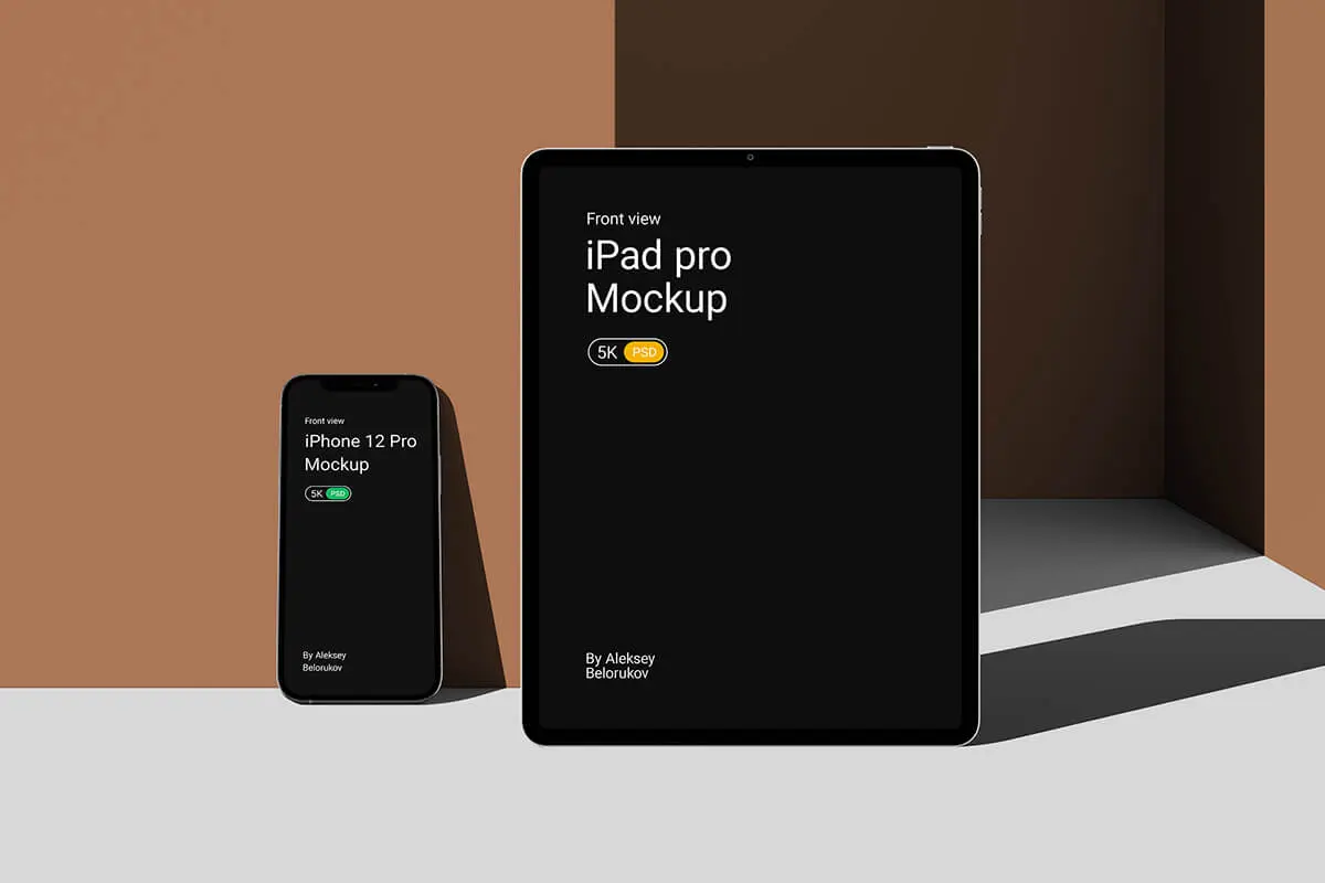 Device Pack Mockups – front view 15款iphone手机ipad ui界面设计作品贴图ps样机素材场景展示效果