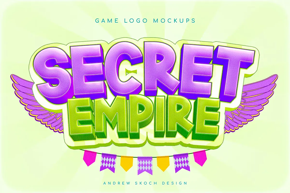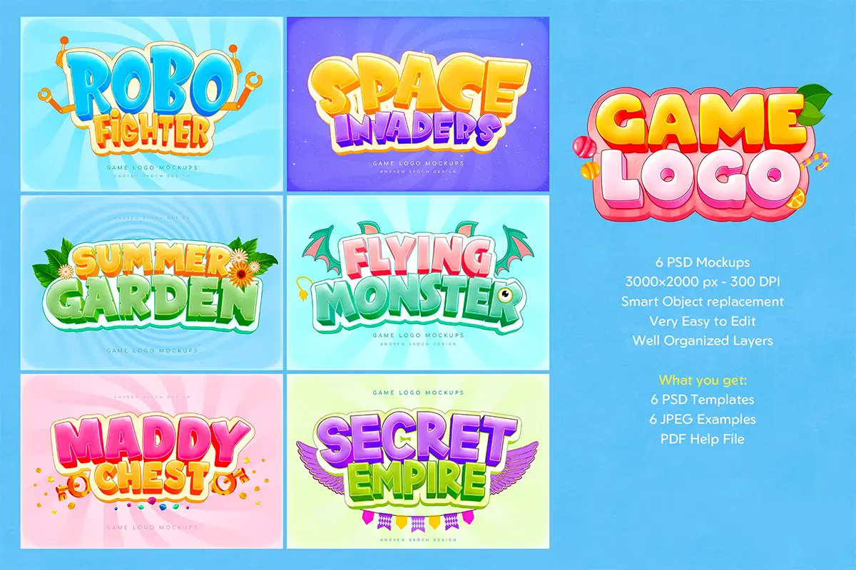 Game Logo Text Effects 6款3D卡通游戏logo徽标Slogan标识文本字母糖果ps特效样机素材模板