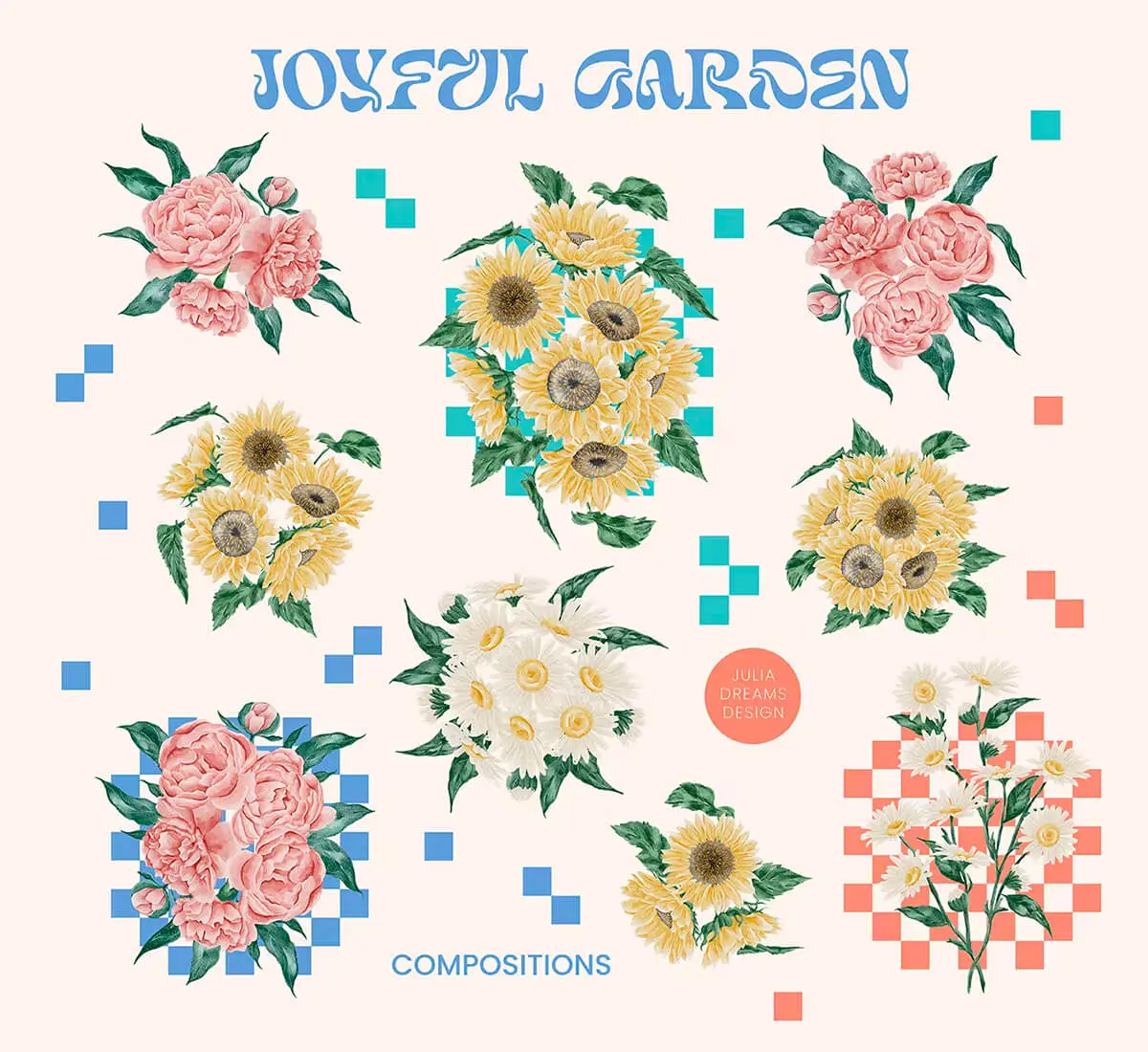 Joyful Garden Collection 优雅时尚复古水彩手绘花卉植物装饰图案插图插画webp免抠图片素材