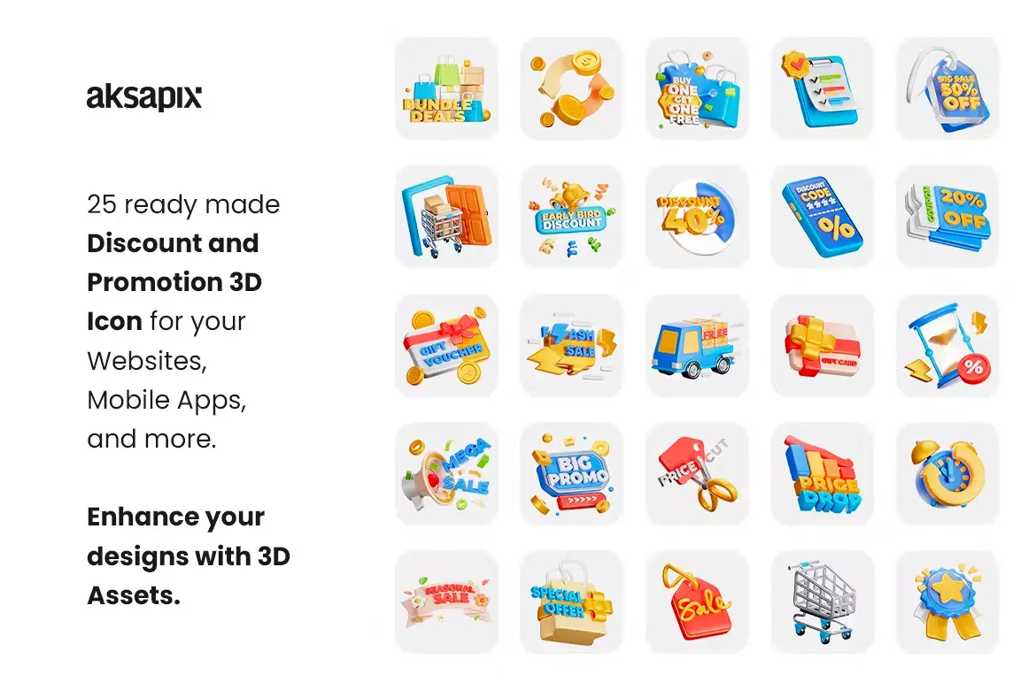Discount and Promotion 3D Icon 25款电商购物节促销打折营销优惠活动3D图标icon素材webp免抠图片