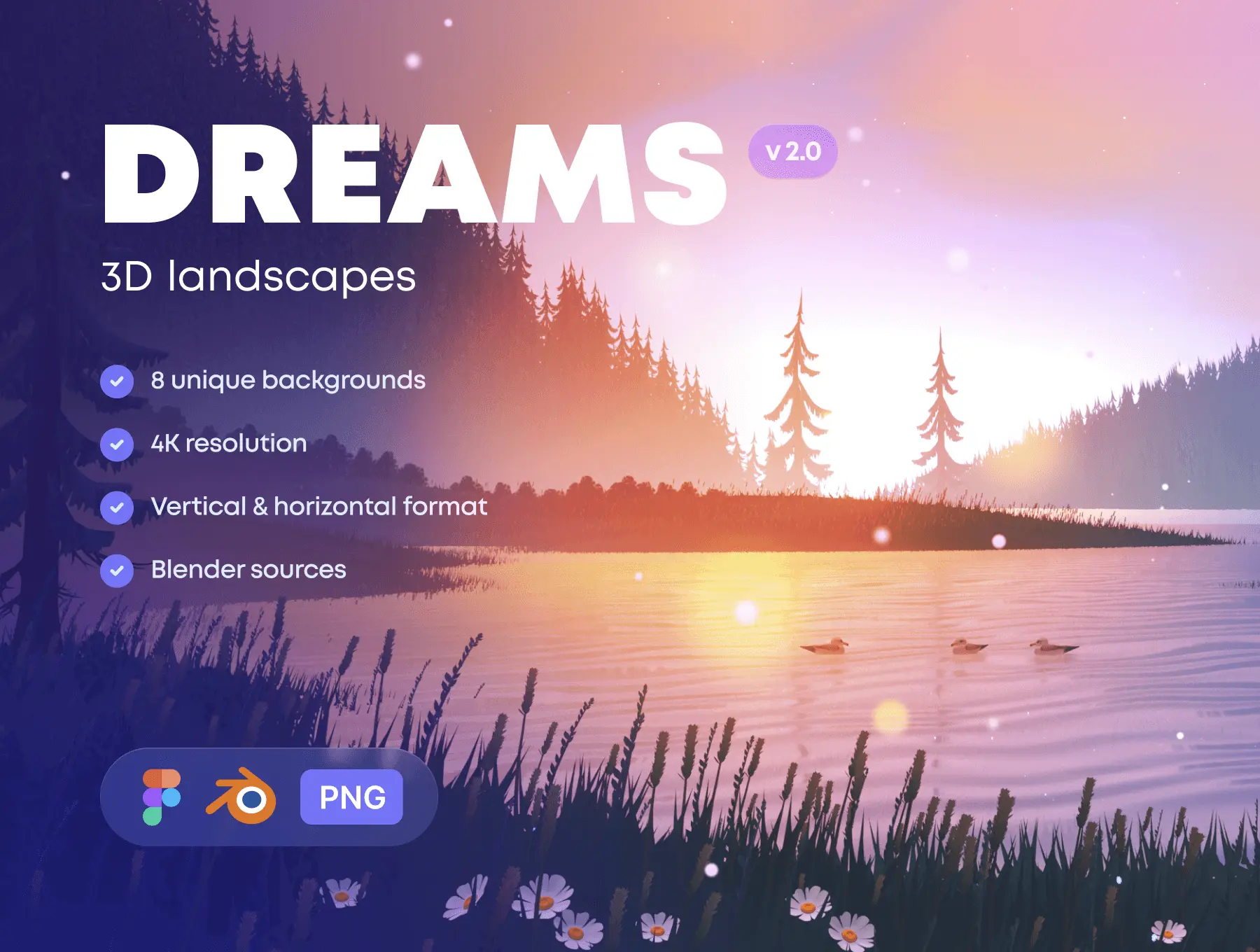 Dreams 2.0 – 3D Landscapes 16款超清卡通梦幻风景景观Blender模型+PNG背景图片设计素材包