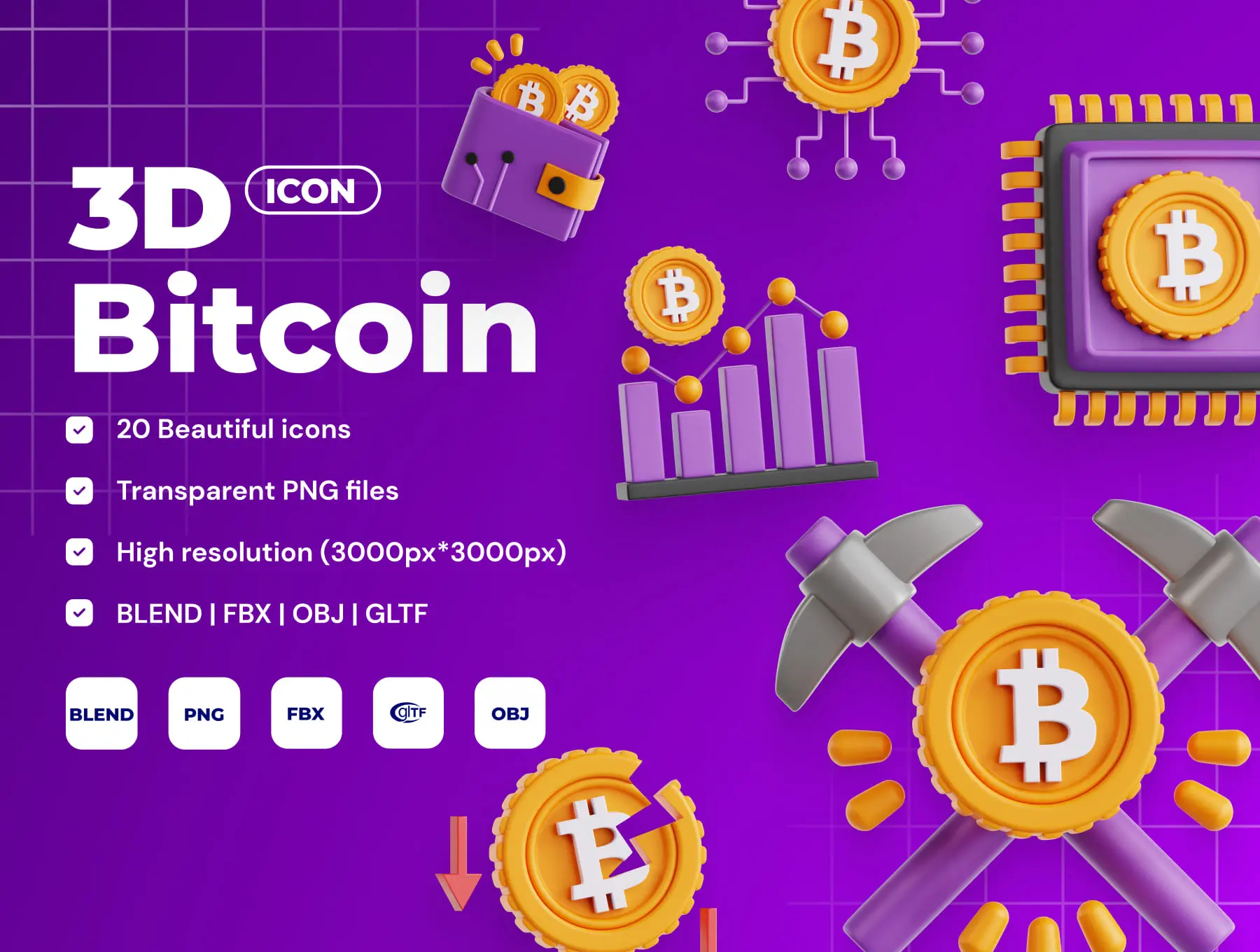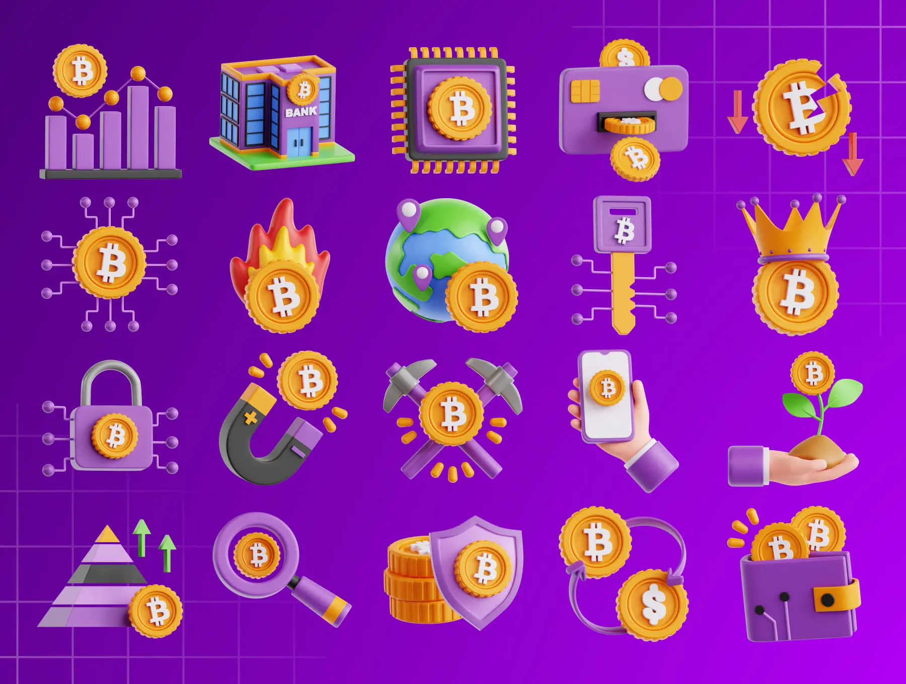 Bitcoin 3D Icon Pack 20款比特币银行金融业务展示3D图标icon素材包webp免抠图文件
