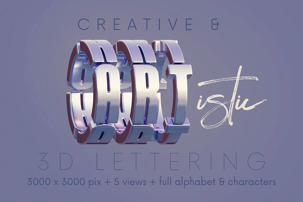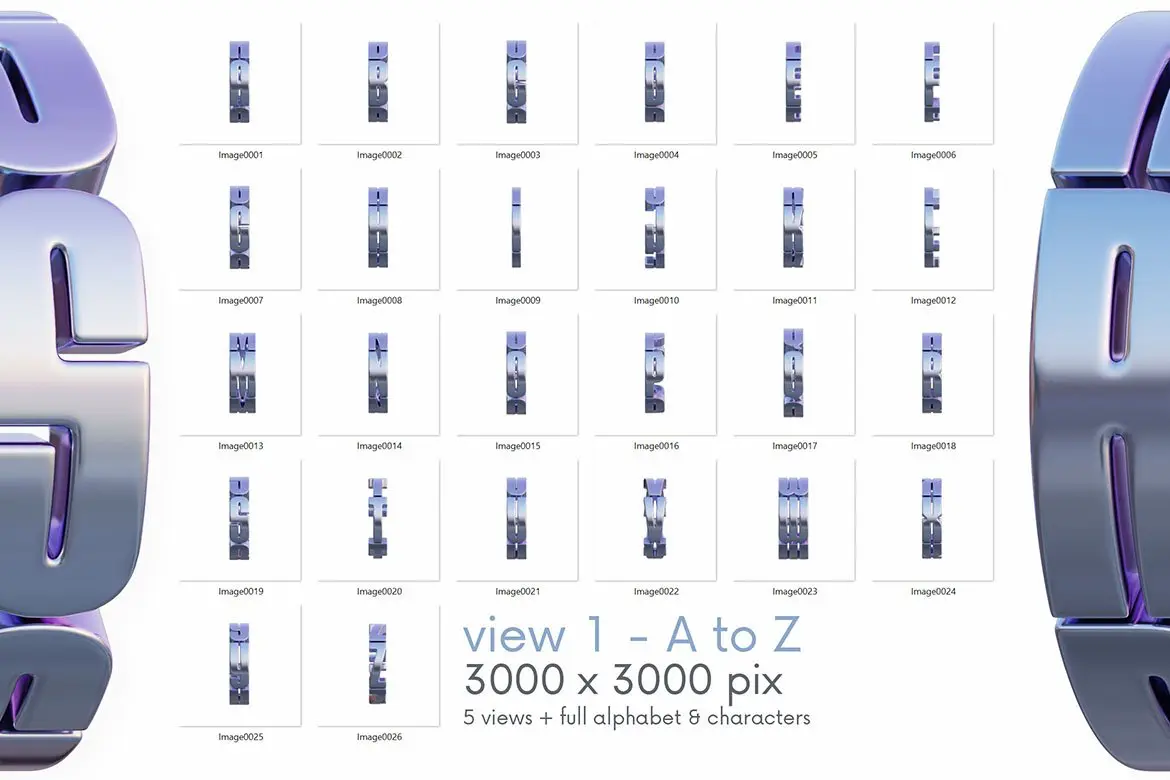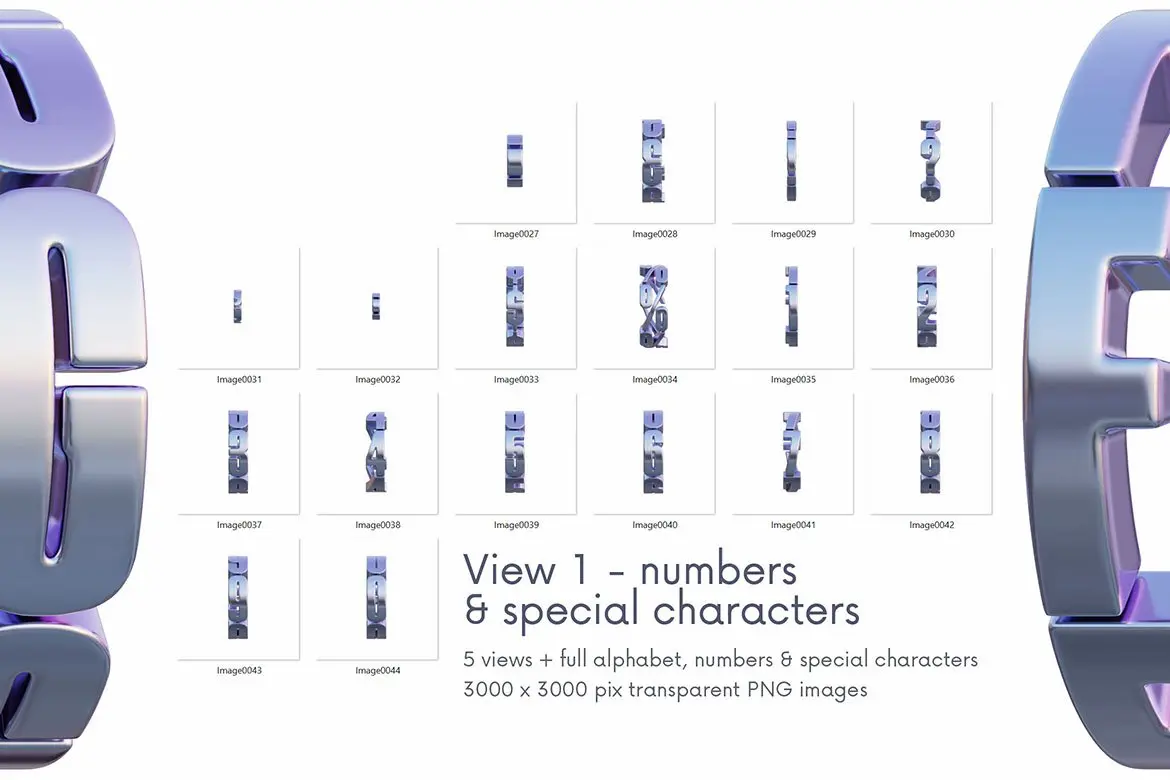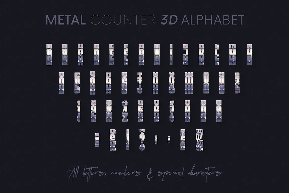 Metal Counter – 3D Lettering 多角度金属圆环科幻未来3D立体英文字母数字webp免抠图片设计素材