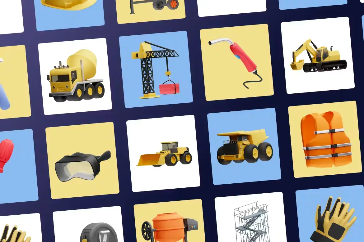 3D Construction Icons 30款建筑工地施工设备主题3D图标icon设计素材