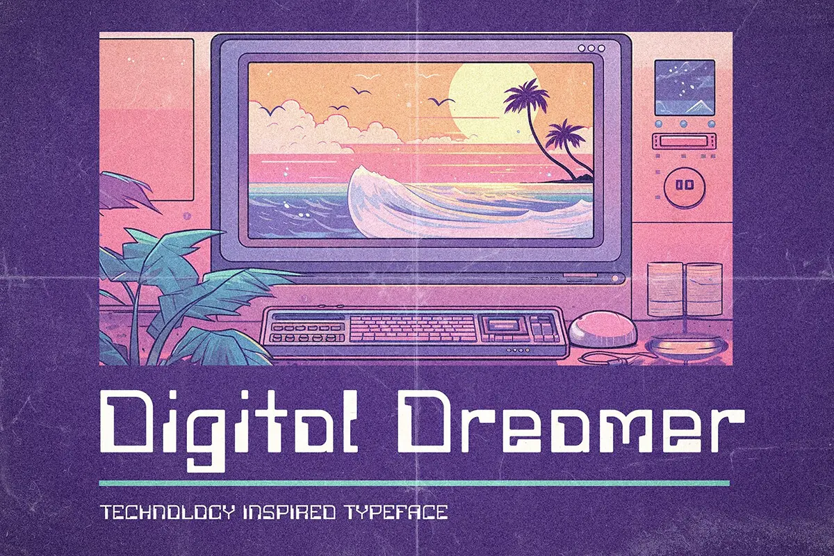 Digital Dreamer 1980s Computer Typeface 未来复古人工智能网络科技海报logo设计装饰英文字体安装包