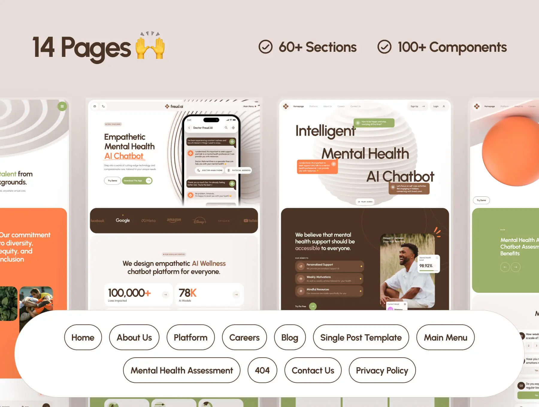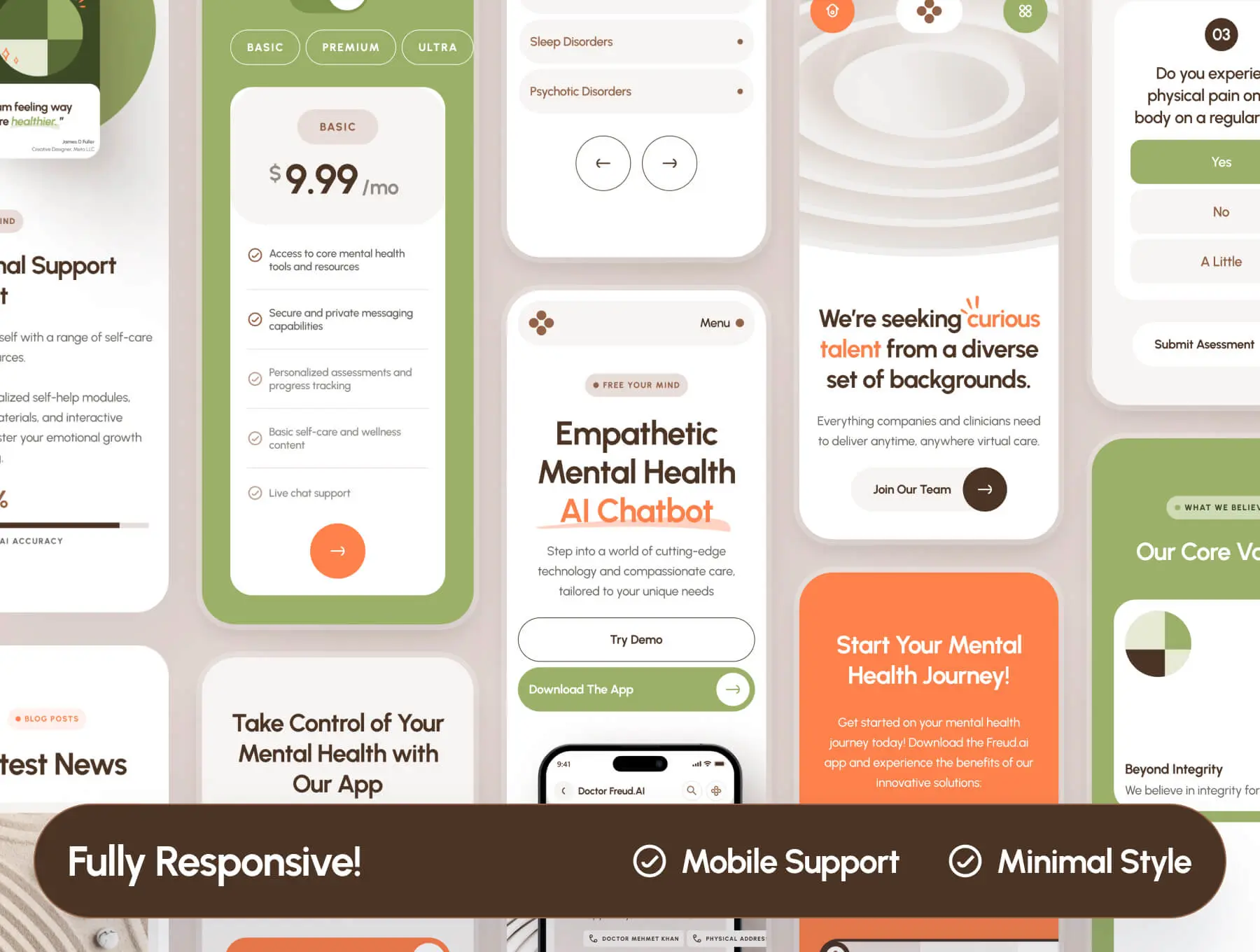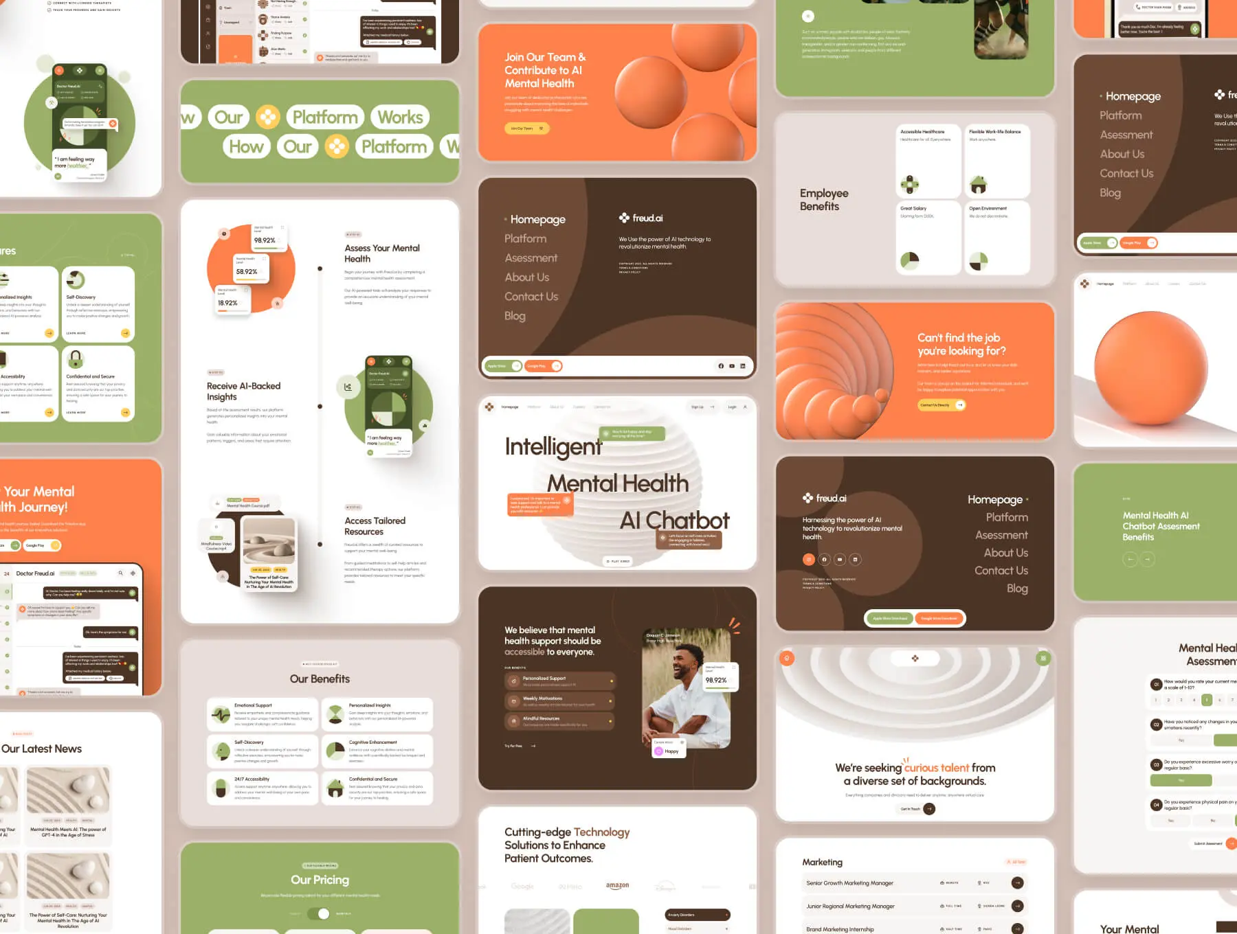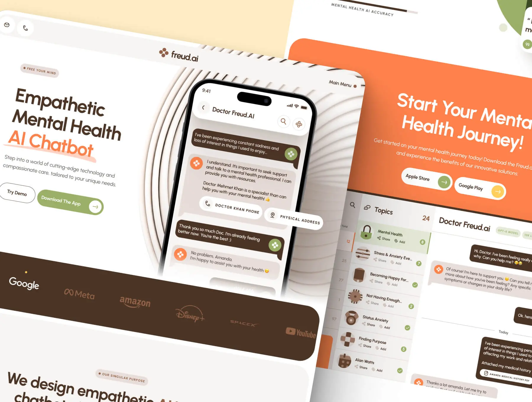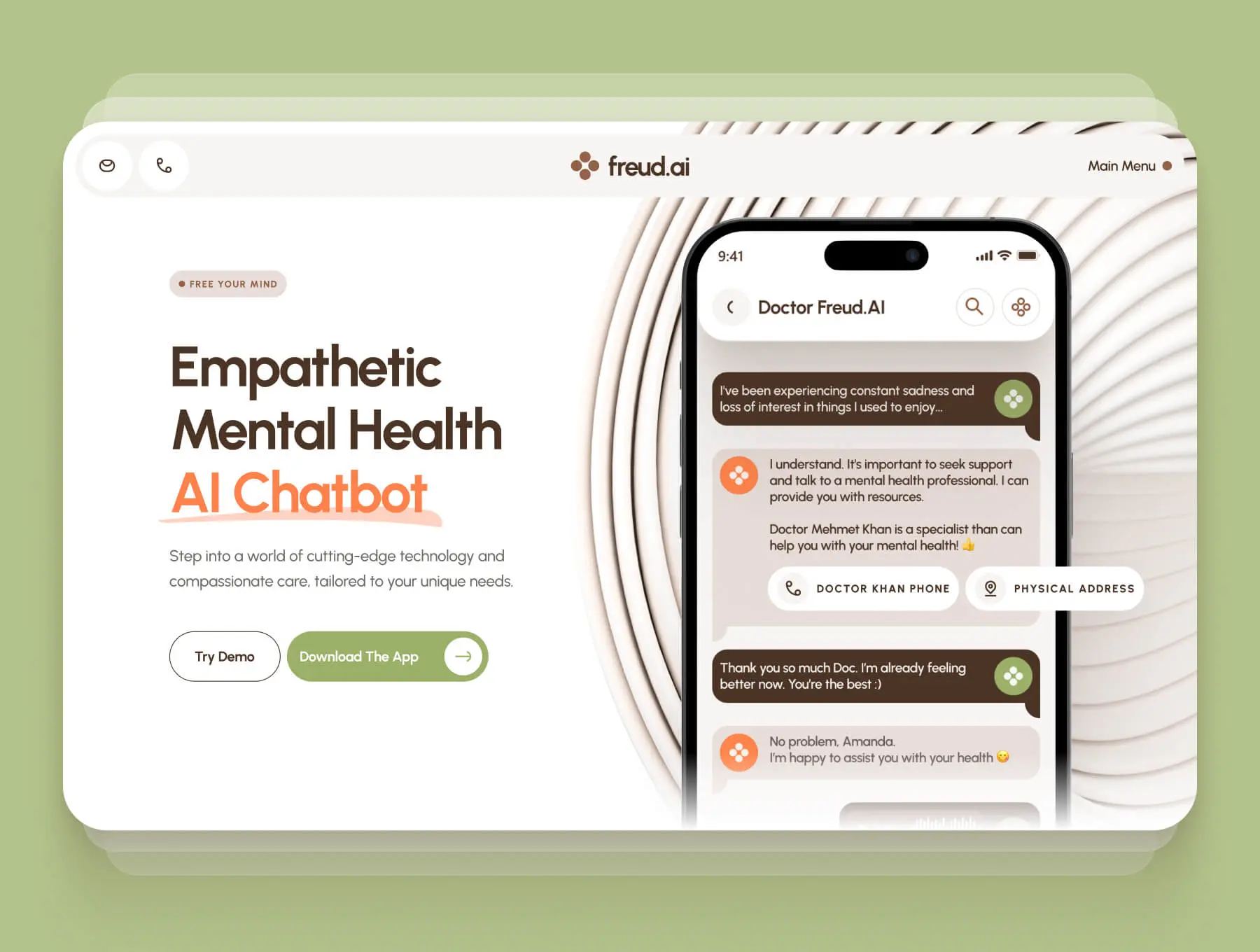 freud AI Mental Health Chatbot Website 心理健康人工智能聊天解答咨询移动网页设计用户界面ui套件模板