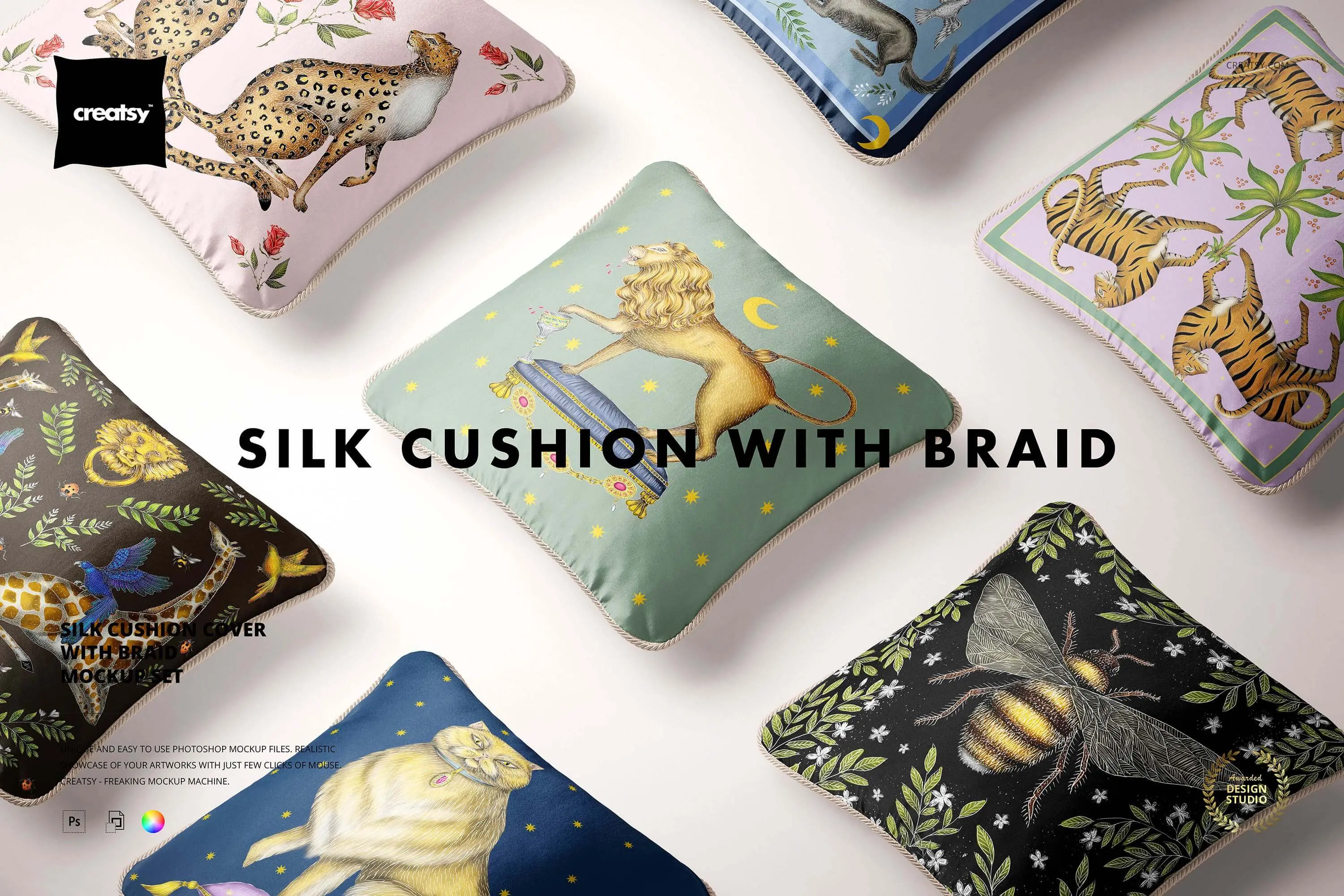Silk Cushion with Braid Mockup Set 14款质感居家抱枕靠垫腰靠图案印花设计贴图ps样机素材展示模板