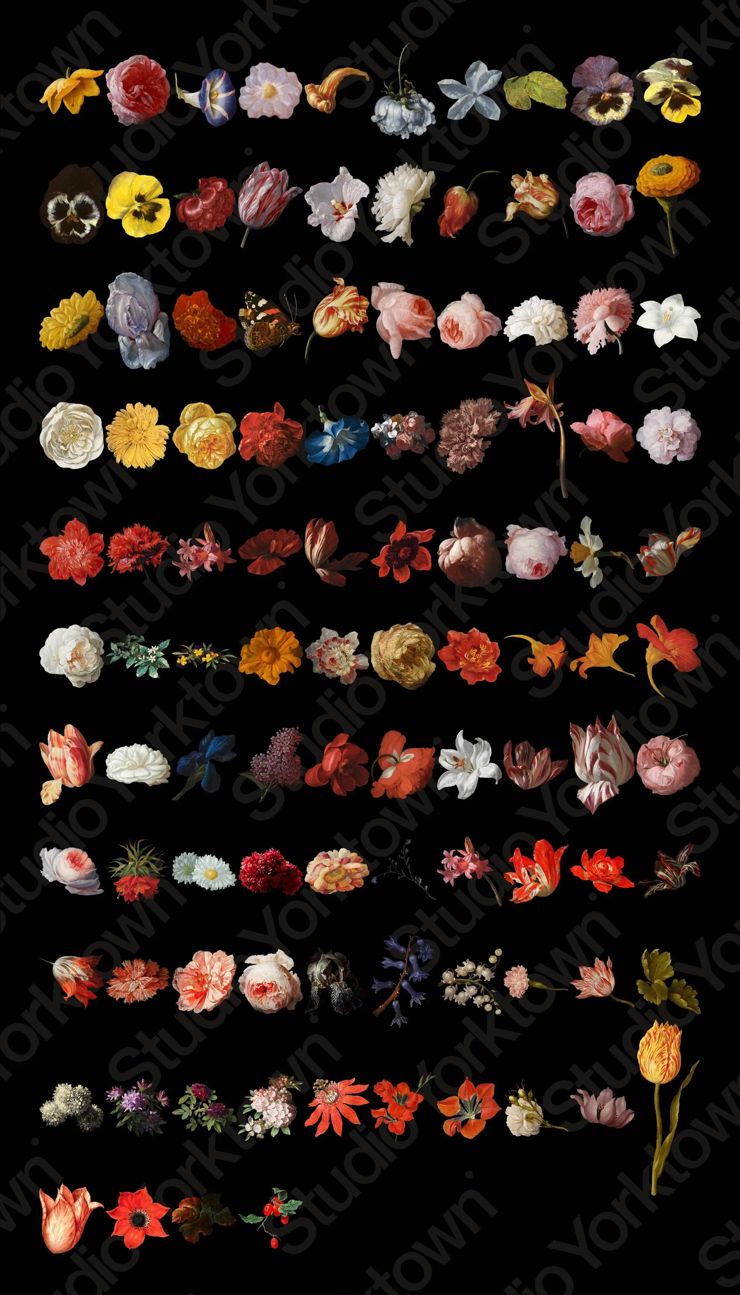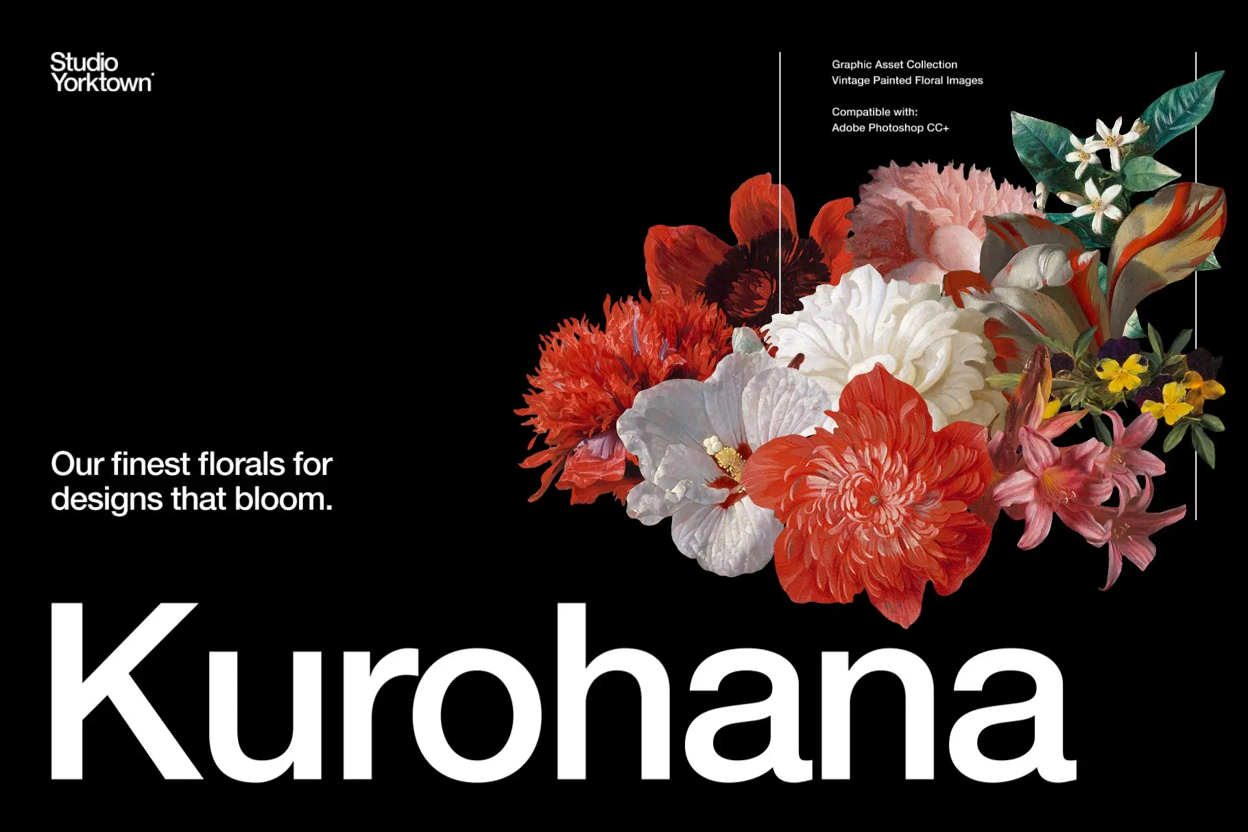 Kurohana Painted Florals Collection 104款质感复古艺术宫廷拼贴鲜花植物花卉图案webp免抠图片设计素材