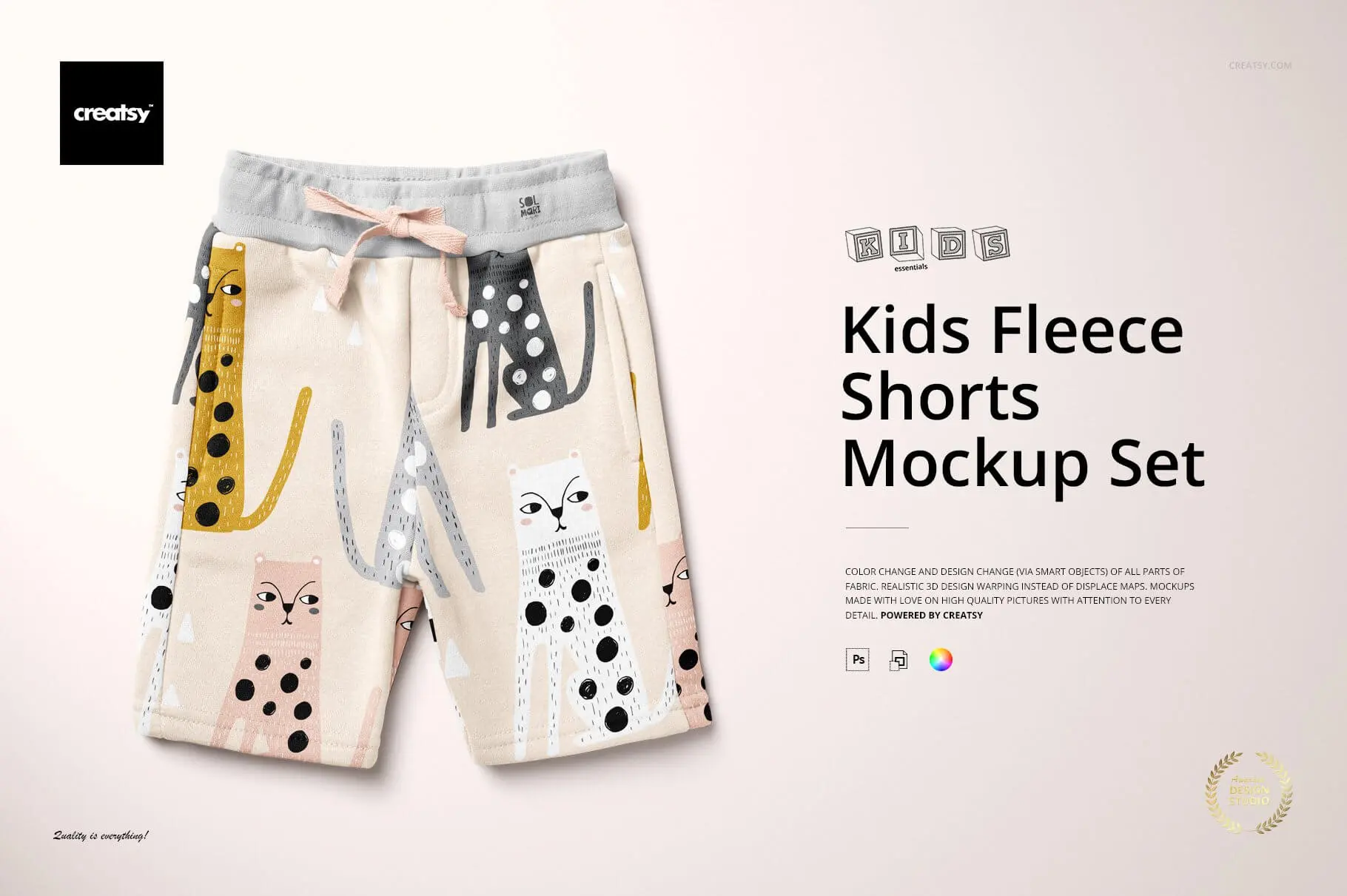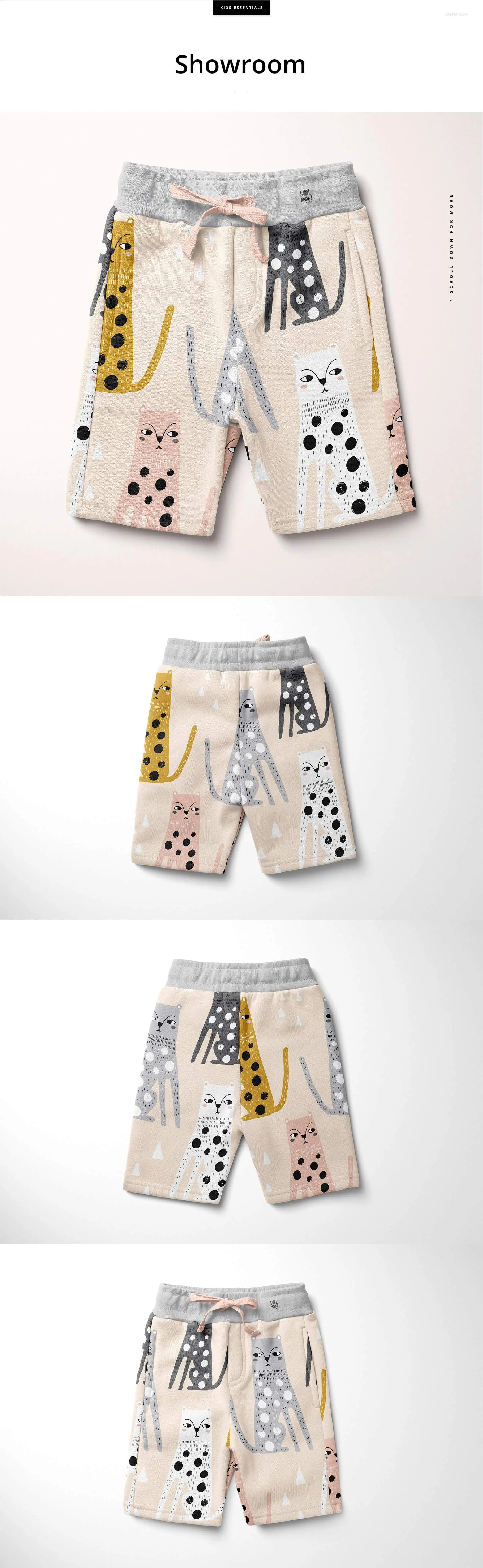 Kids Fleece Shorts Mockup Set 儿童全棉休闲运动短裤童装印花图案设计贴图ps样机素材展示模板
