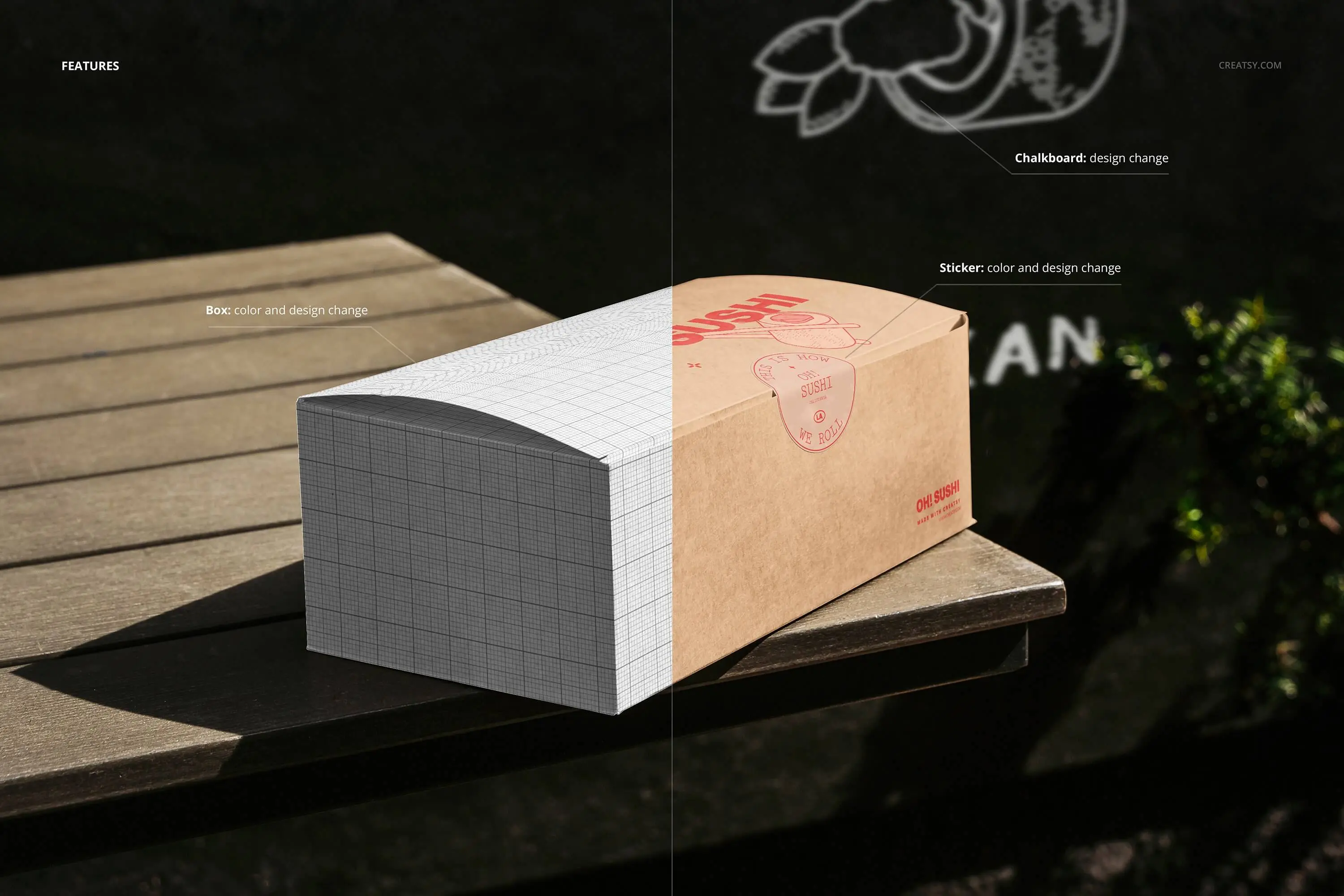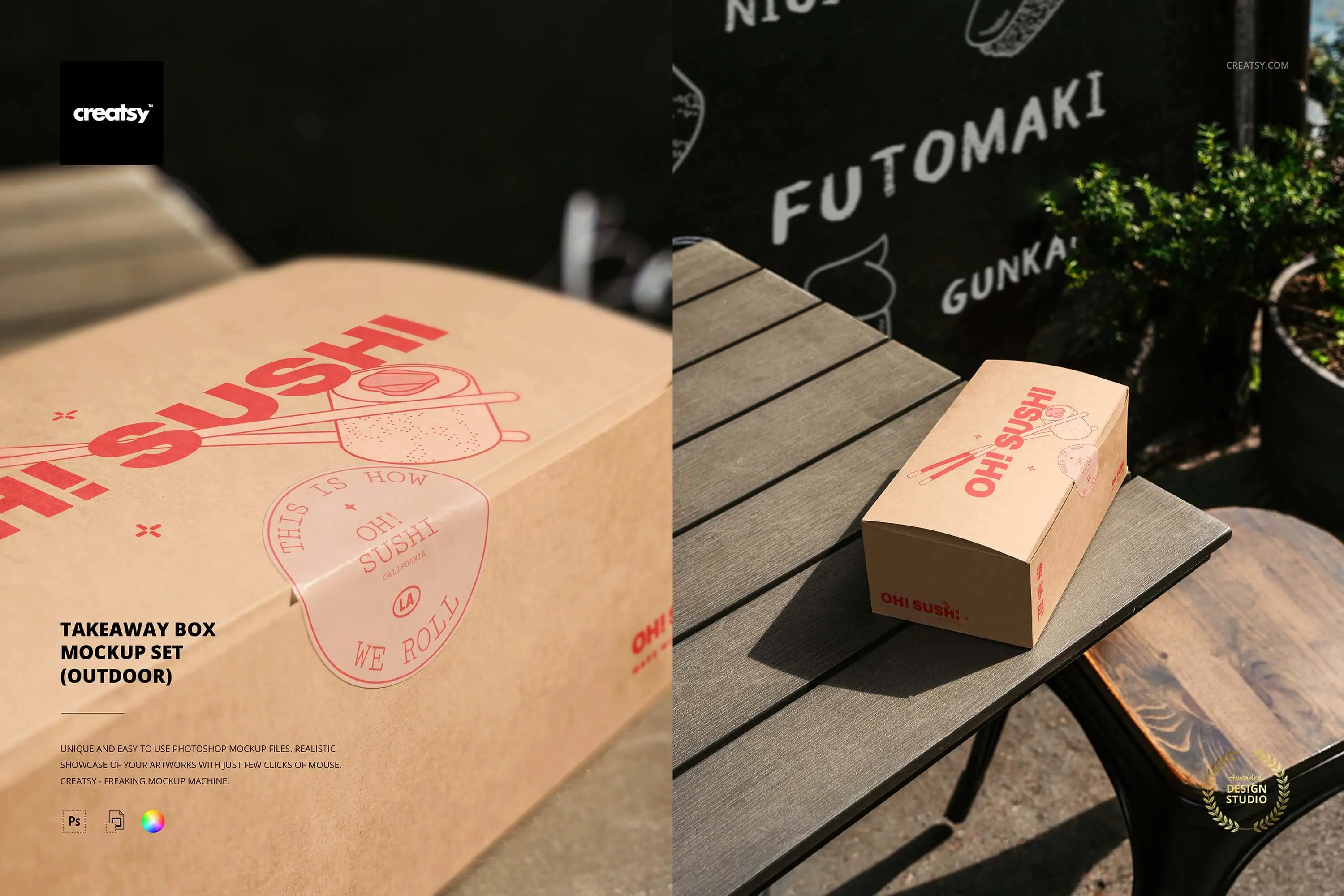 Takeaway Box Mockup Set (outdoor) 6款长方形餐饮外卖打包盒环保餐盒包装设计ps样机素材展示效果图