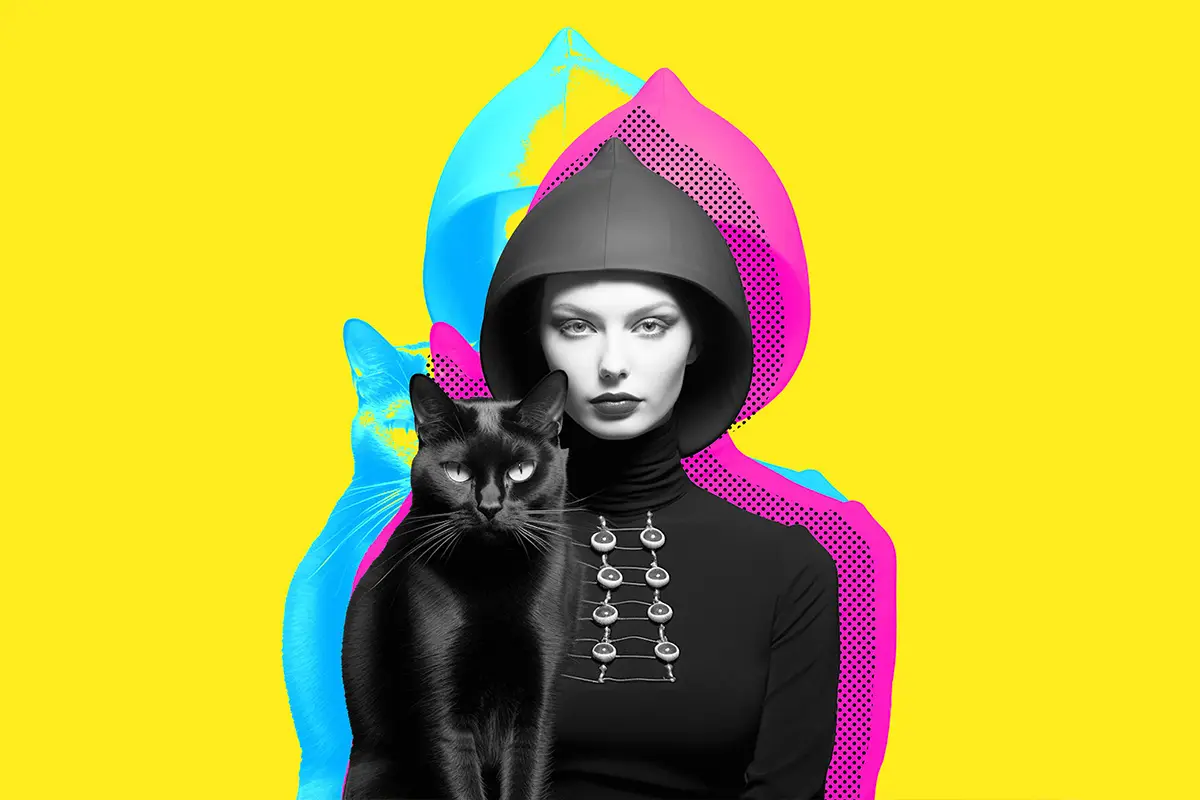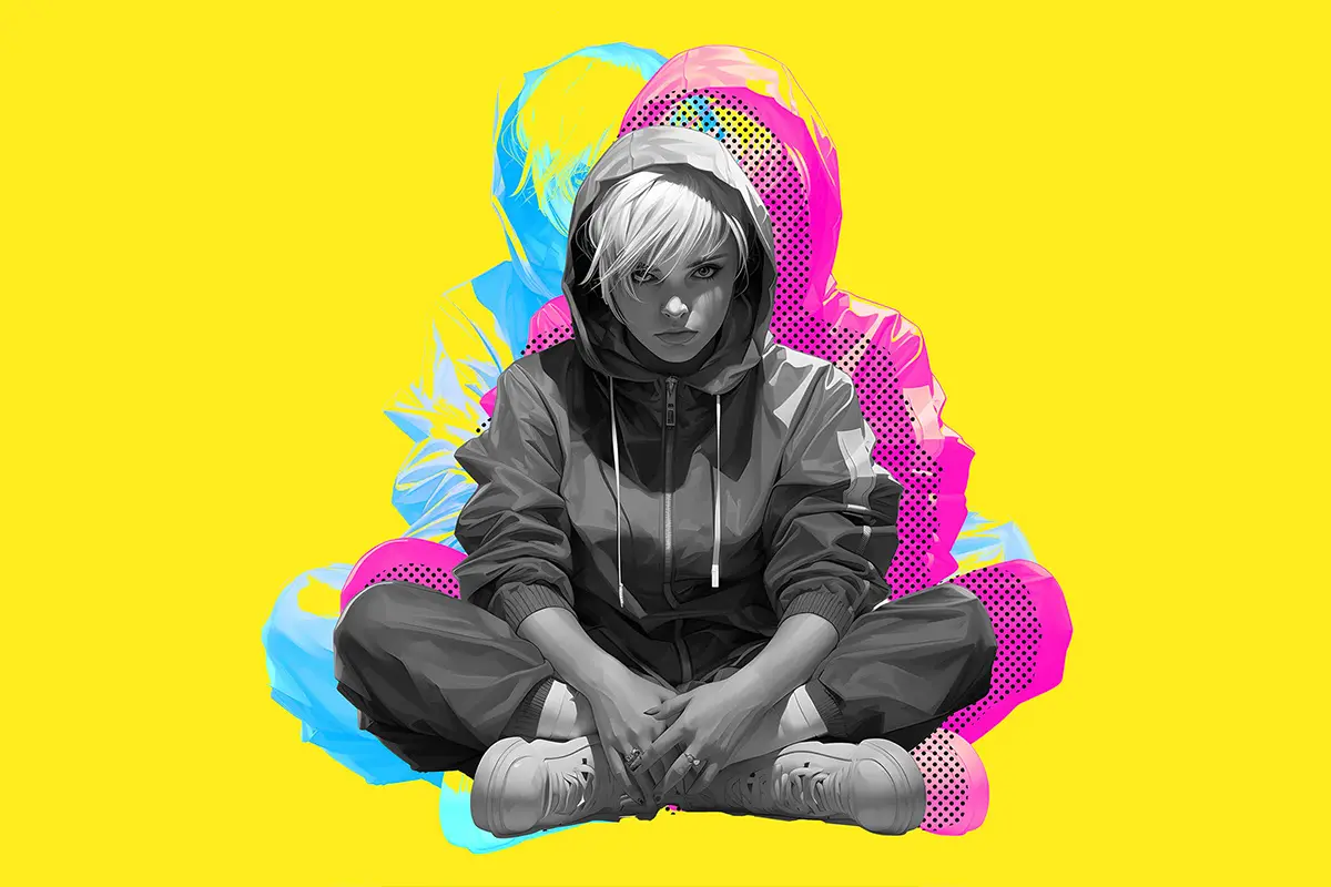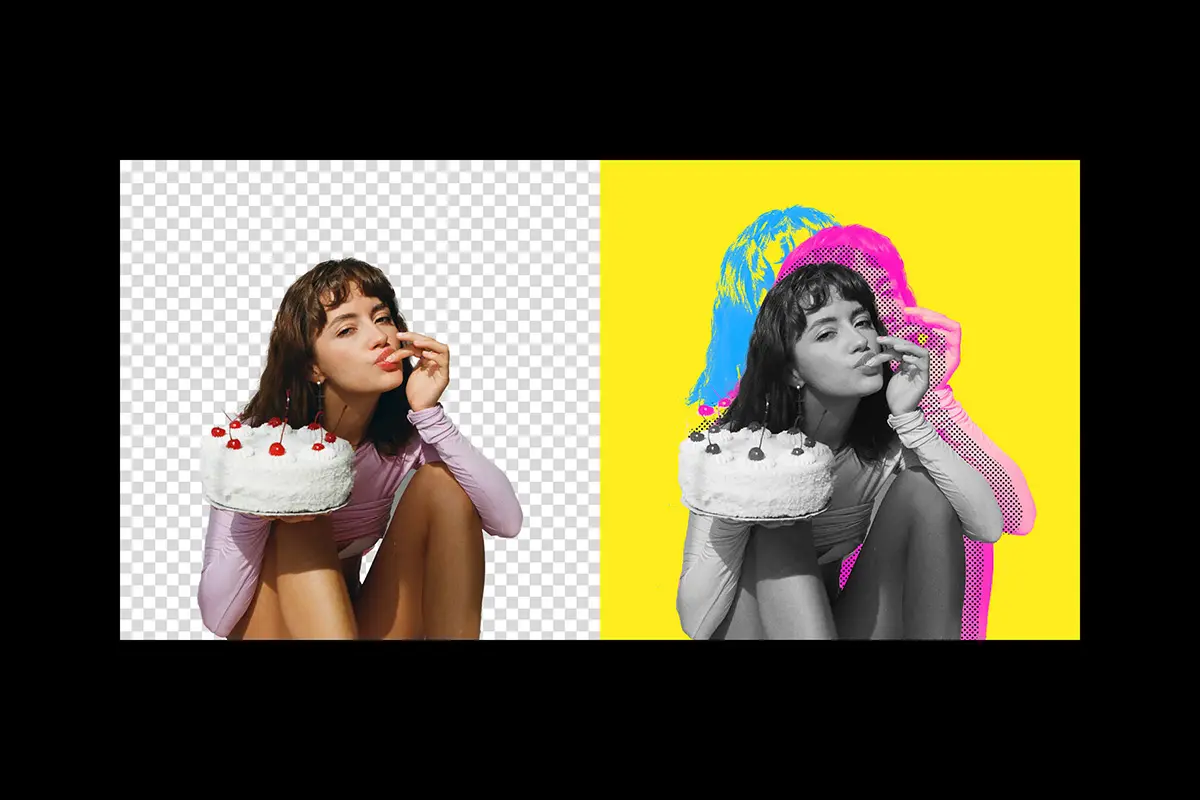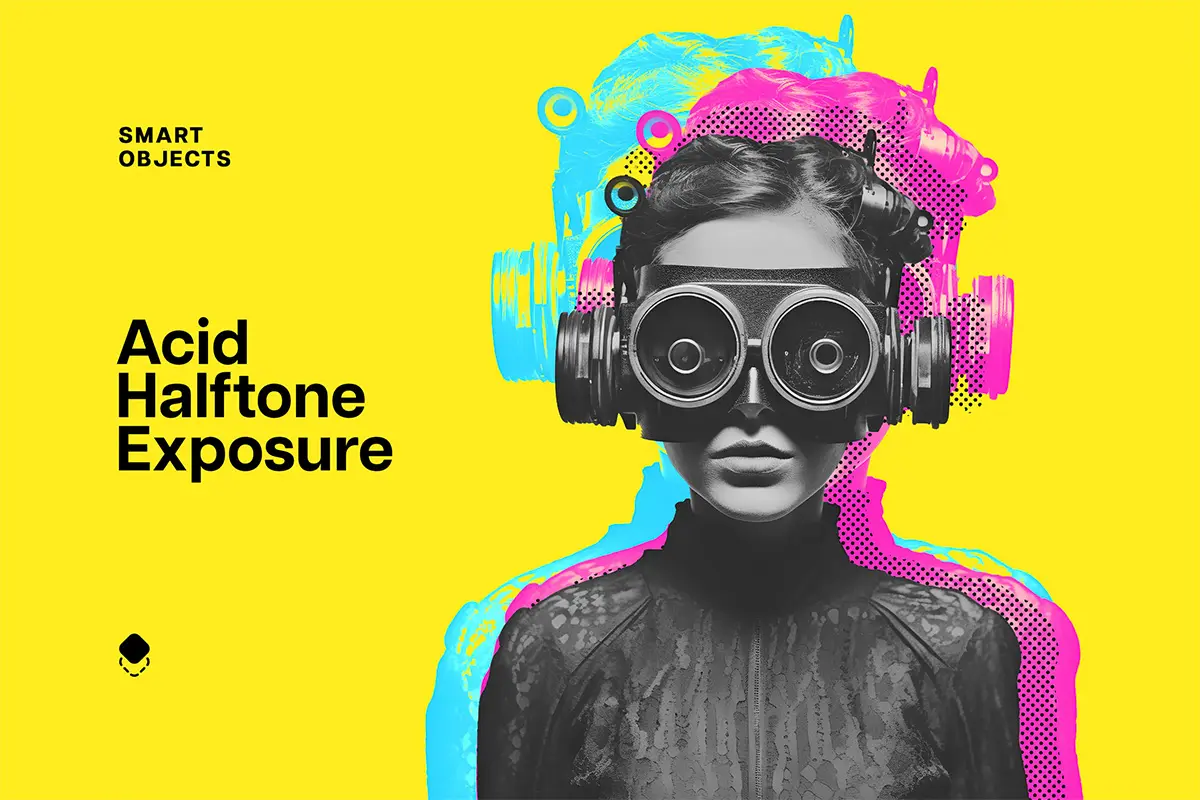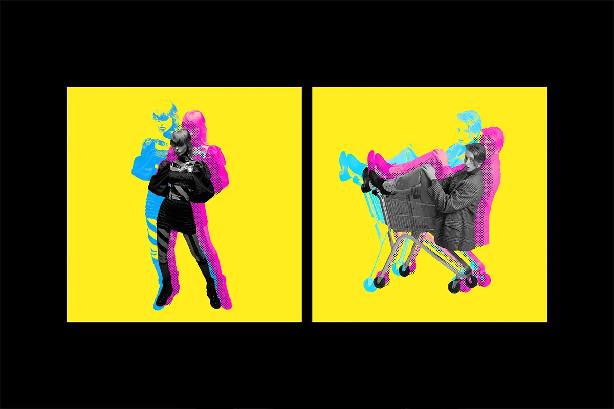 Double Halftone Exposure Effect 潮流复古双重曝光叠印重影错位撞色图像照片滤镜ps特效样机模板
