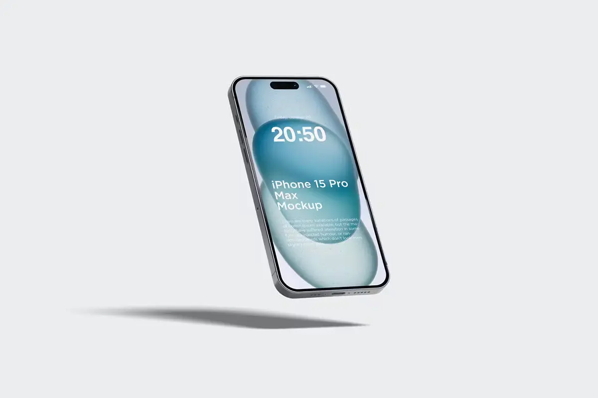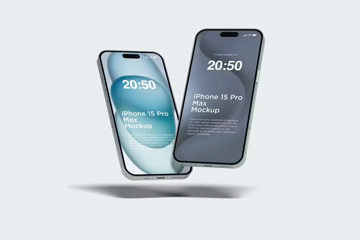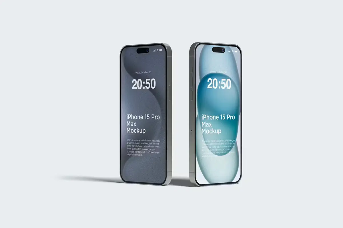 iphone 15 Pro Max Mockup iPhone 15手机广告App应用ui界面设计作品ps样机素材展示效果图