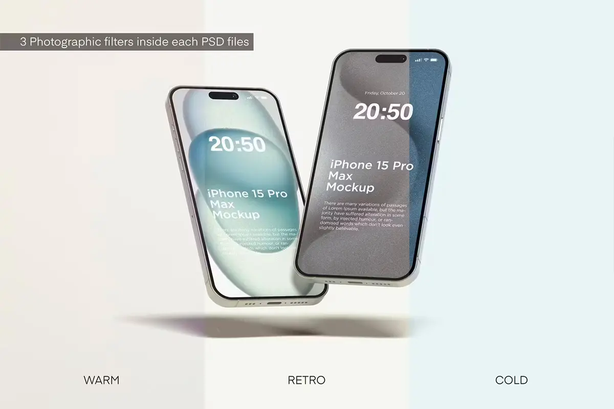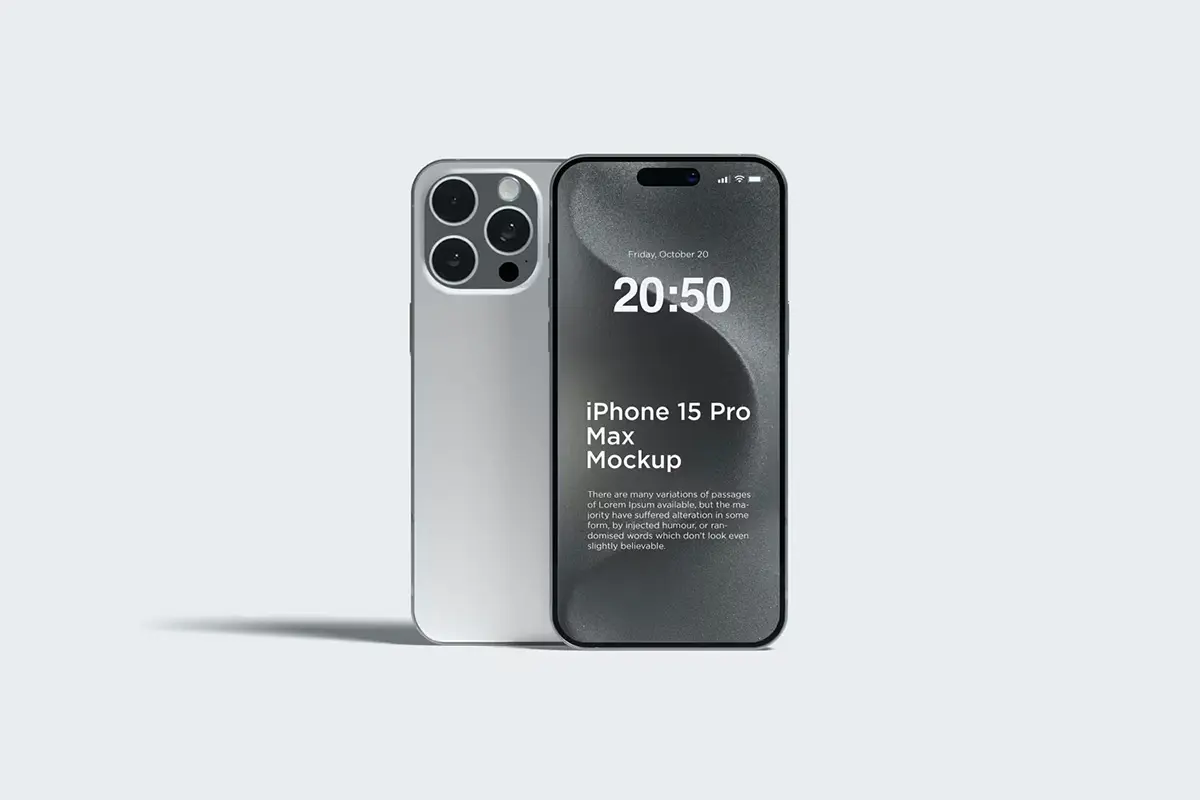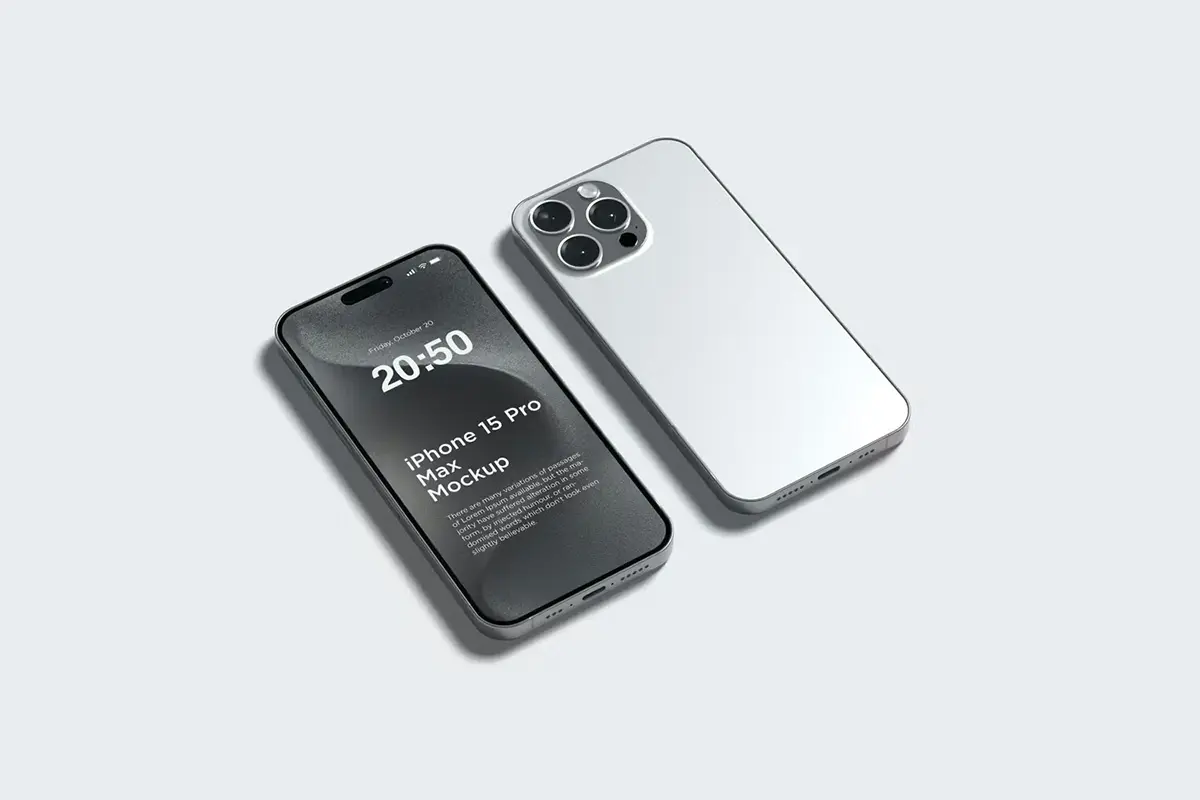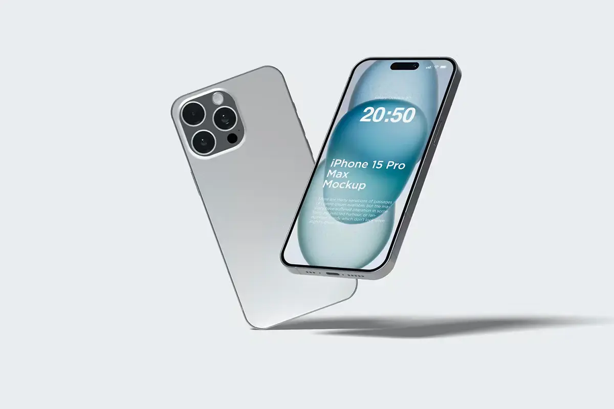 iphone 15 Pro Max Mockup iPhone 15手机广告App应用ui界面设计作品ps样机素材展示效果图