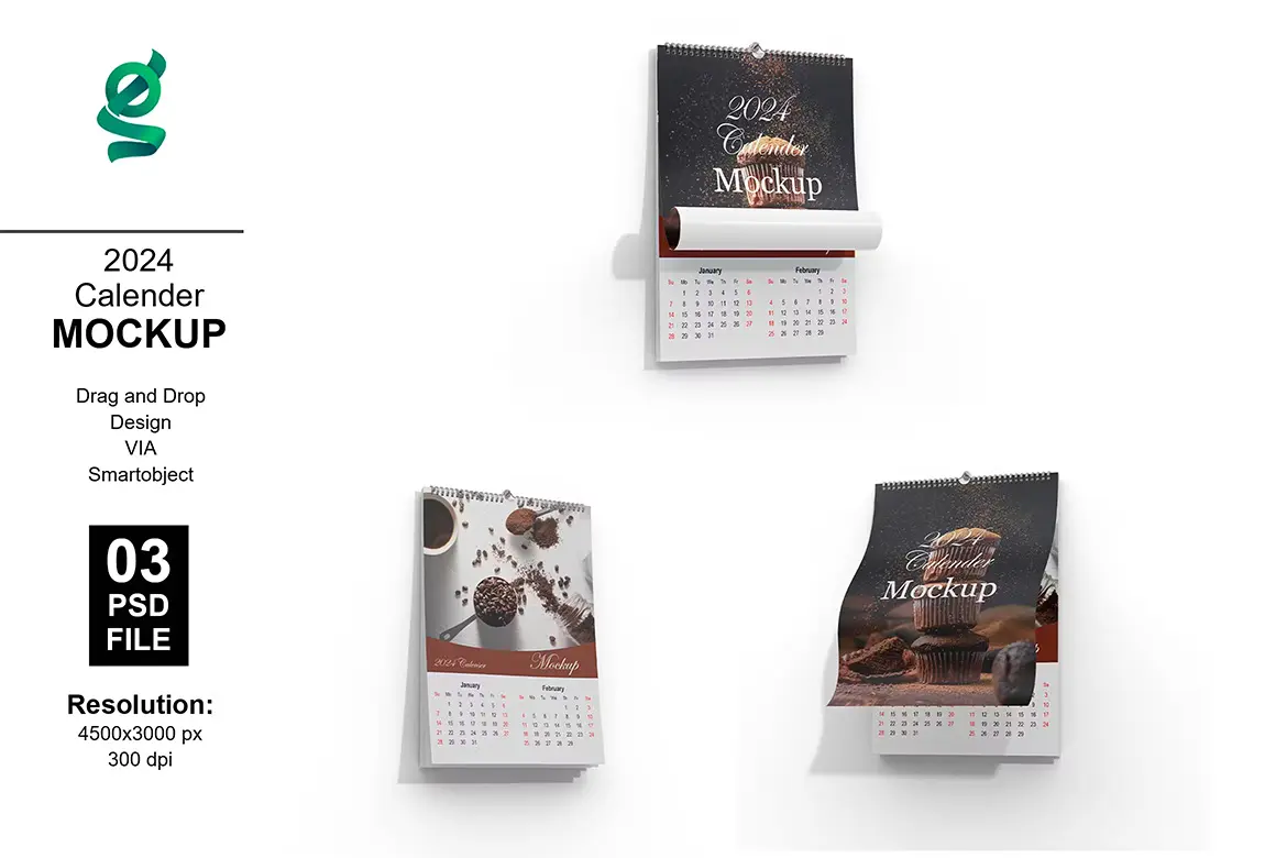 2024 Calender Mockup 2024年日历挂历模型展示设计贴图ps文具样机素材模板