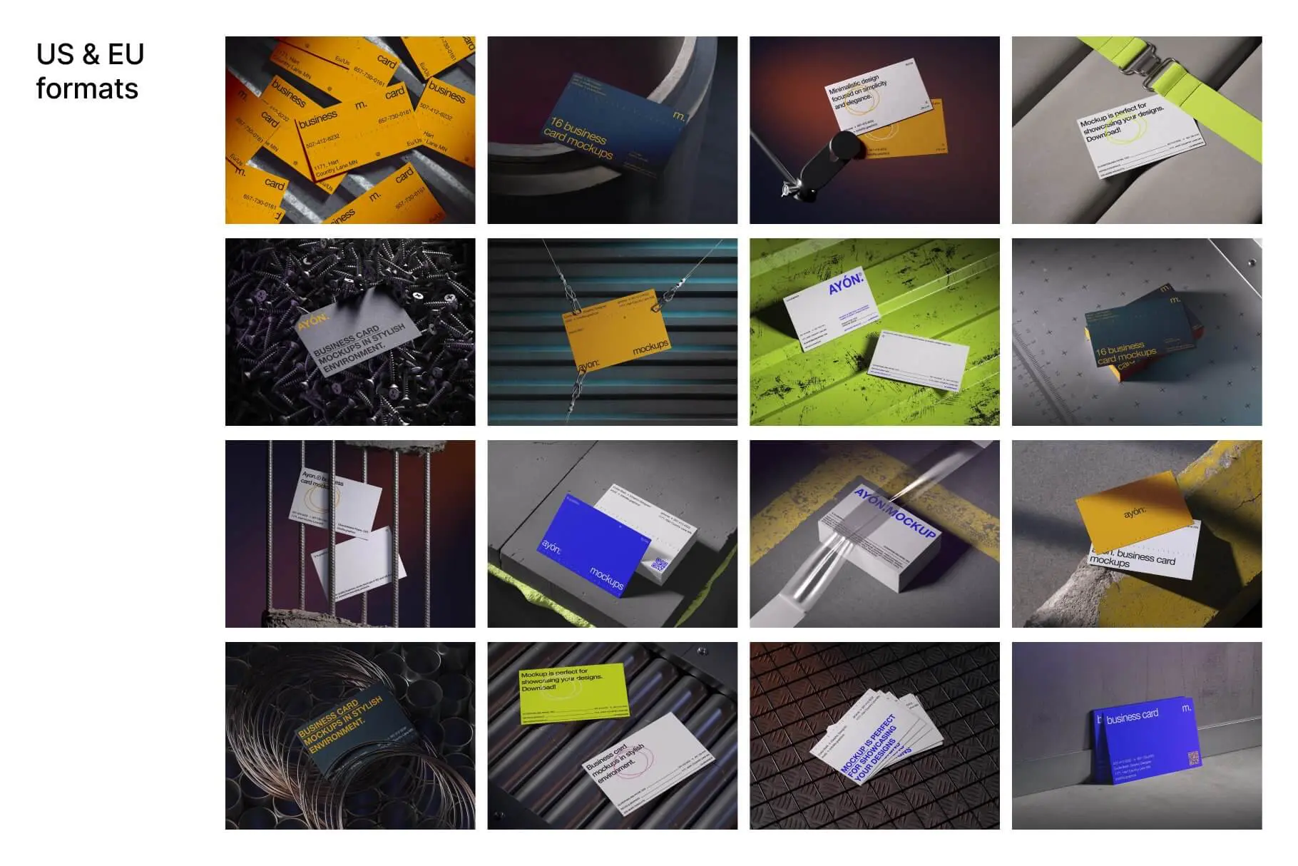 Ayon Mockups 16款复古质感光影工业风卡片名片设计ps样机素材场景展示效果图