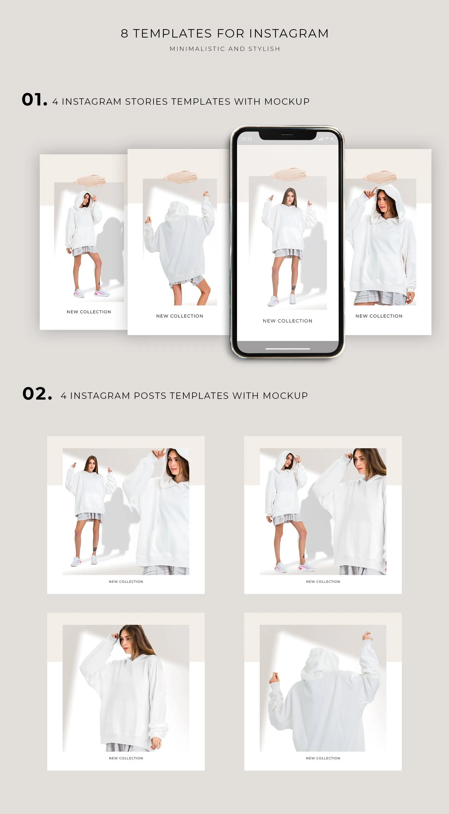 4 个 PSD Instagram 故事模板,带有可定制的运动衫模型
