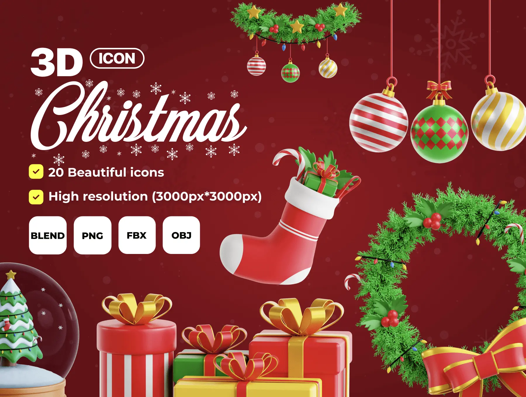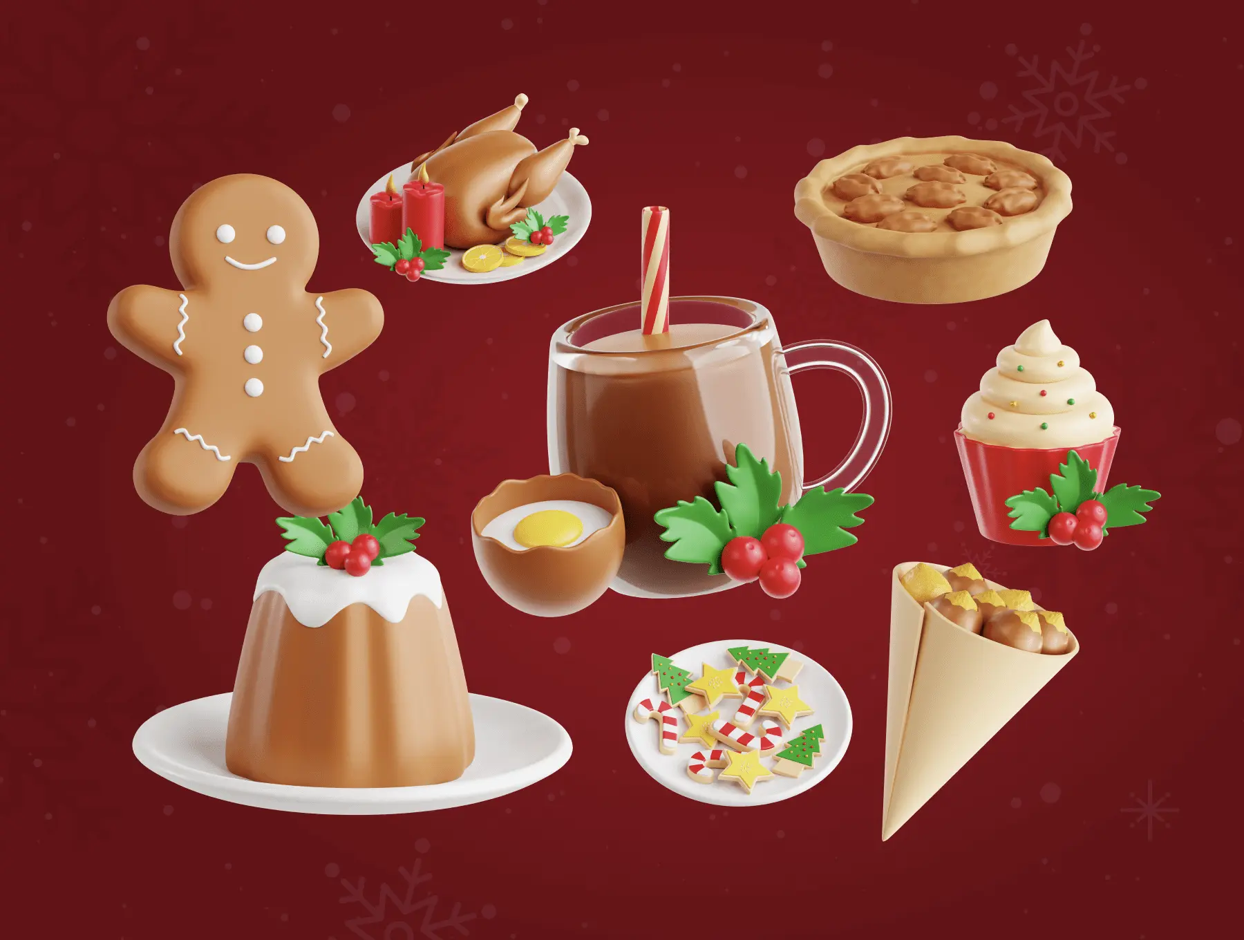 Christmas Time 3D Icon Set 20款趣味卡通3D圣诞节礼物美食装饰甜品插图插画webp免抠图片素材