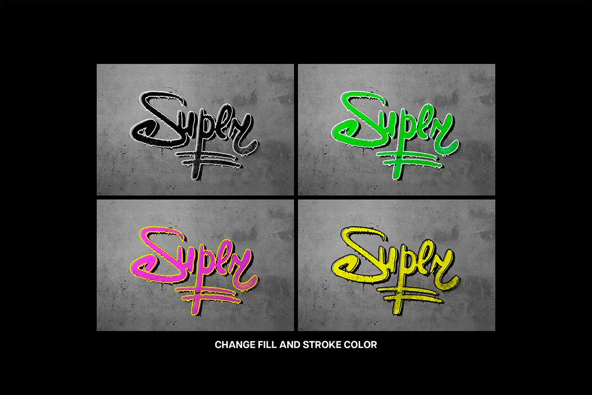 Street Graffiti Mockup 潮流嘻哈hiphop美式街头涂鸦喷漆墙绘字体插画轮廓特效ps样机模板