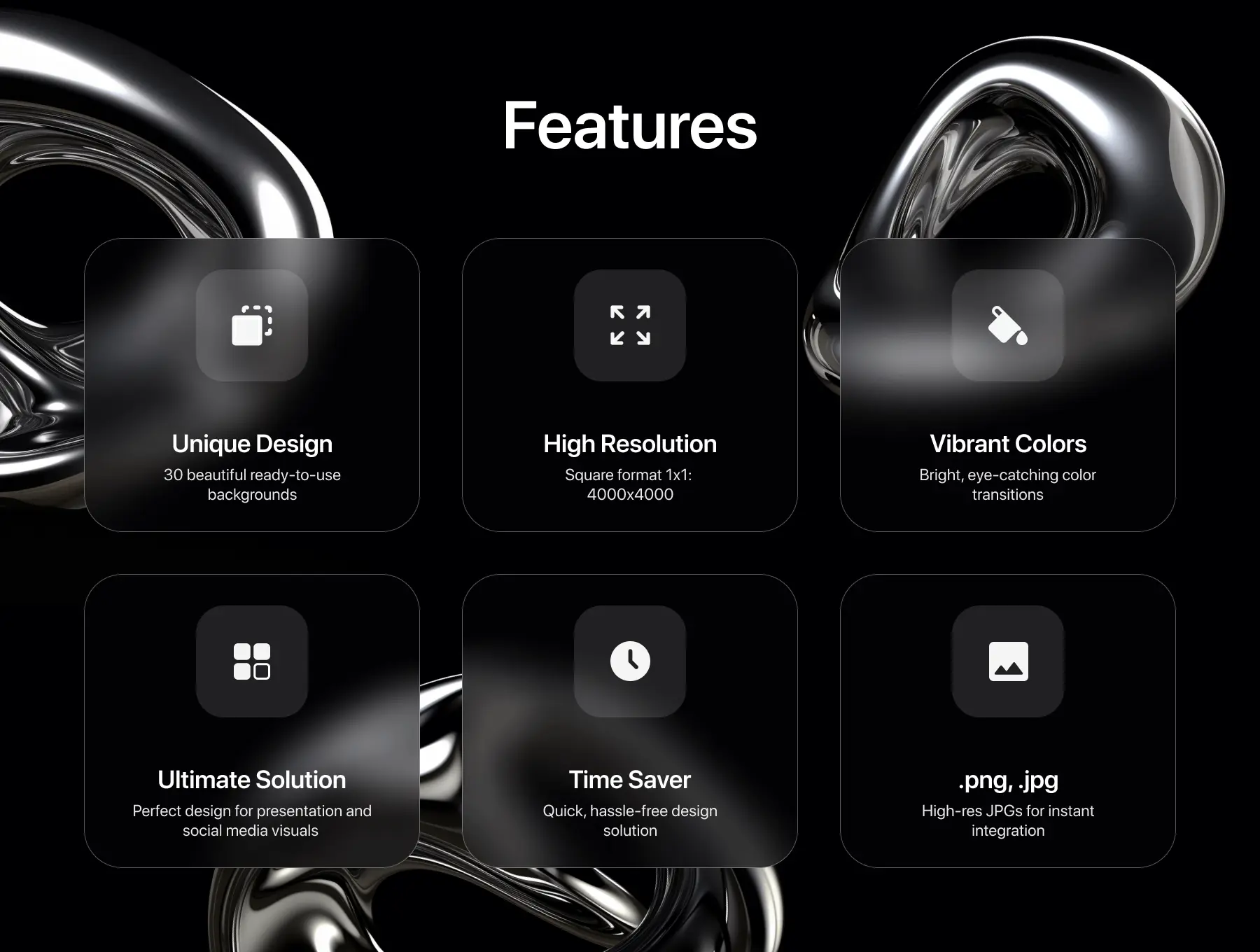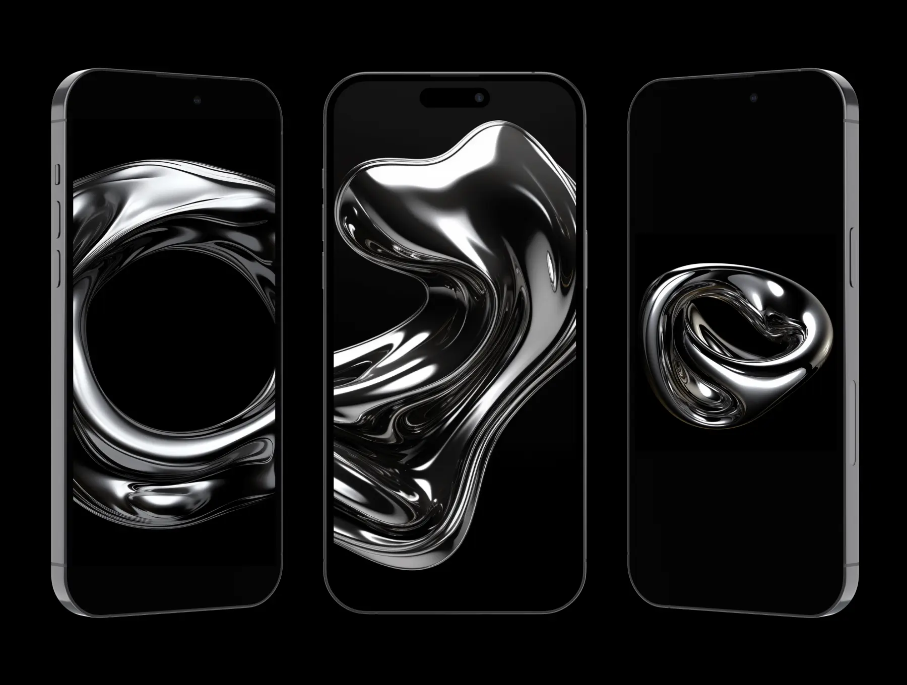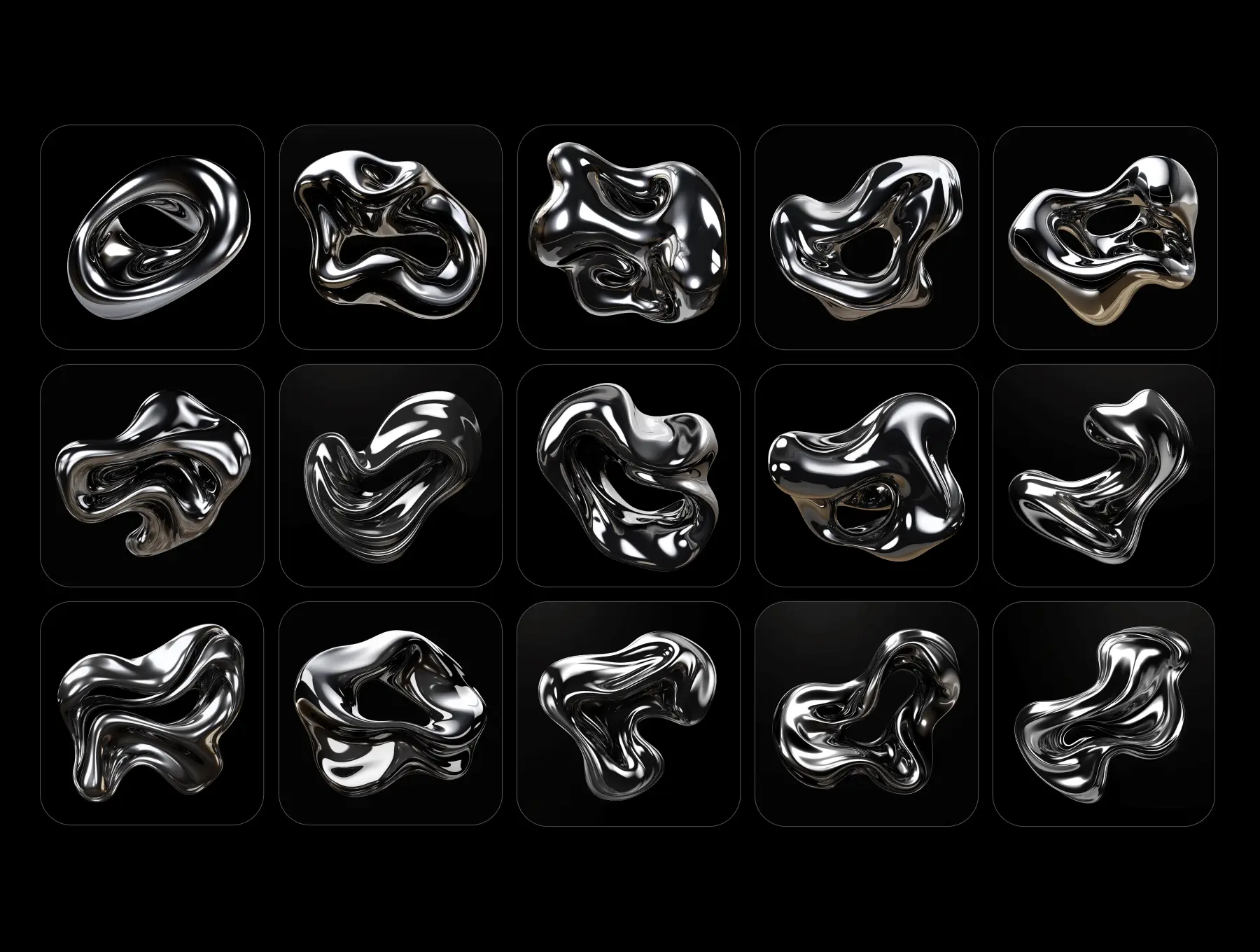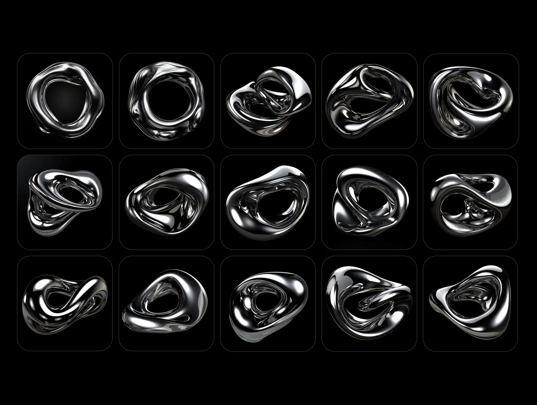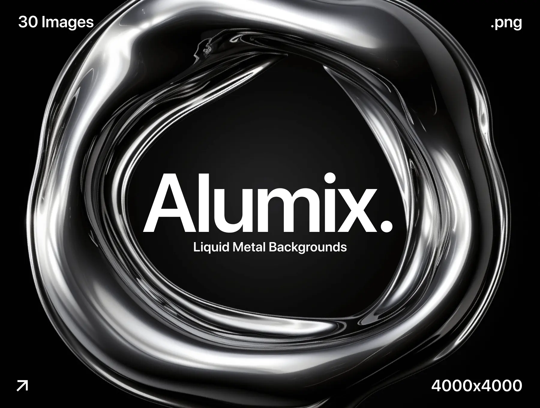 Alumix – Liquid Metal Backgrounds 30款银色液体圆环金属不锈钢镀铬3D科幻抽象图形webp免抠图片素材