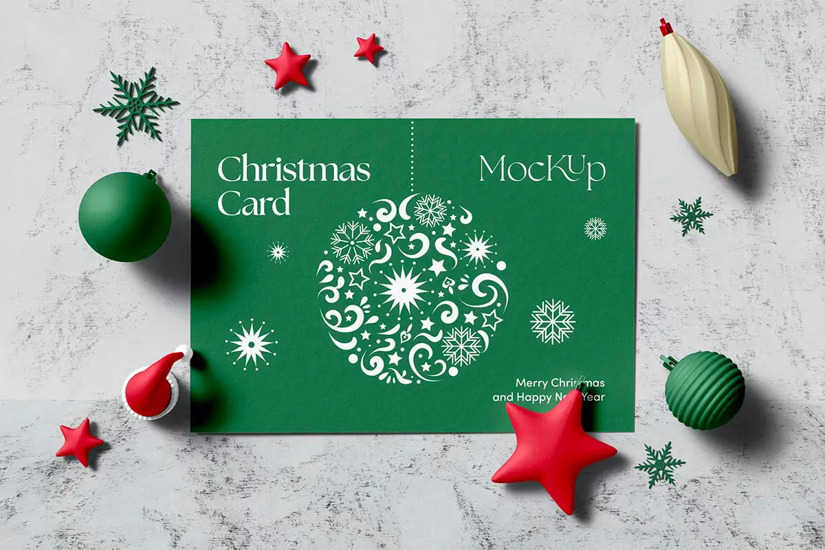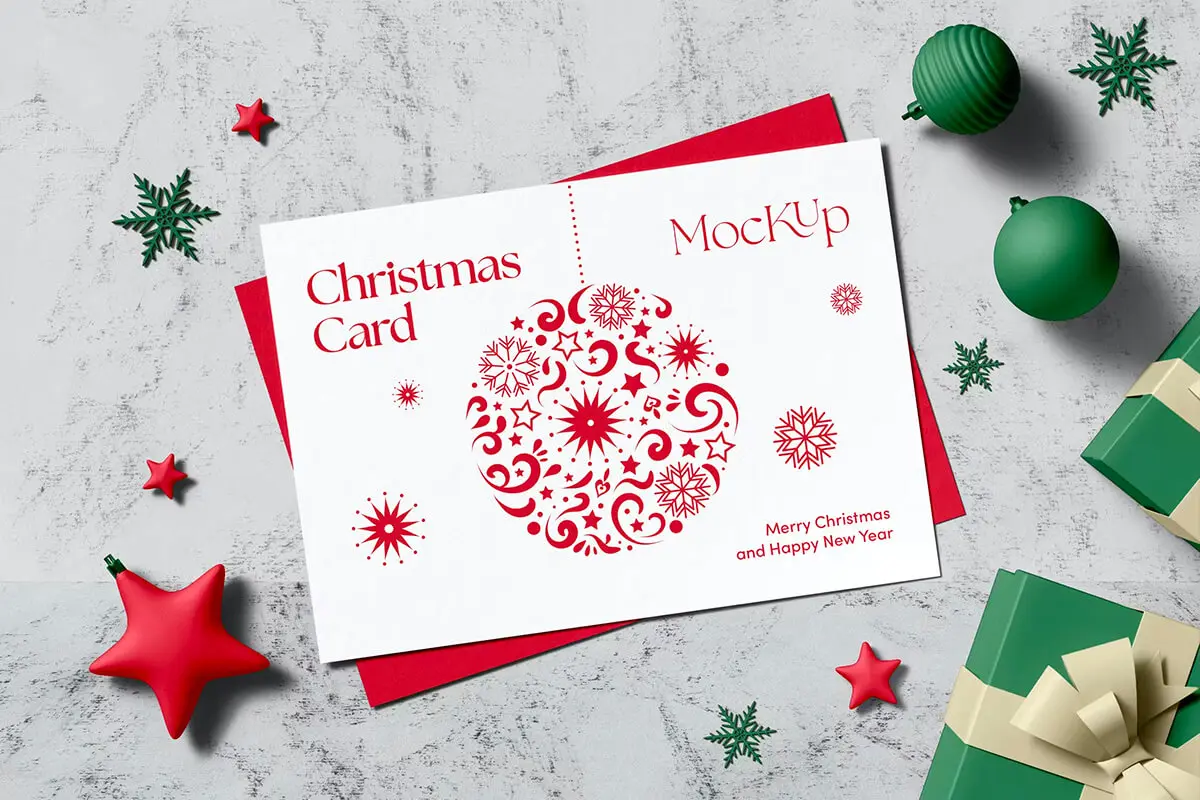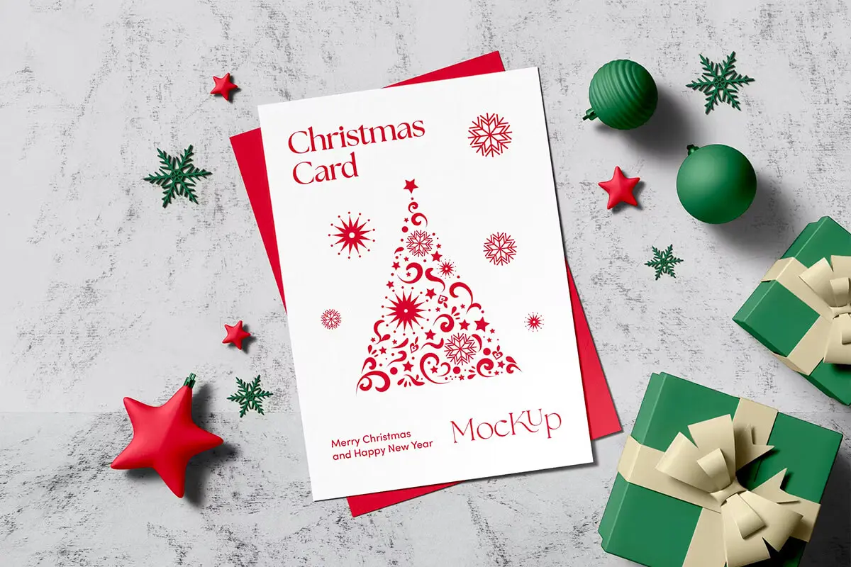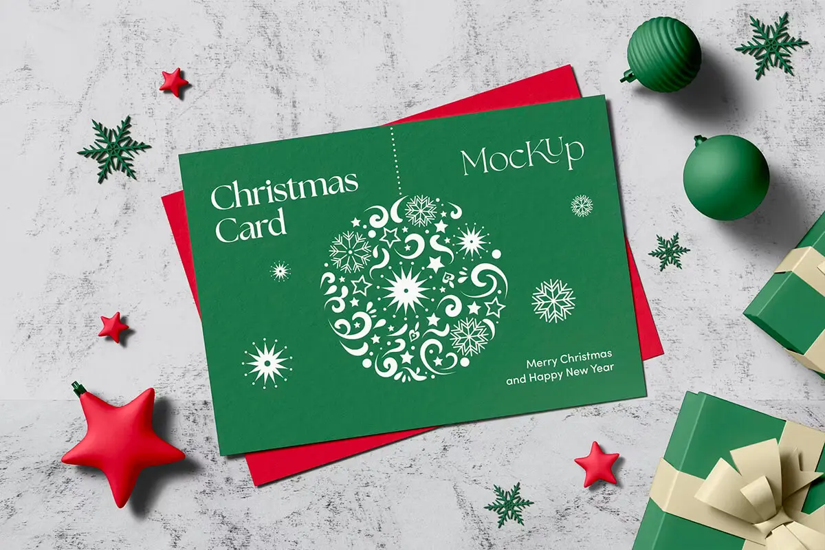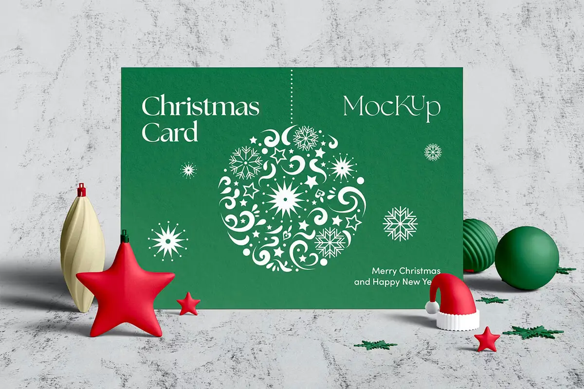 Christmas Card Mock-up 6款圣诞节装饰节日贺卡单页海报卡片设计ps样机素材展示效果图
