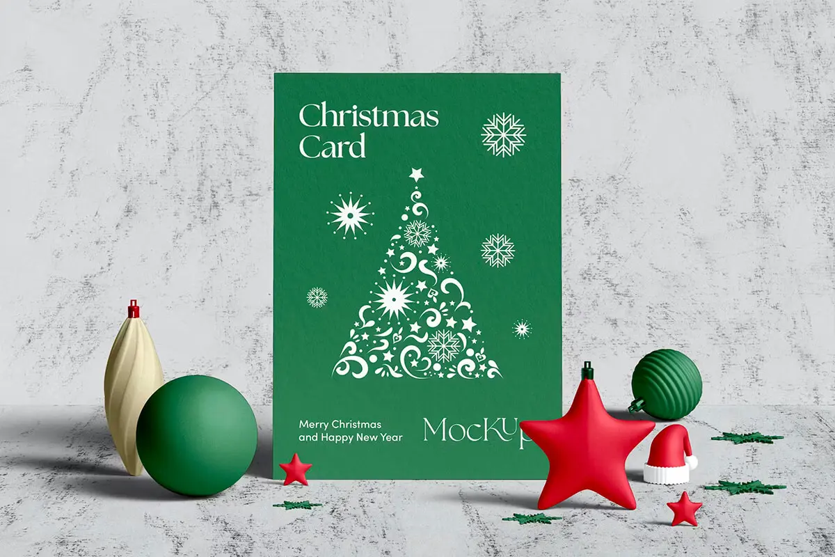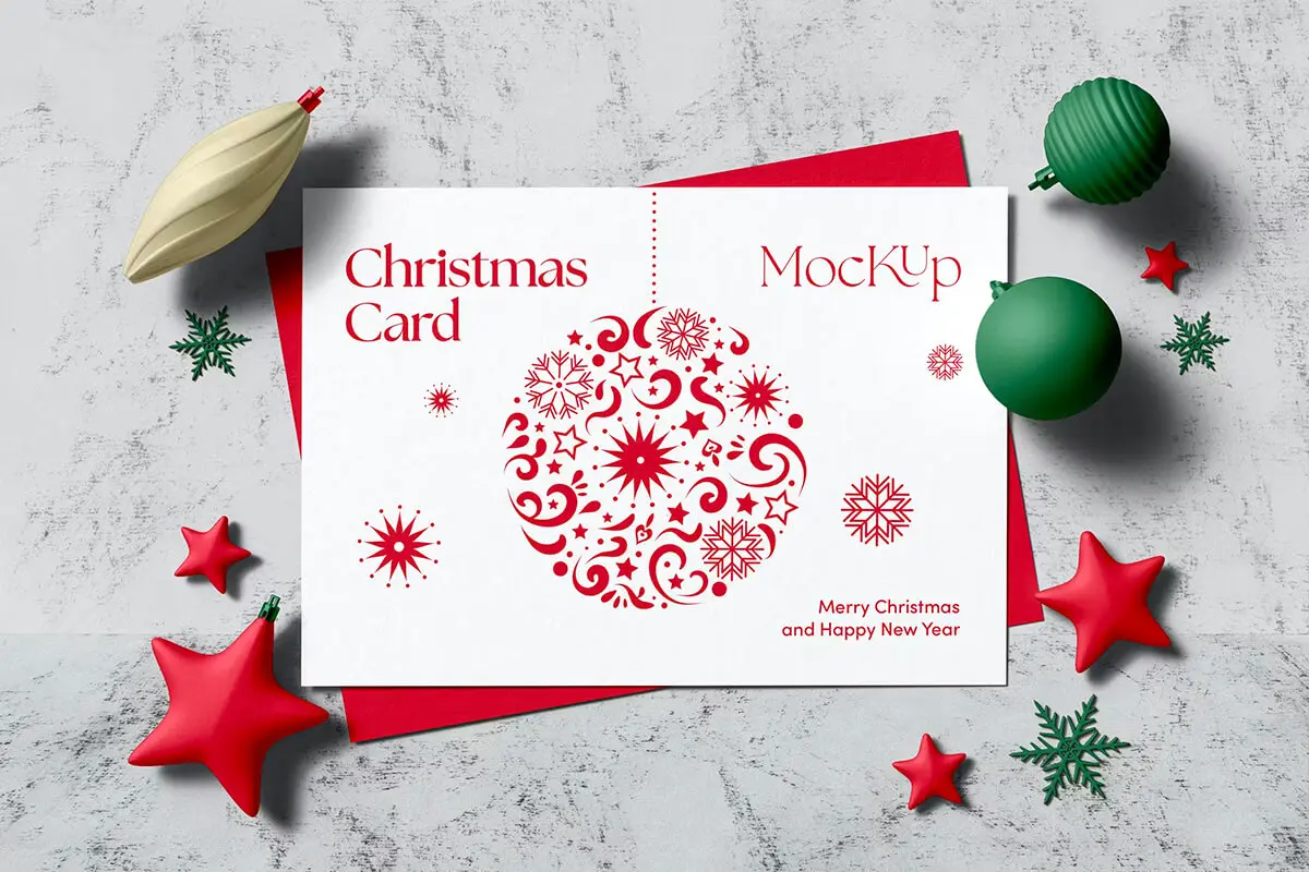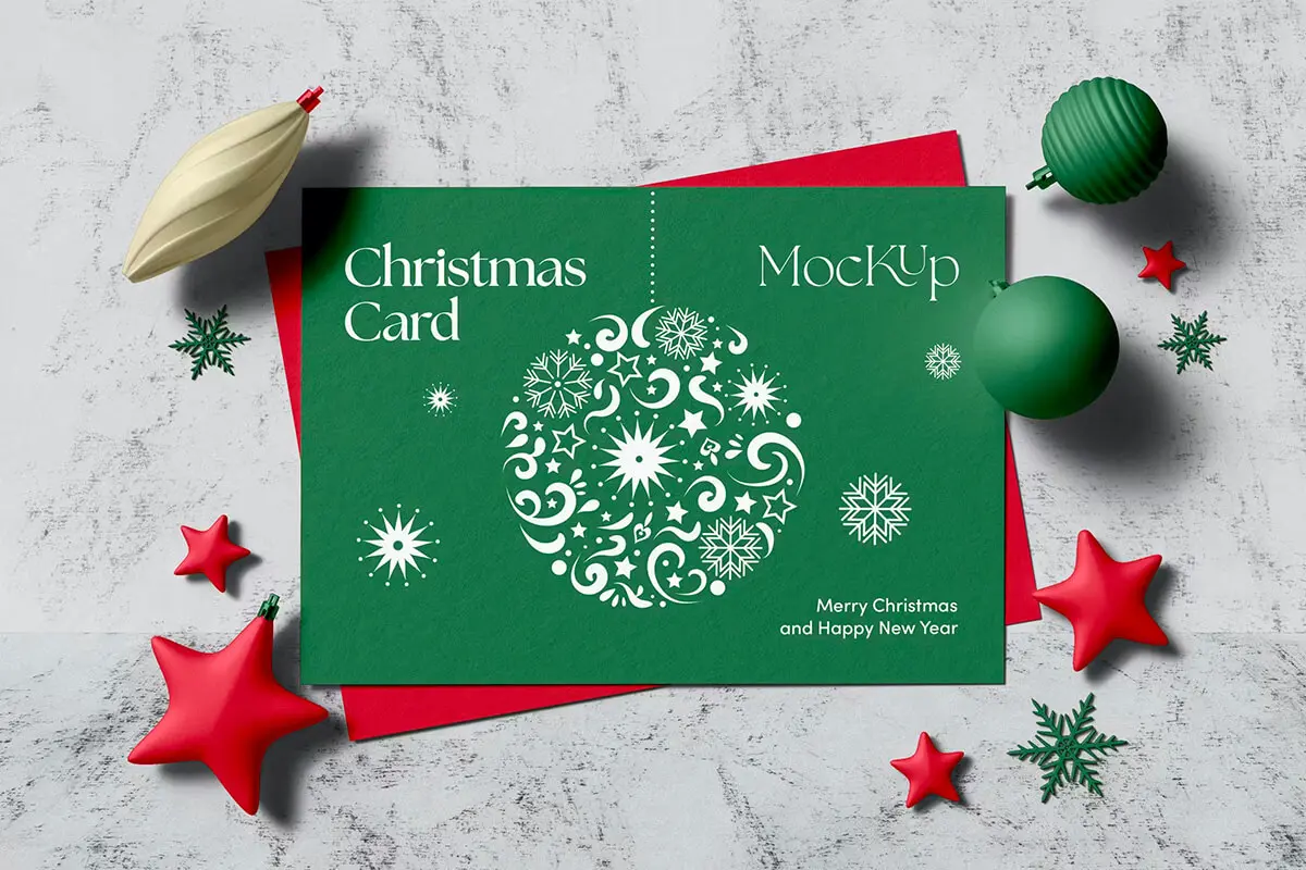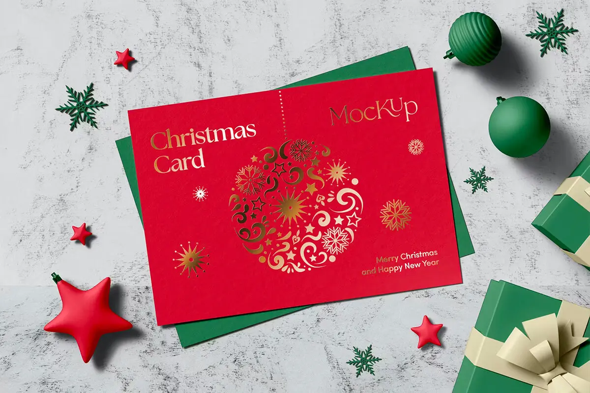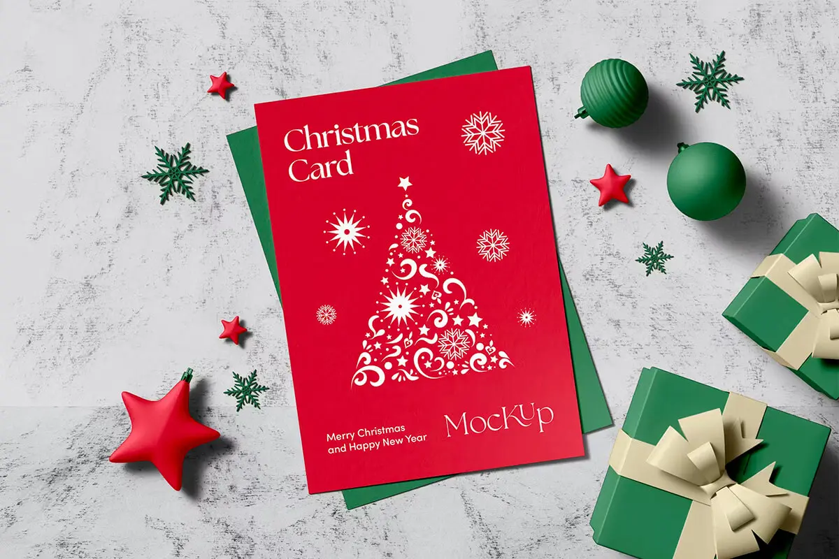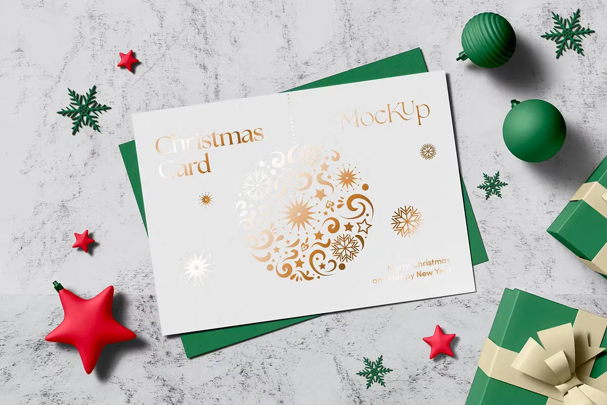 Christmas Card Mock-up 6款圣诞节装饰节日贺卡单页海报卡片设计ps样机素材展示效果图