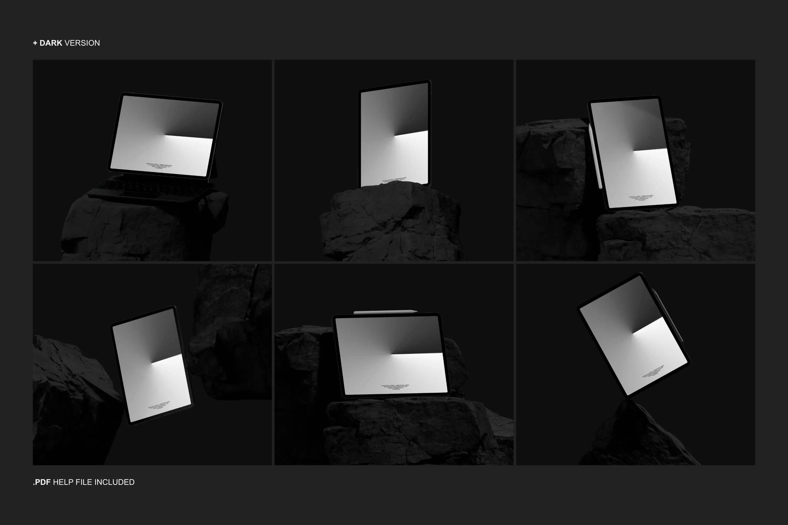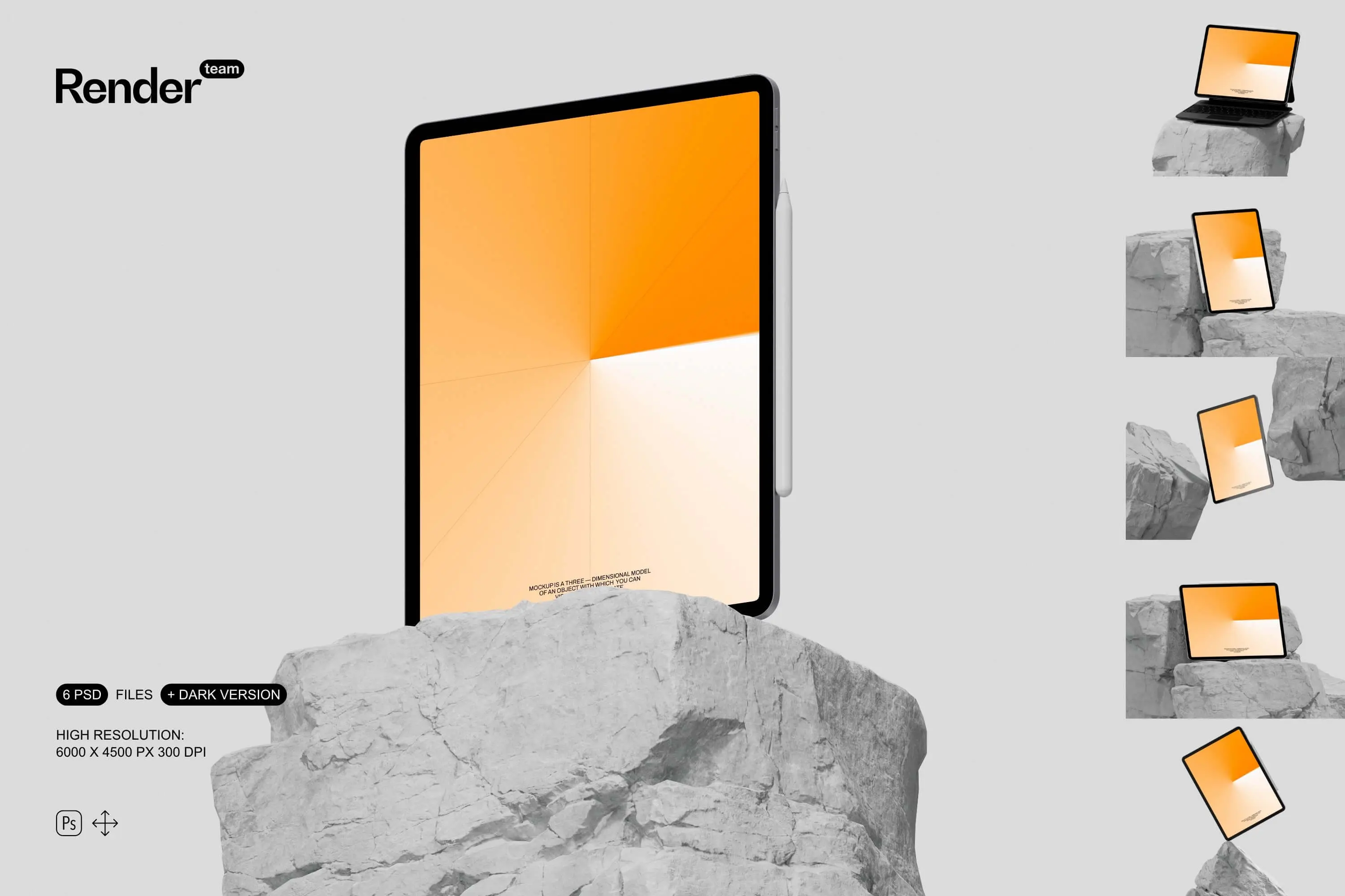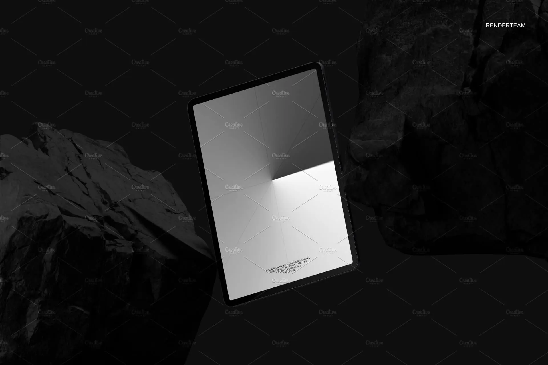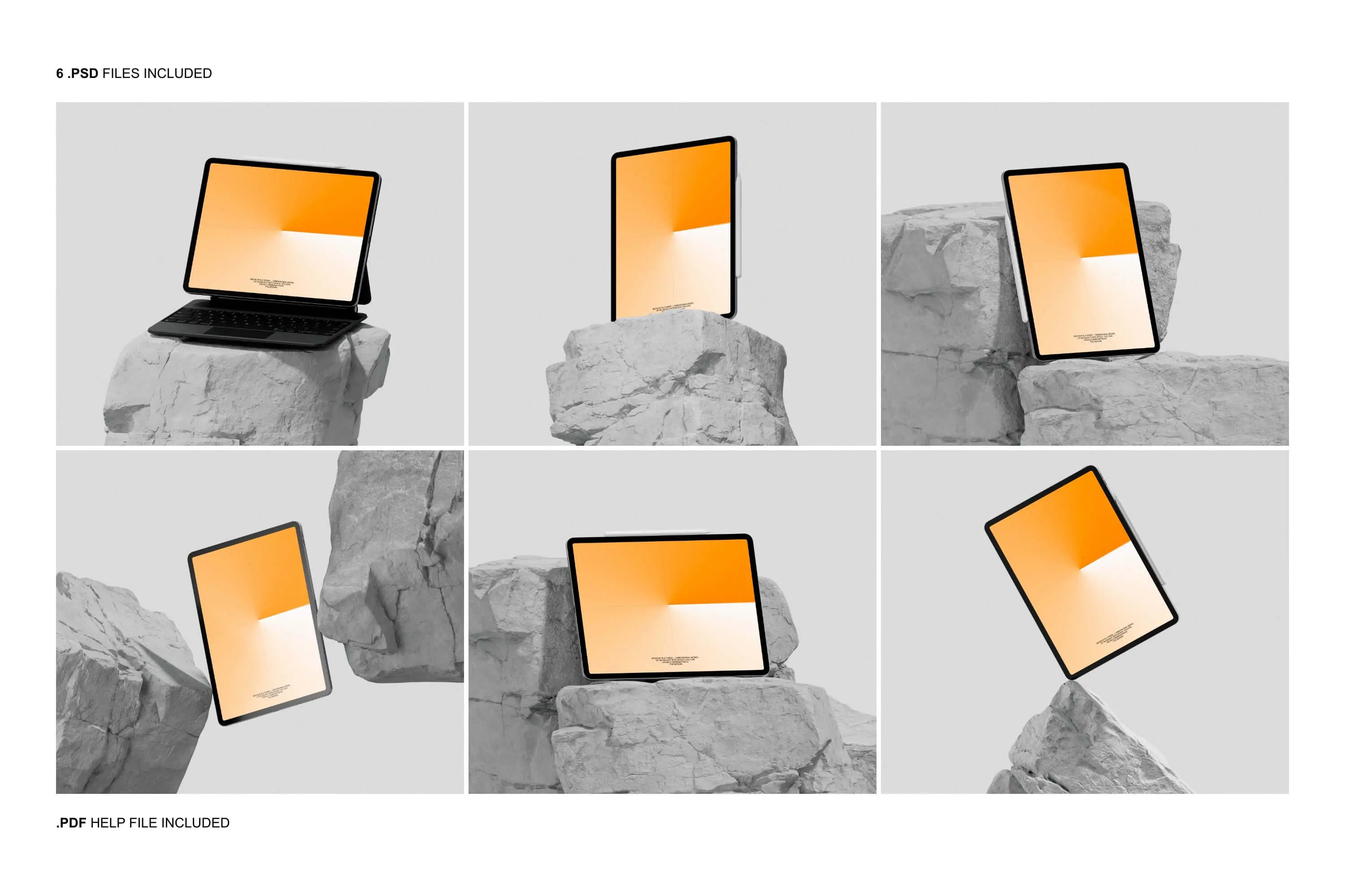 iPad Mockup Set 极简工业岩石iPad平板电脑ui设计作品贴图ps样机素材展示效果图