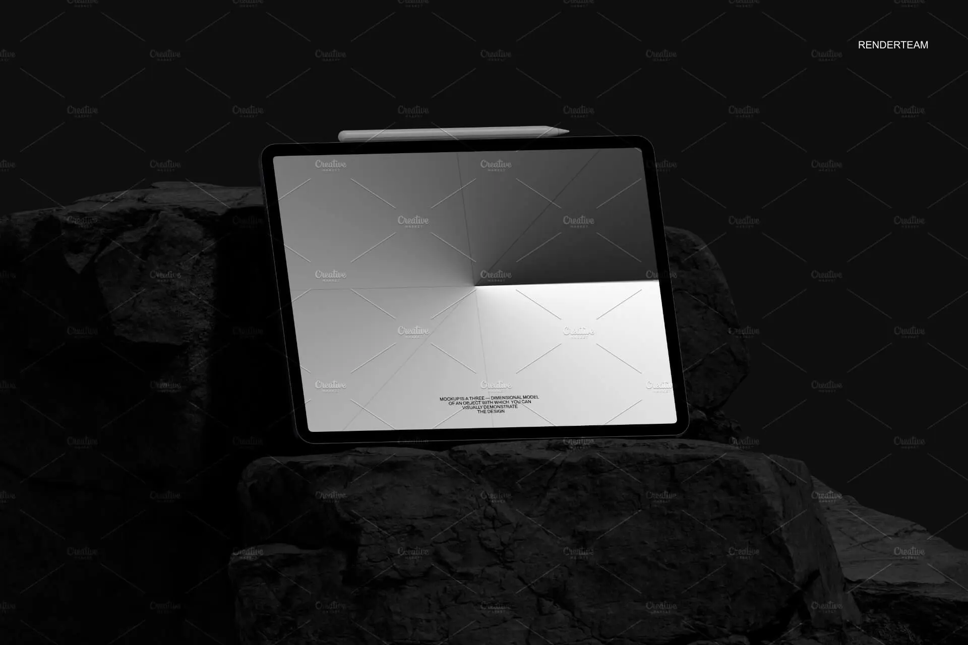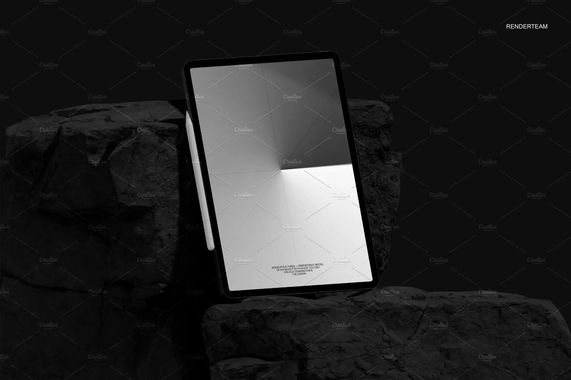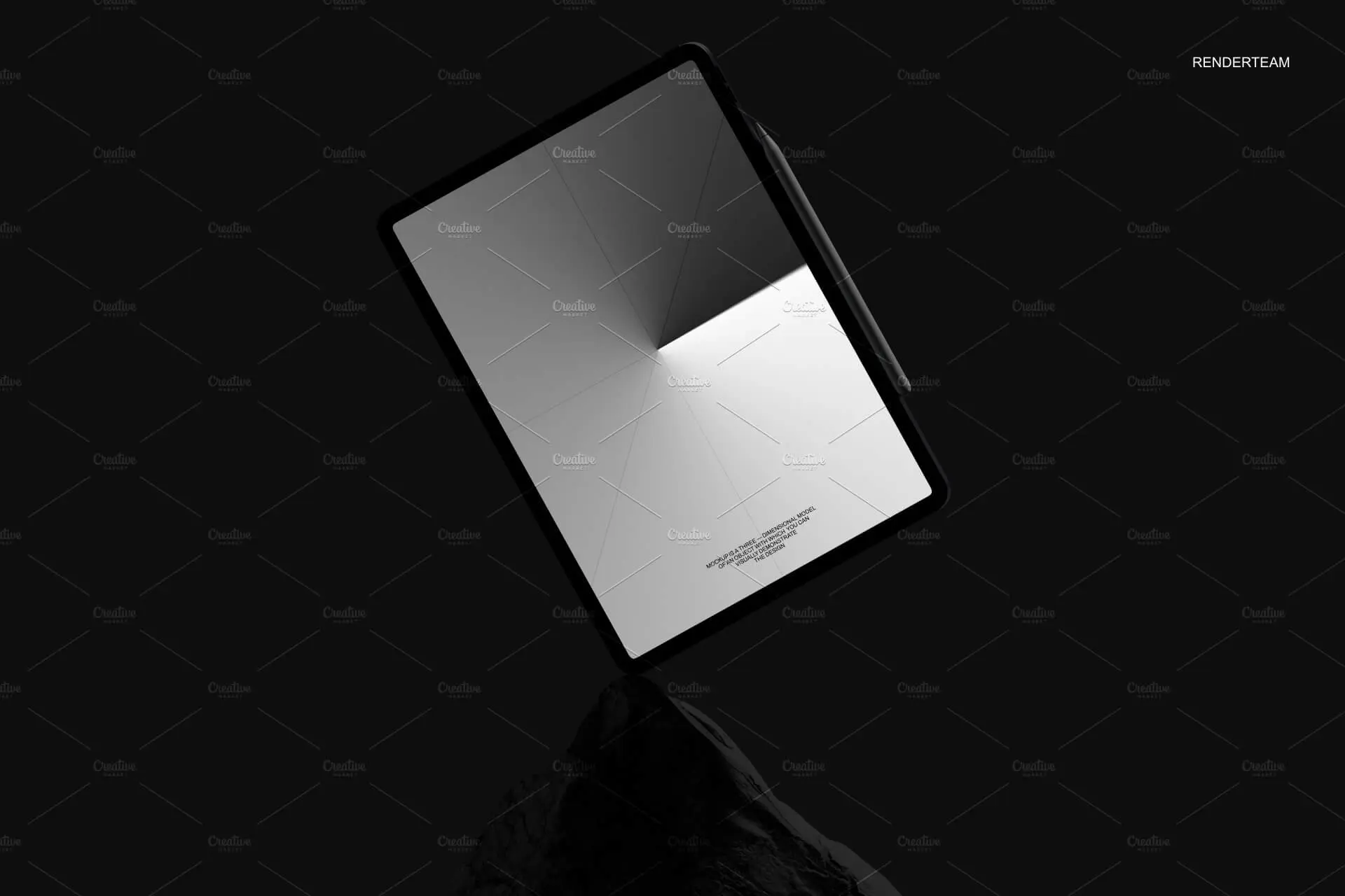 iPad Mockup Set 极简工业岩石iPad平板电脑ui设计作品贴图ps样机素材展示效果图
