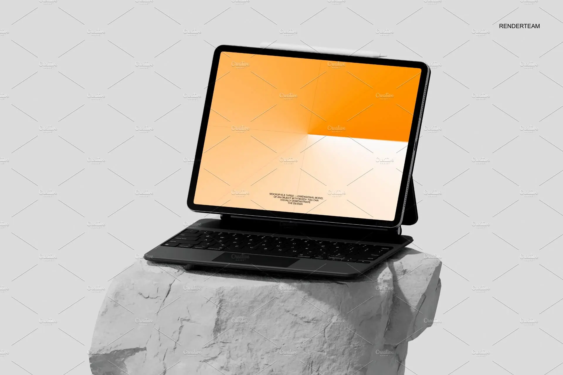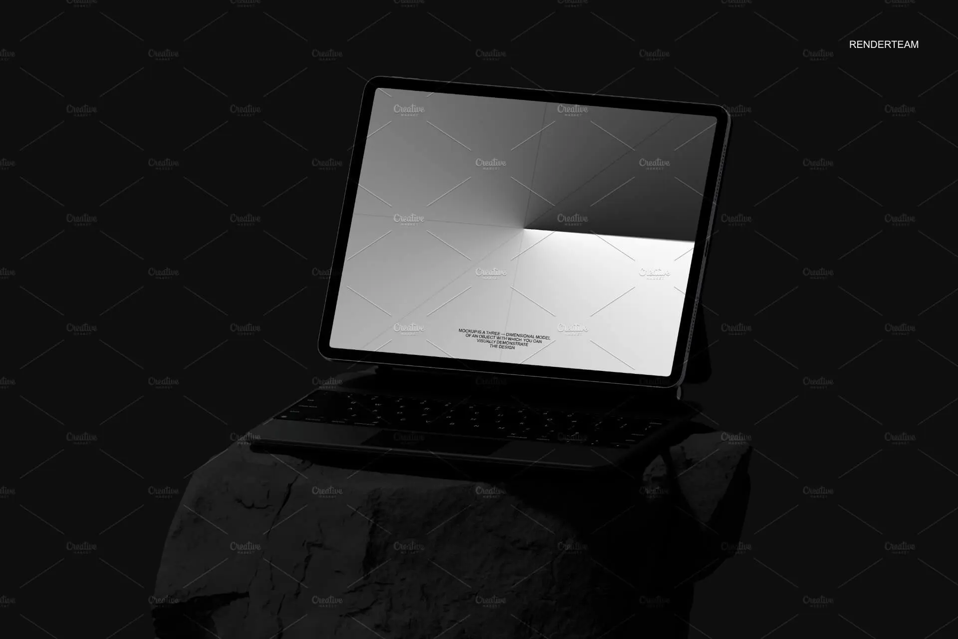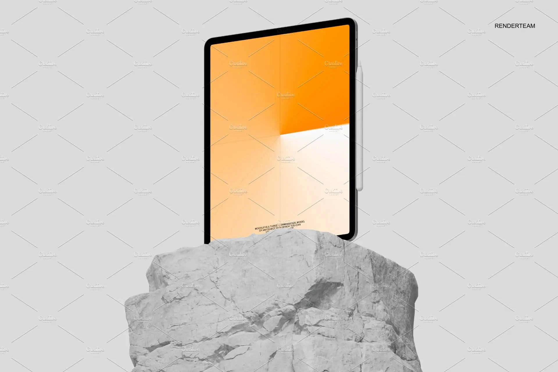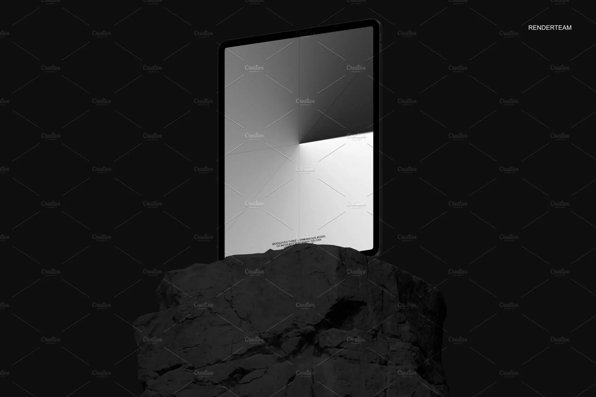 iPad Mockup Set 极简工业岩石iPad平板电脑ui设计作品贴图ps样机素材展示效果图